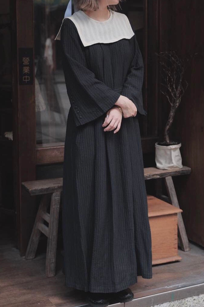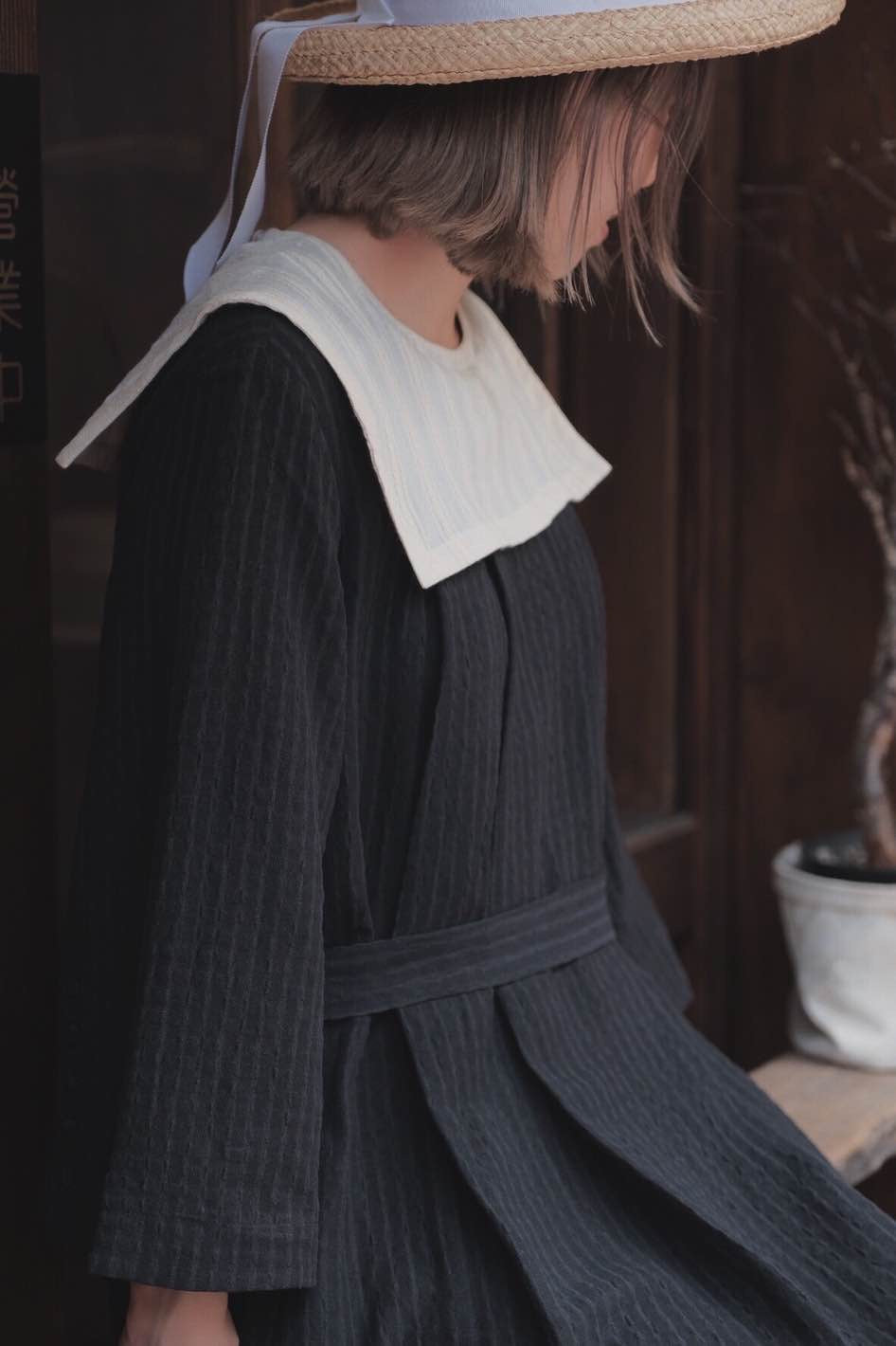 灰亞麻方領片罩洋服