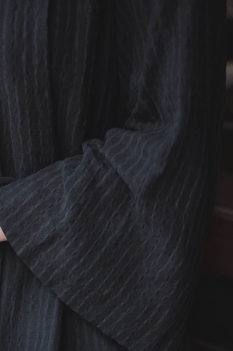 黑灰色洗水縮紋亞麻,容易打理