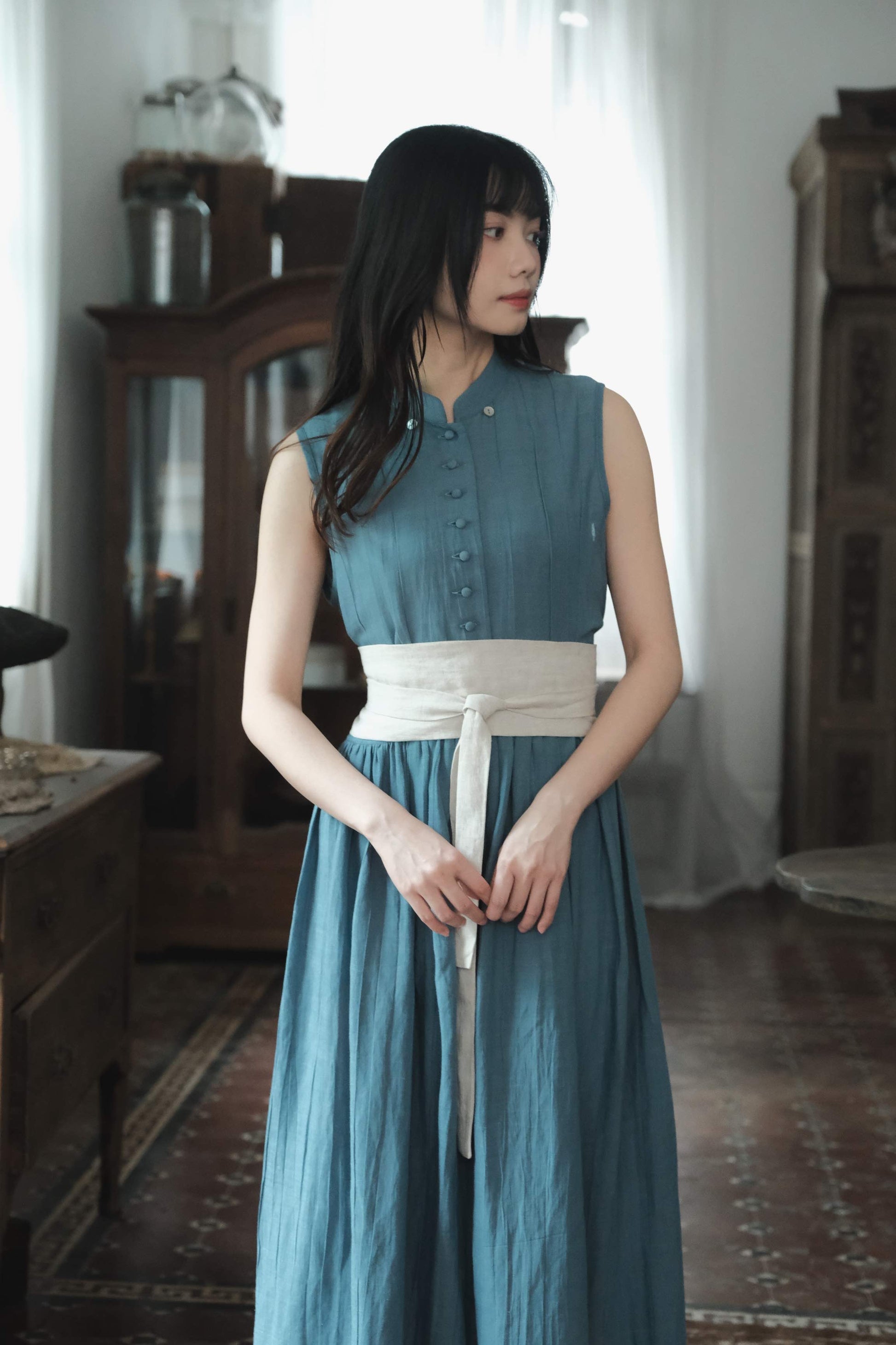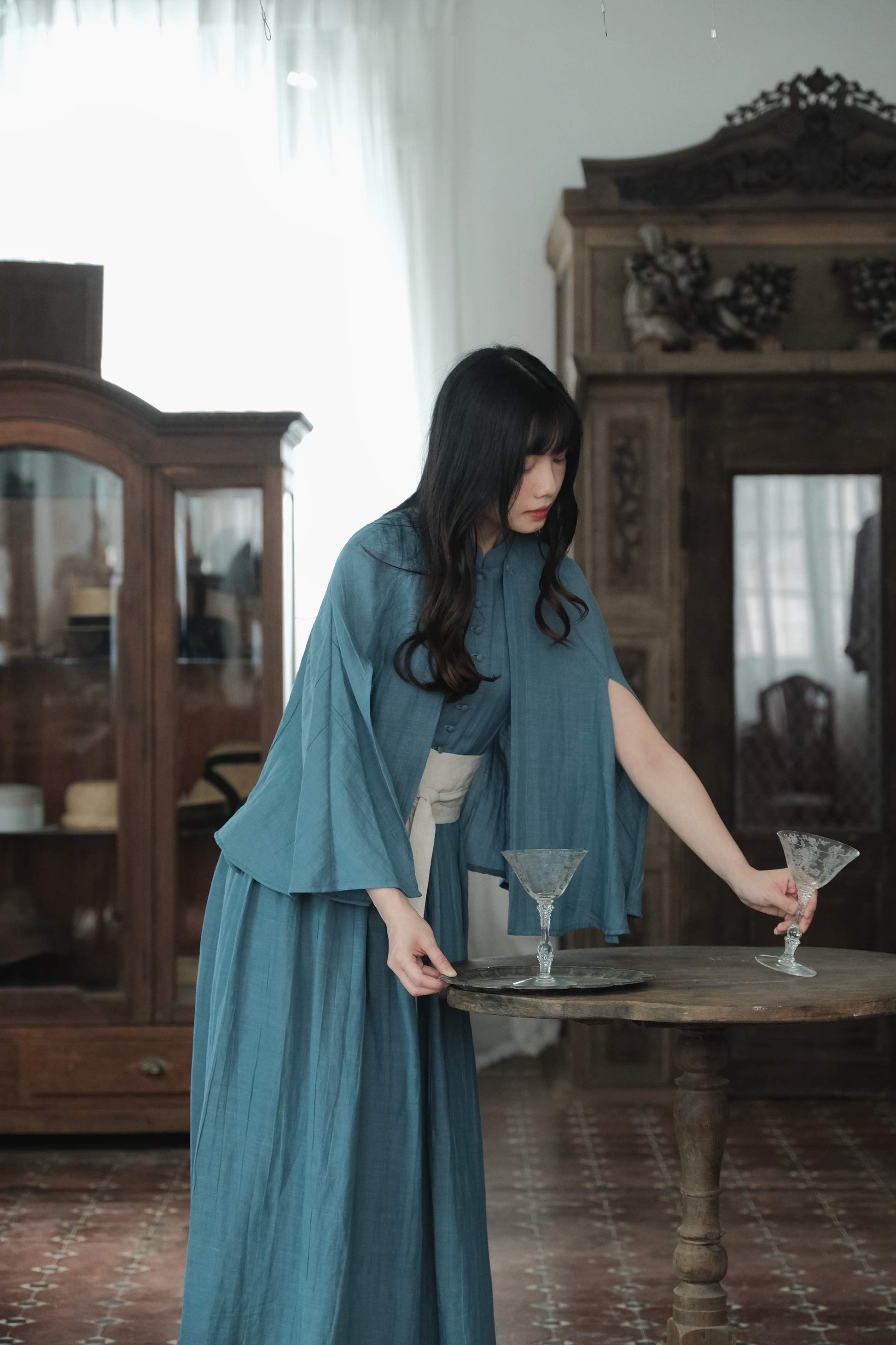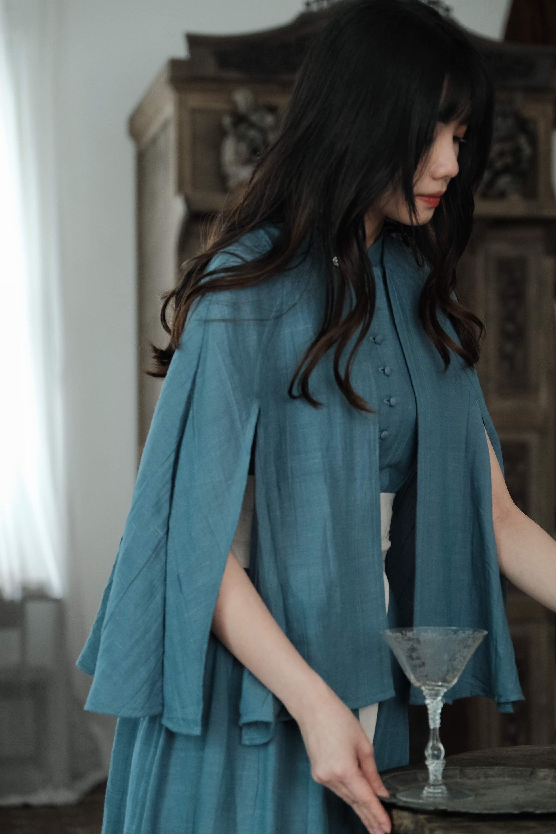 斗篷附有鈕扣可拆卸,拆後可作背心連身裙著用。