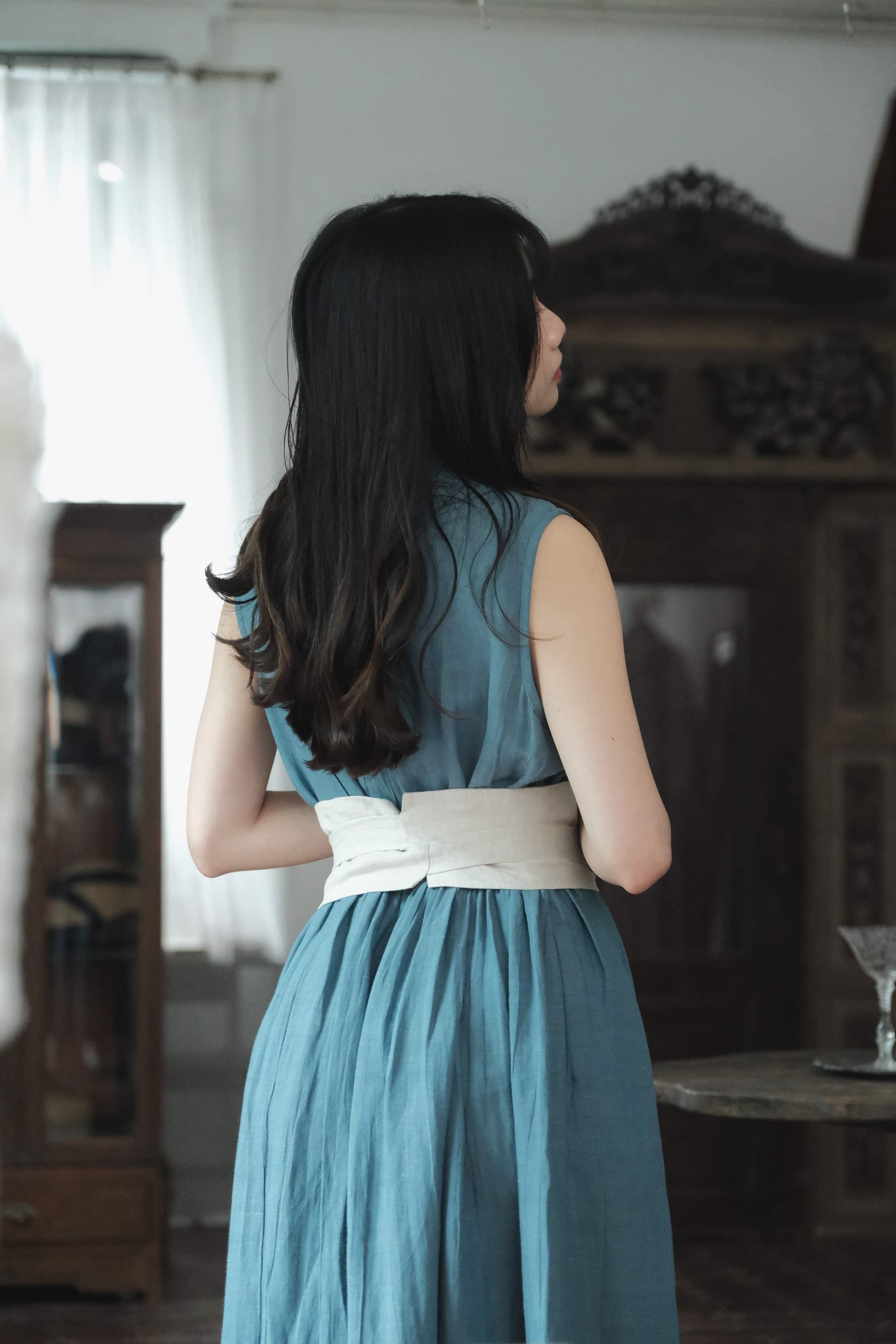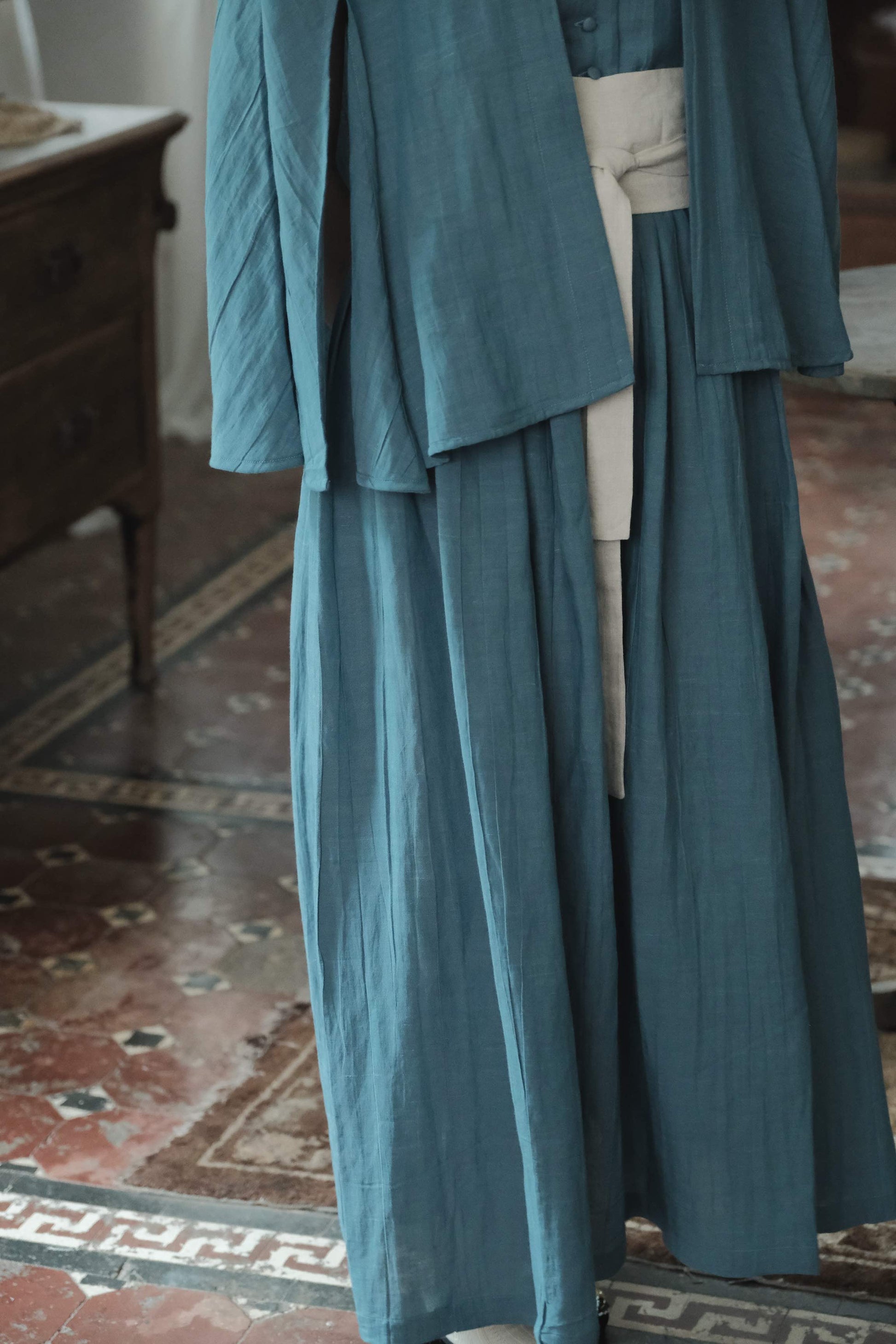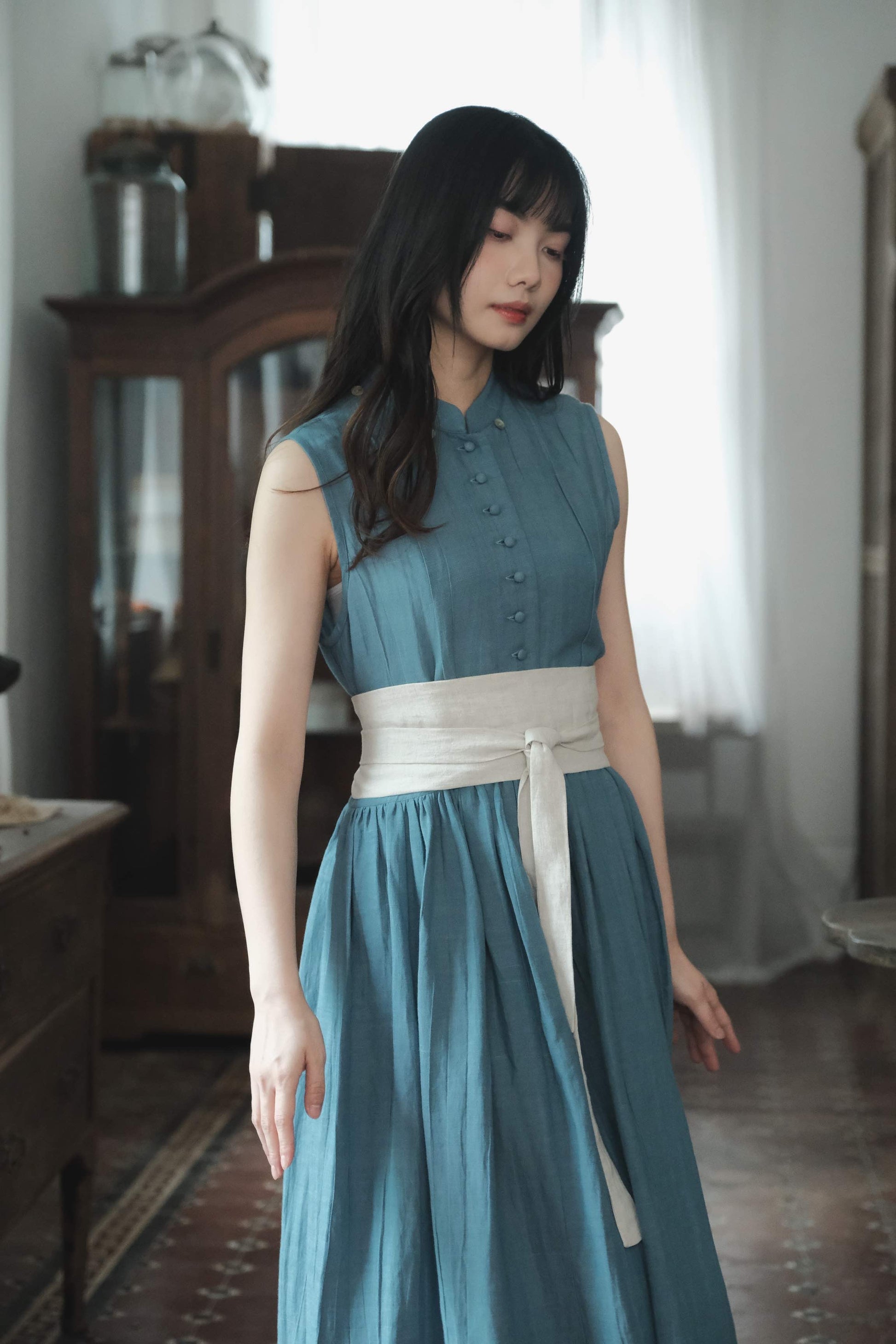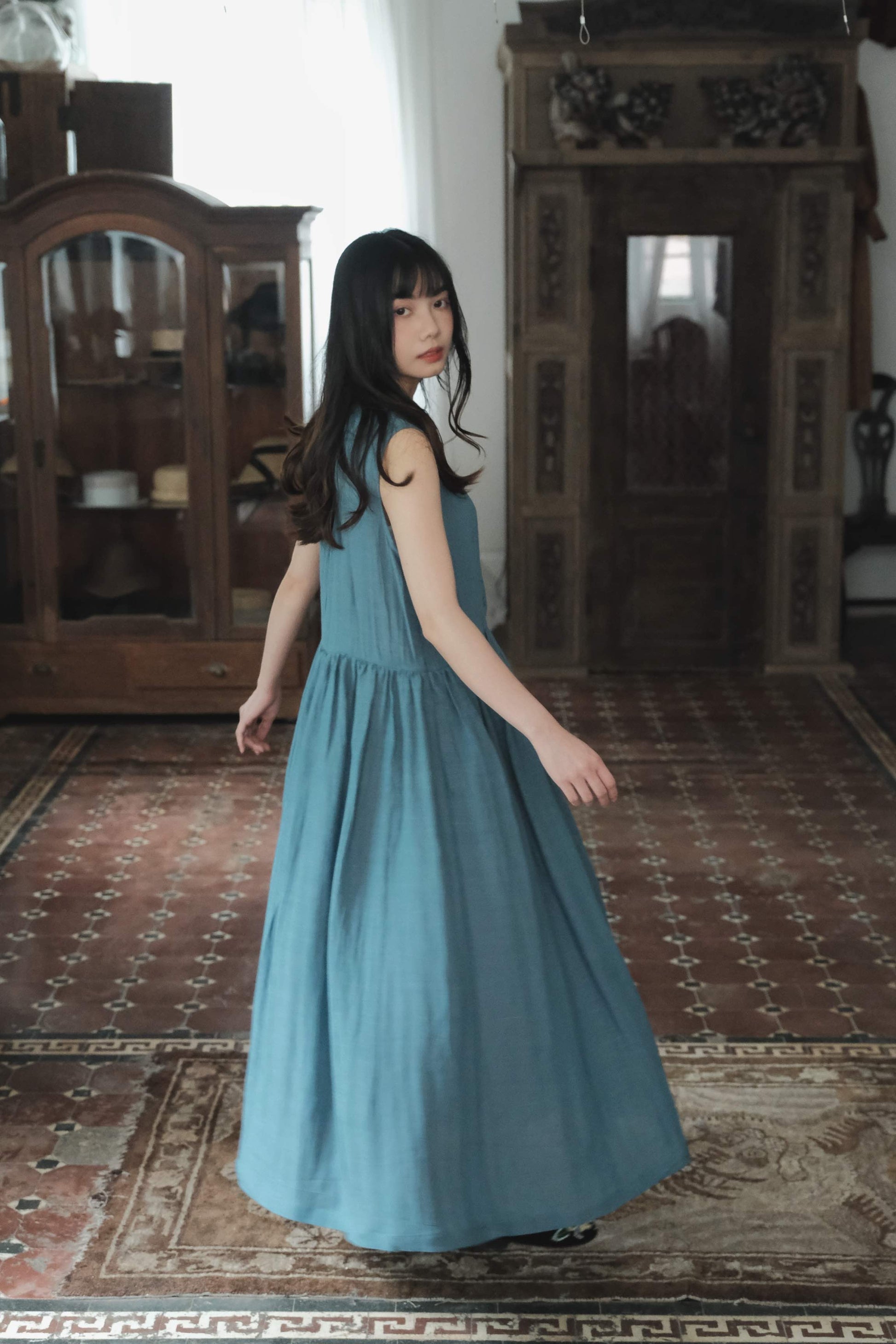 斗篷附有鈕扣可拆卸,拆後可作背心連身裙著用。