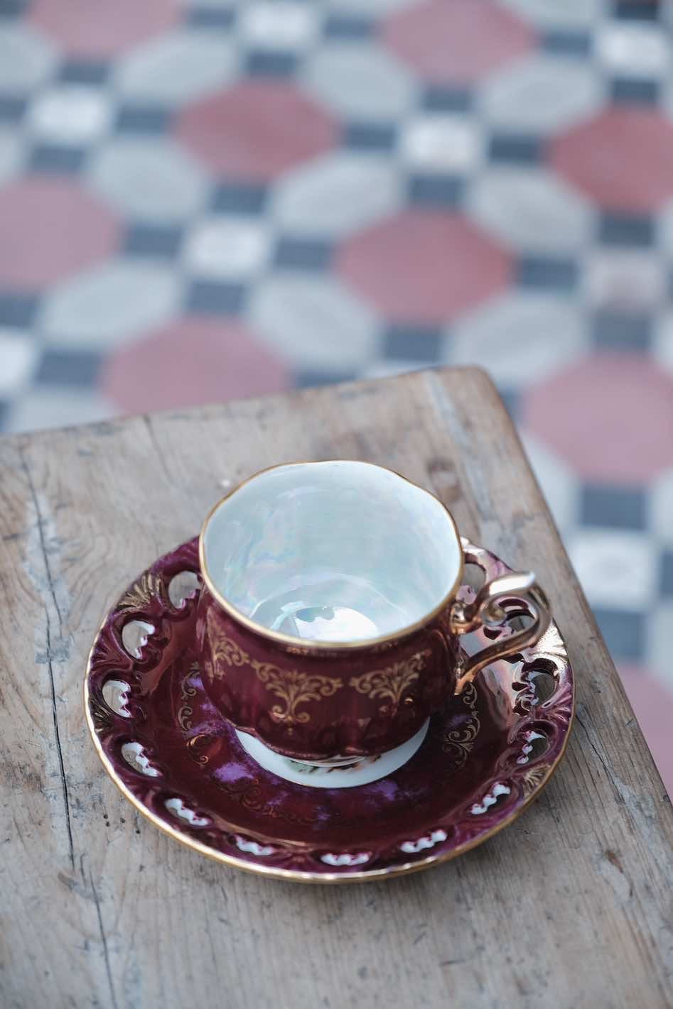 ·已停產Ohashi貝殼釉浮雕描金花茶紅茶杯(200ml)