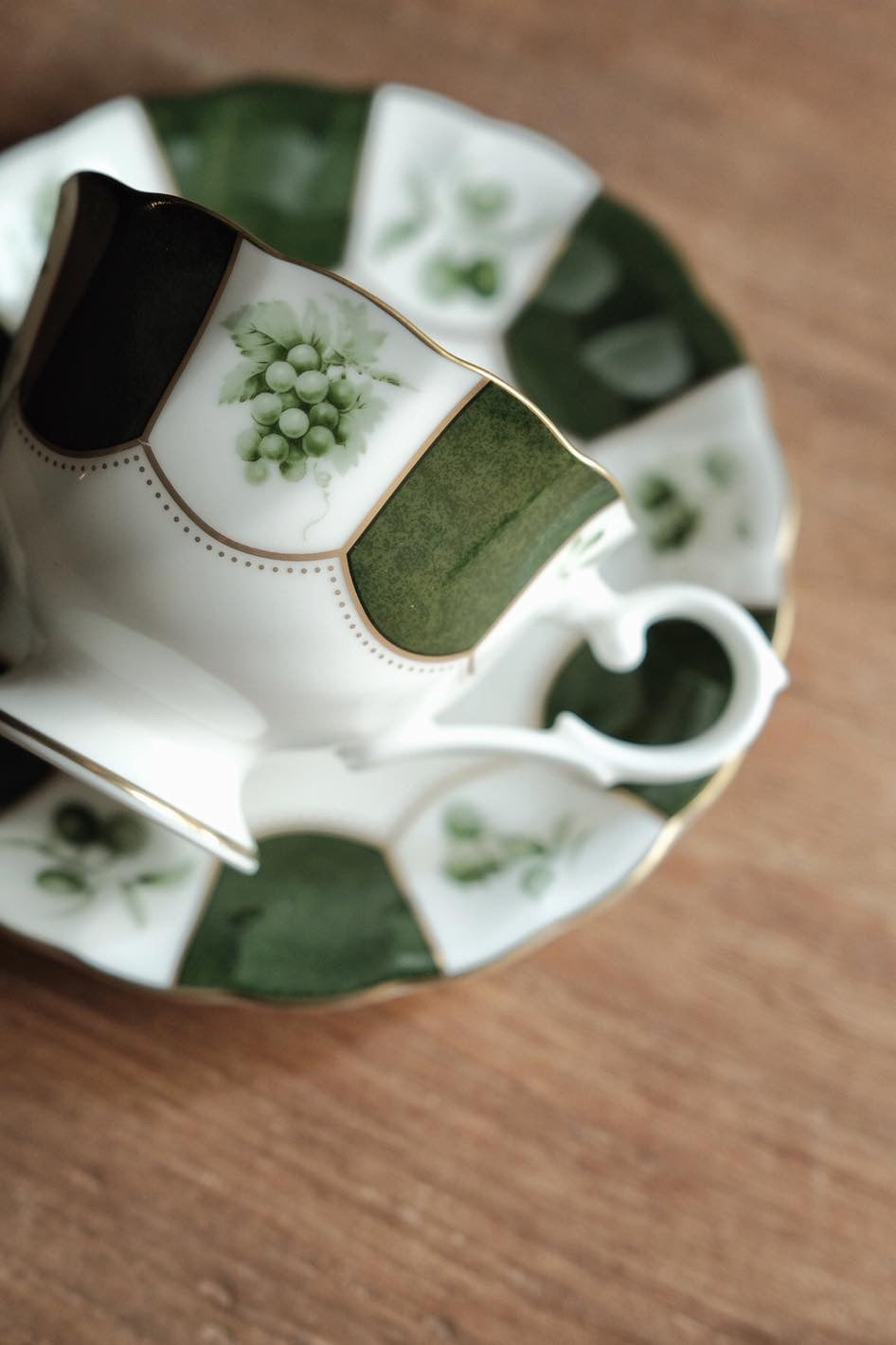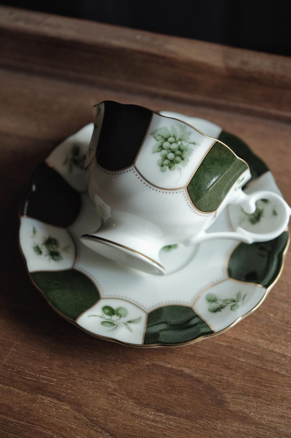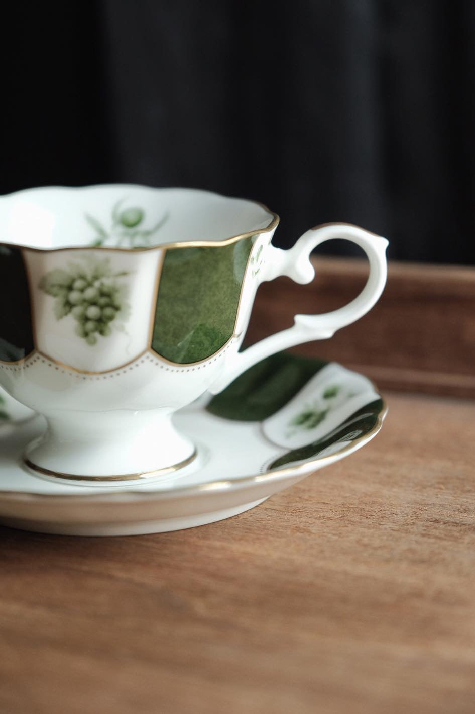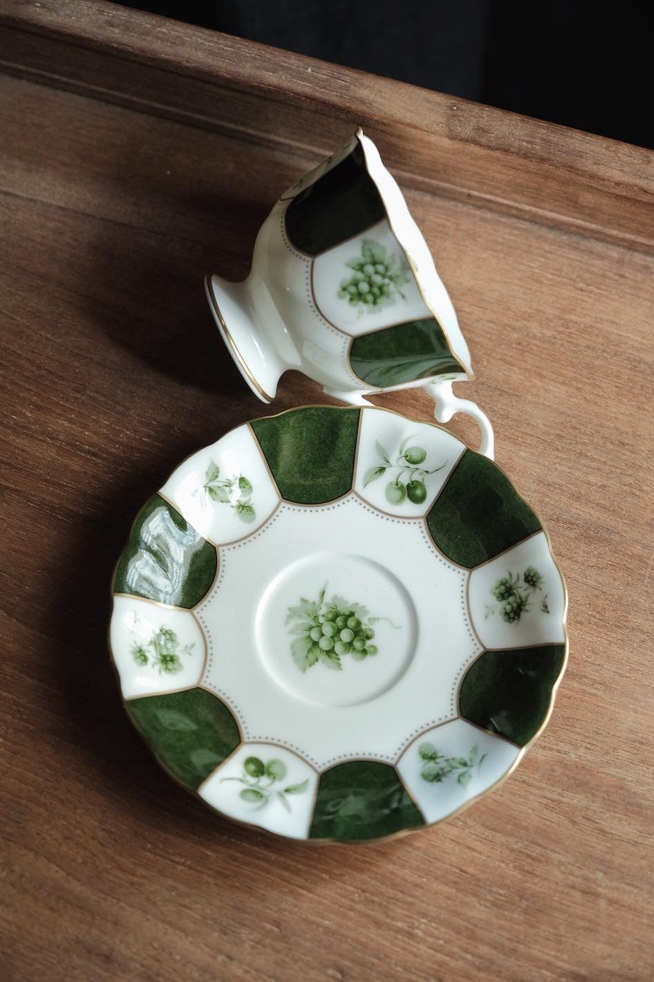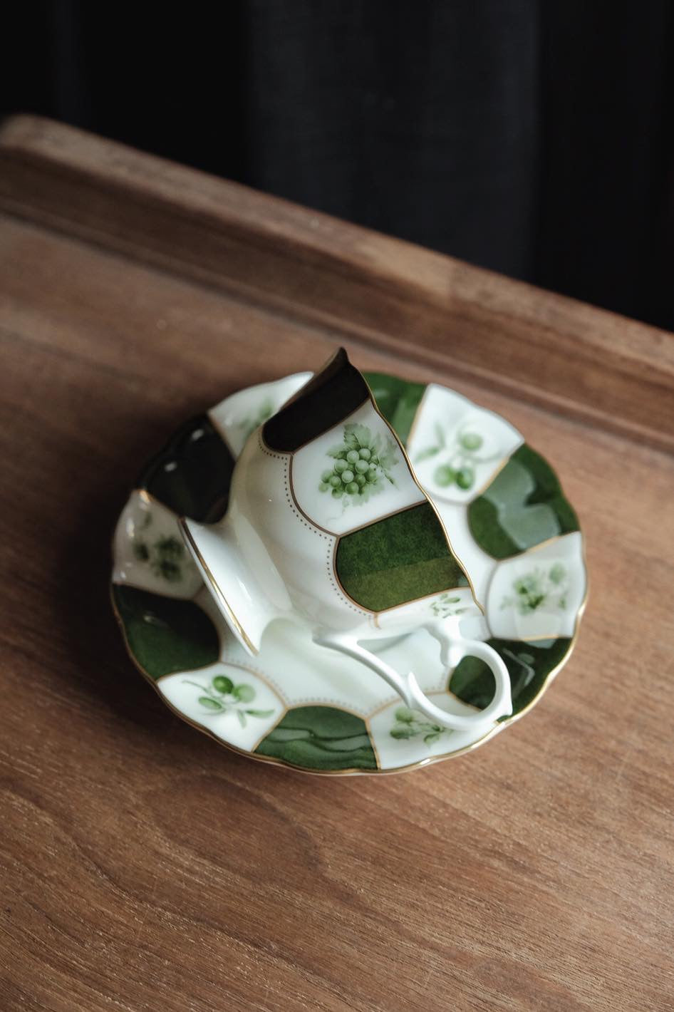 (店主推介)日本製·Hoya綠葡萄水磨石描金高足骨瓷紅茶杯(170ml)