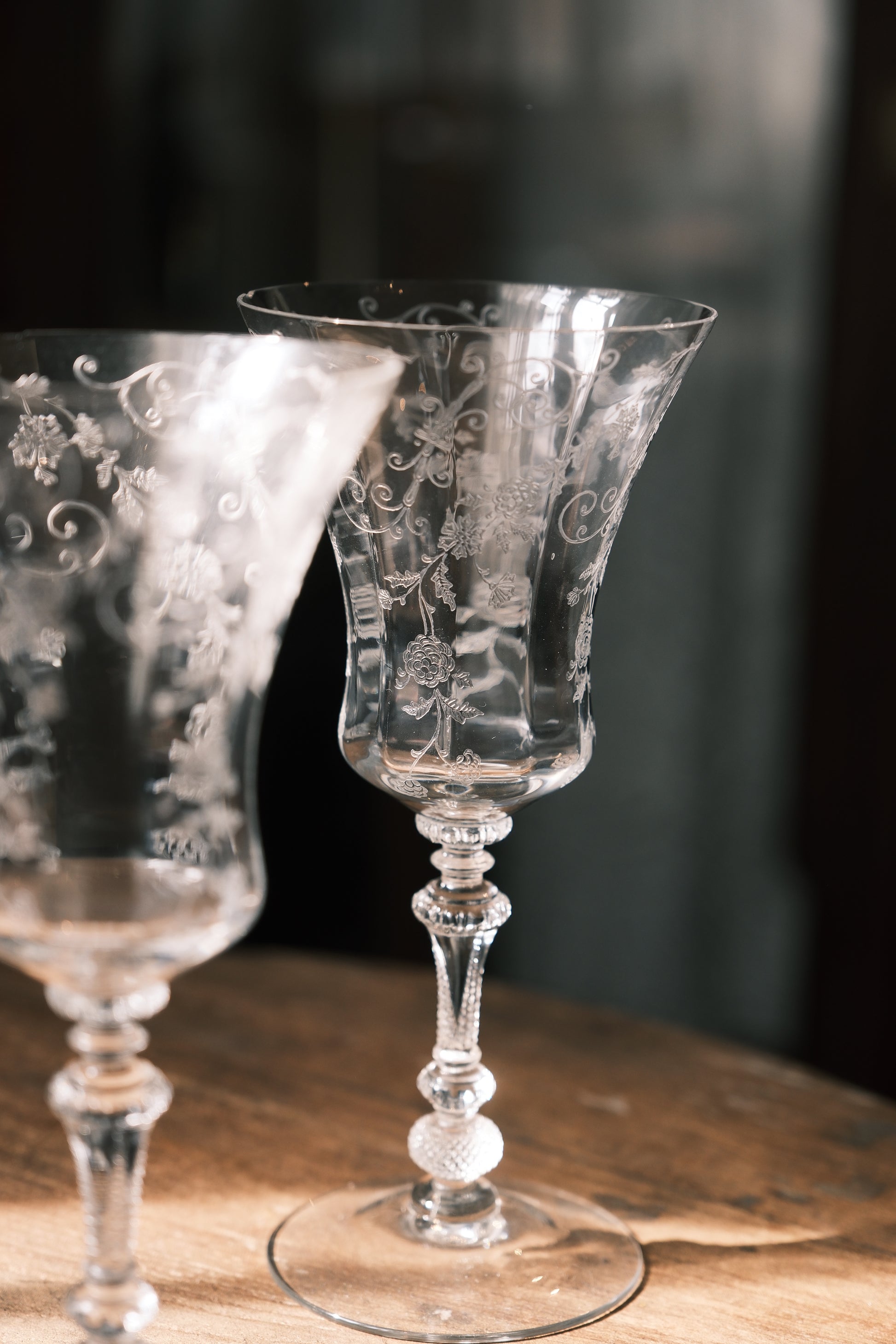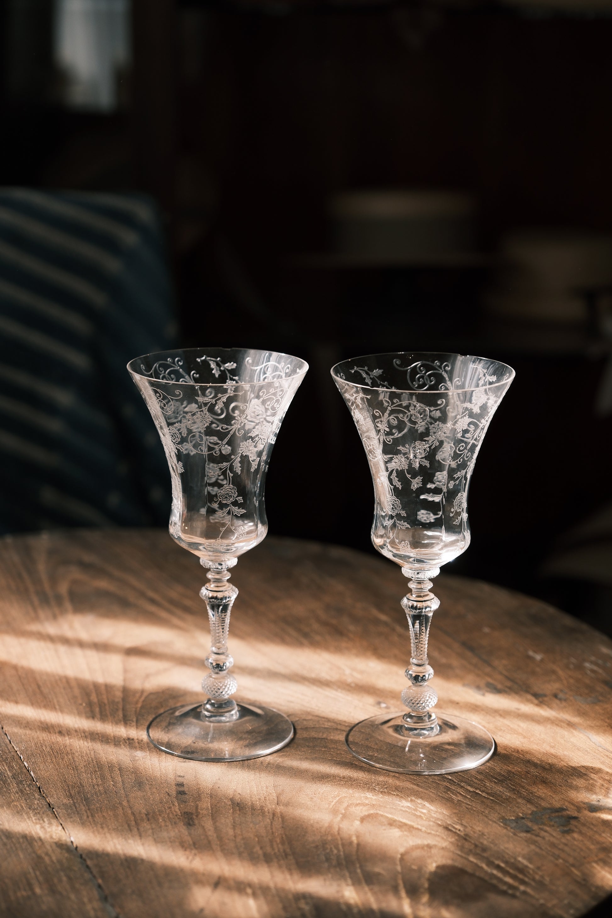 (微瑕疵特惠)美國製 • 1940年水晶玻璃蝕刻大酒杯(270ml)