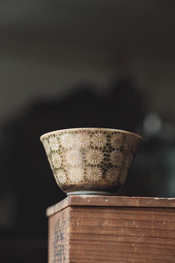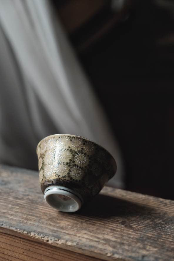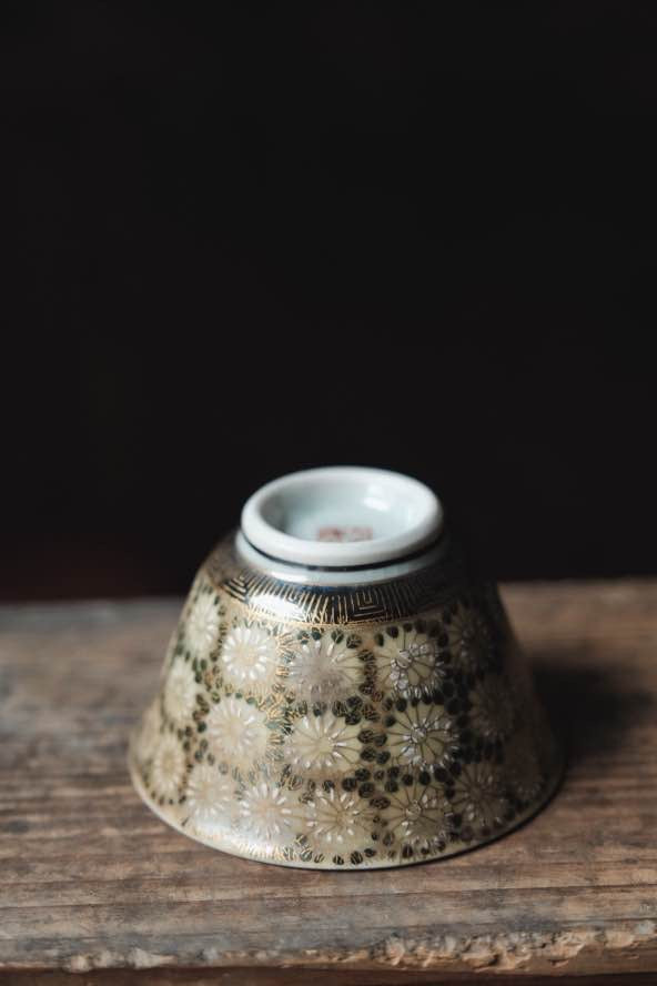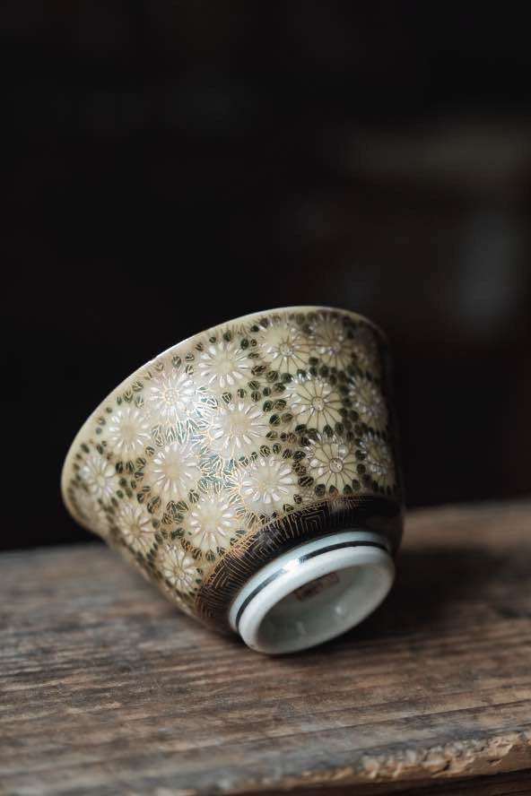 日本九谷燒手繪金調百花不落地茶杯(140ml)