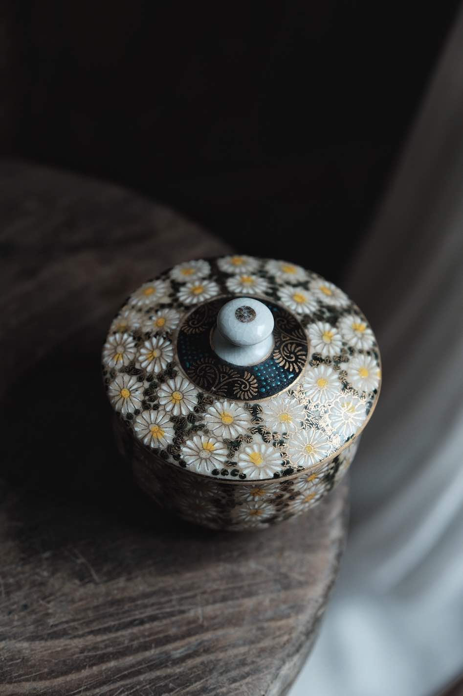 日本九谷燒百花不落地黑繪描金蓋杯(180ml)