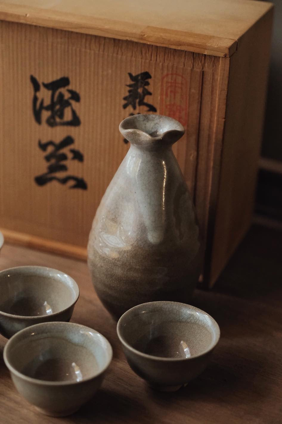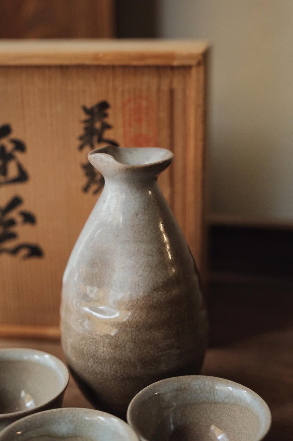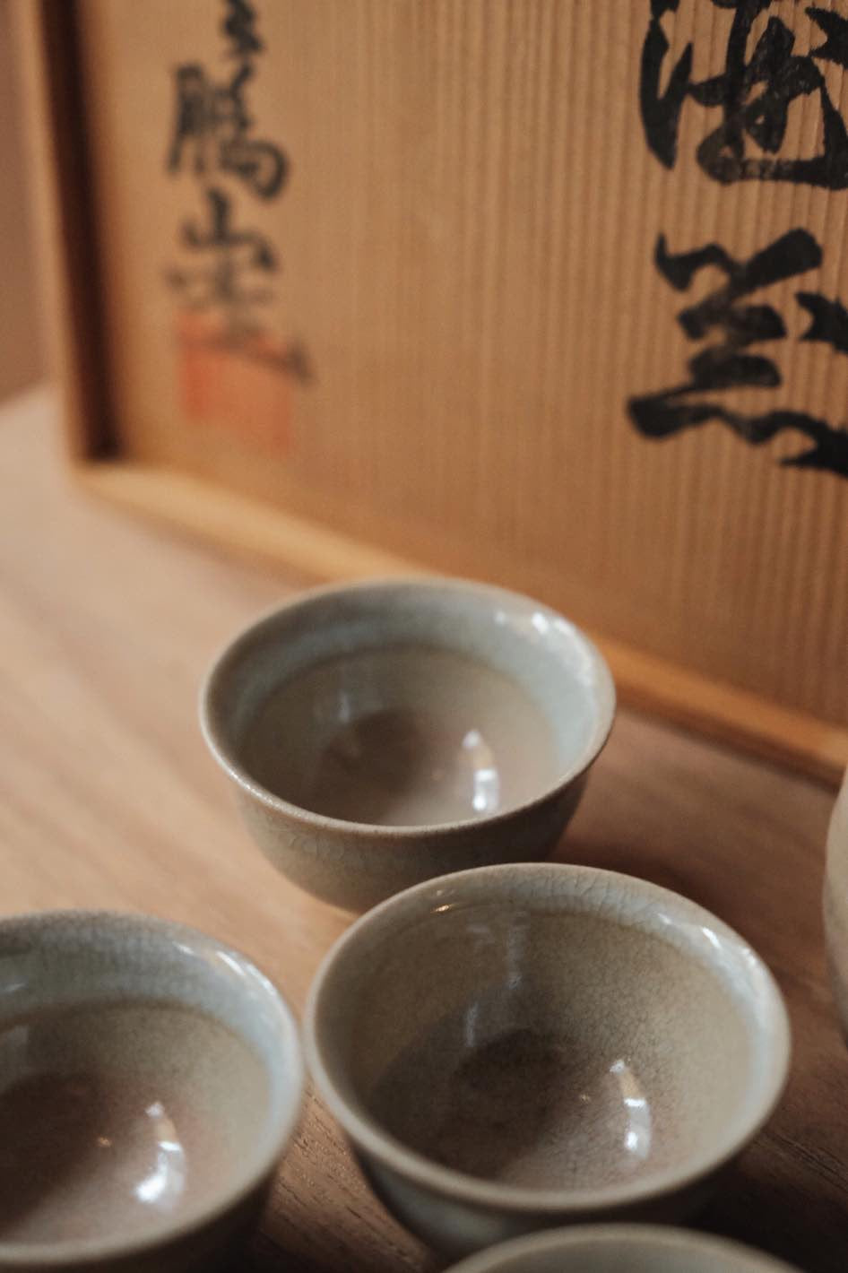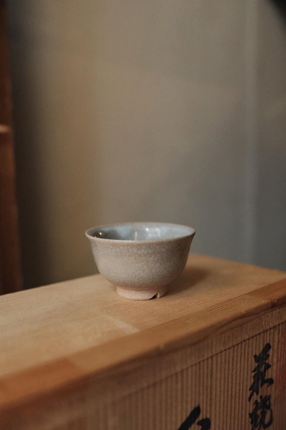 日本萩燒本窯·天鵬山。手工製作,杯底割高台,雅致精美。冰紋開片。釉色清雅柔和,待客彰顯品味。付供盒。