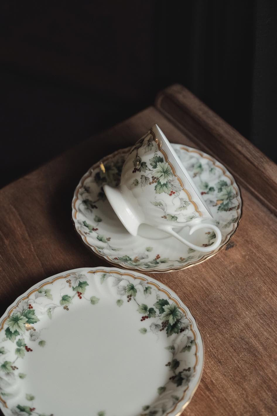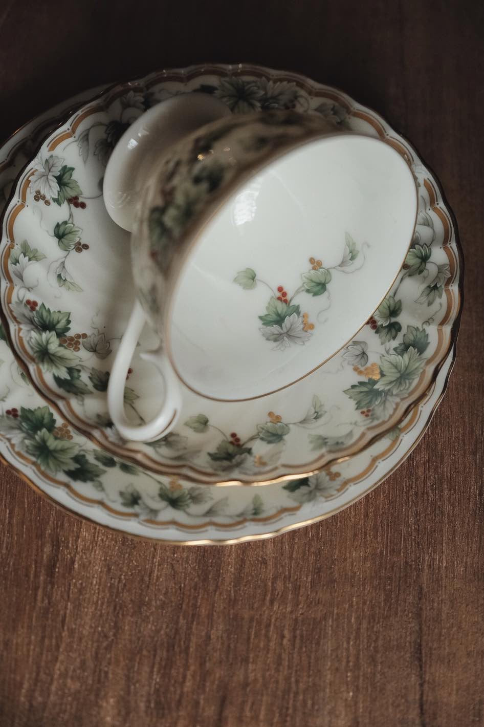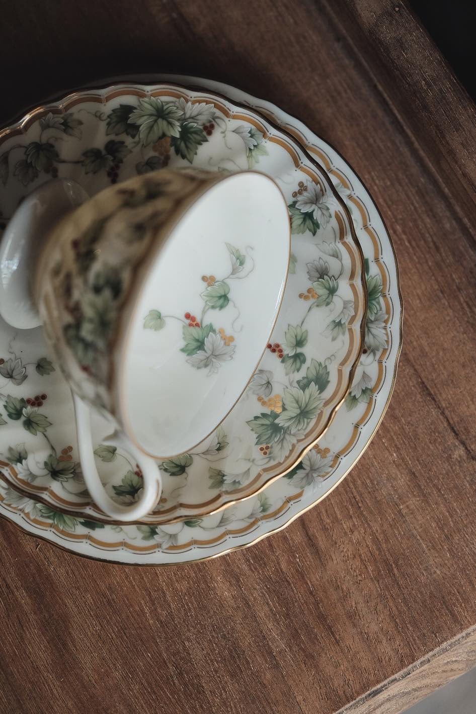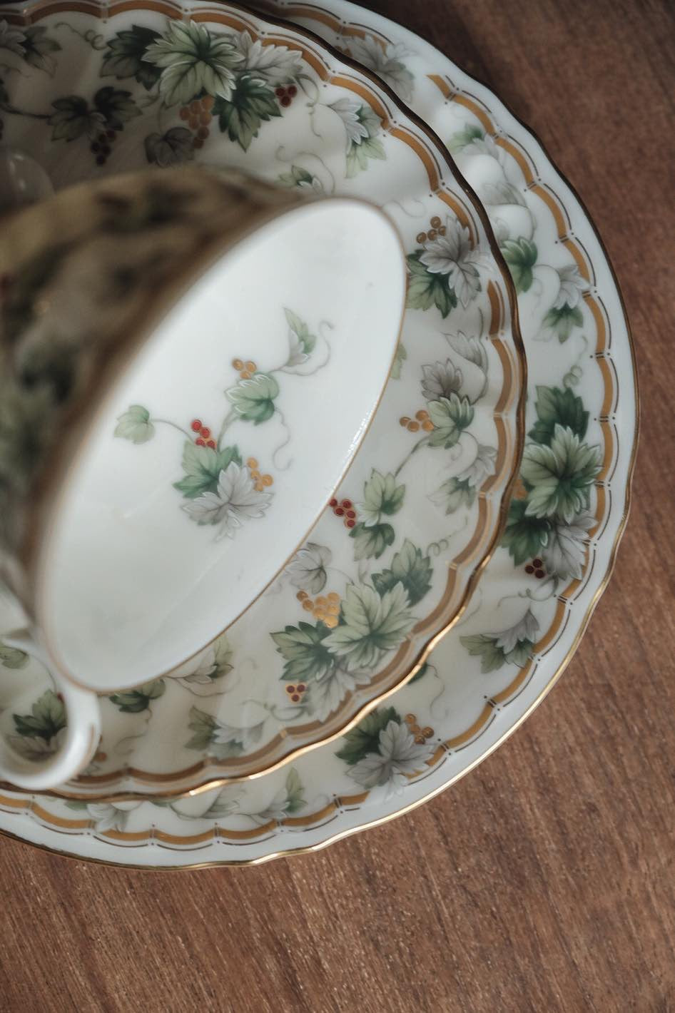 日本製嗚海NARUMI内繪葡萄藤骨瓷咖啡杯碟連甜點碟(210ml)