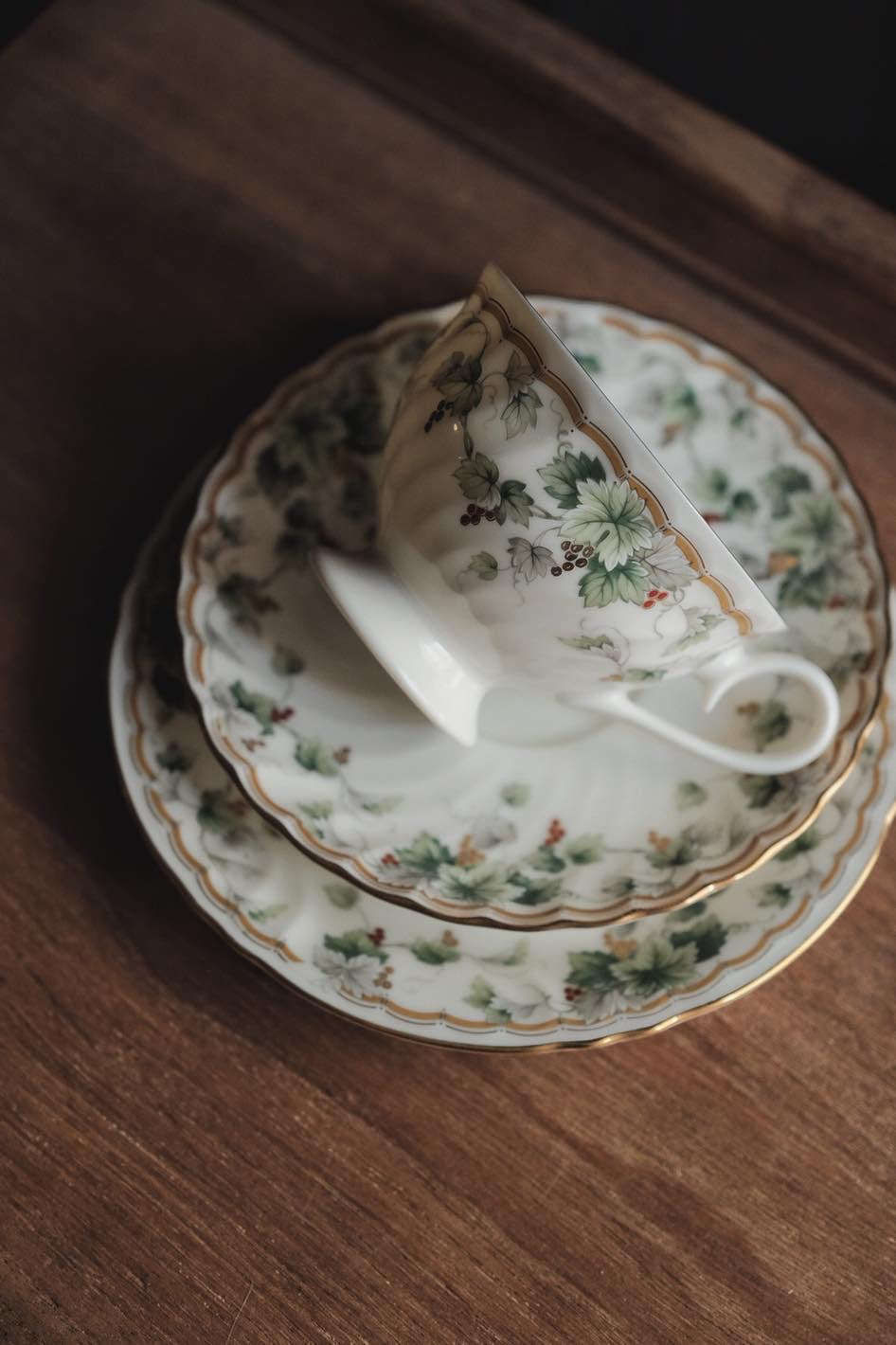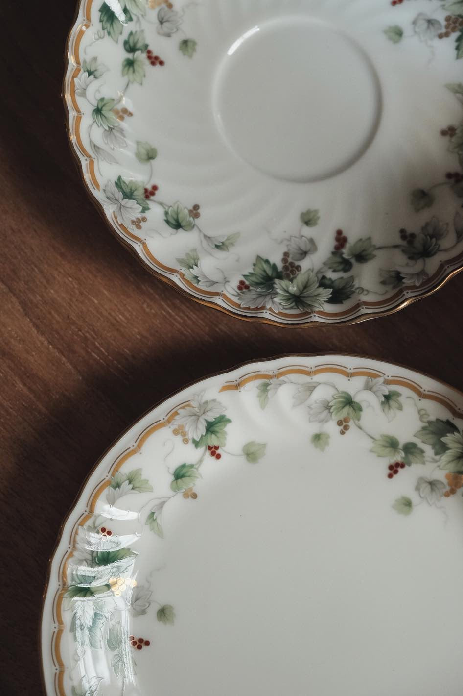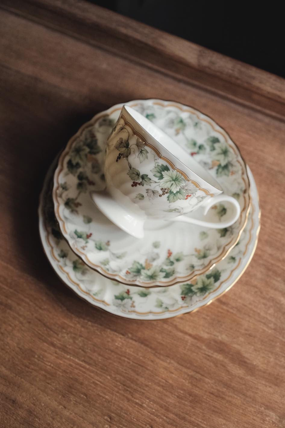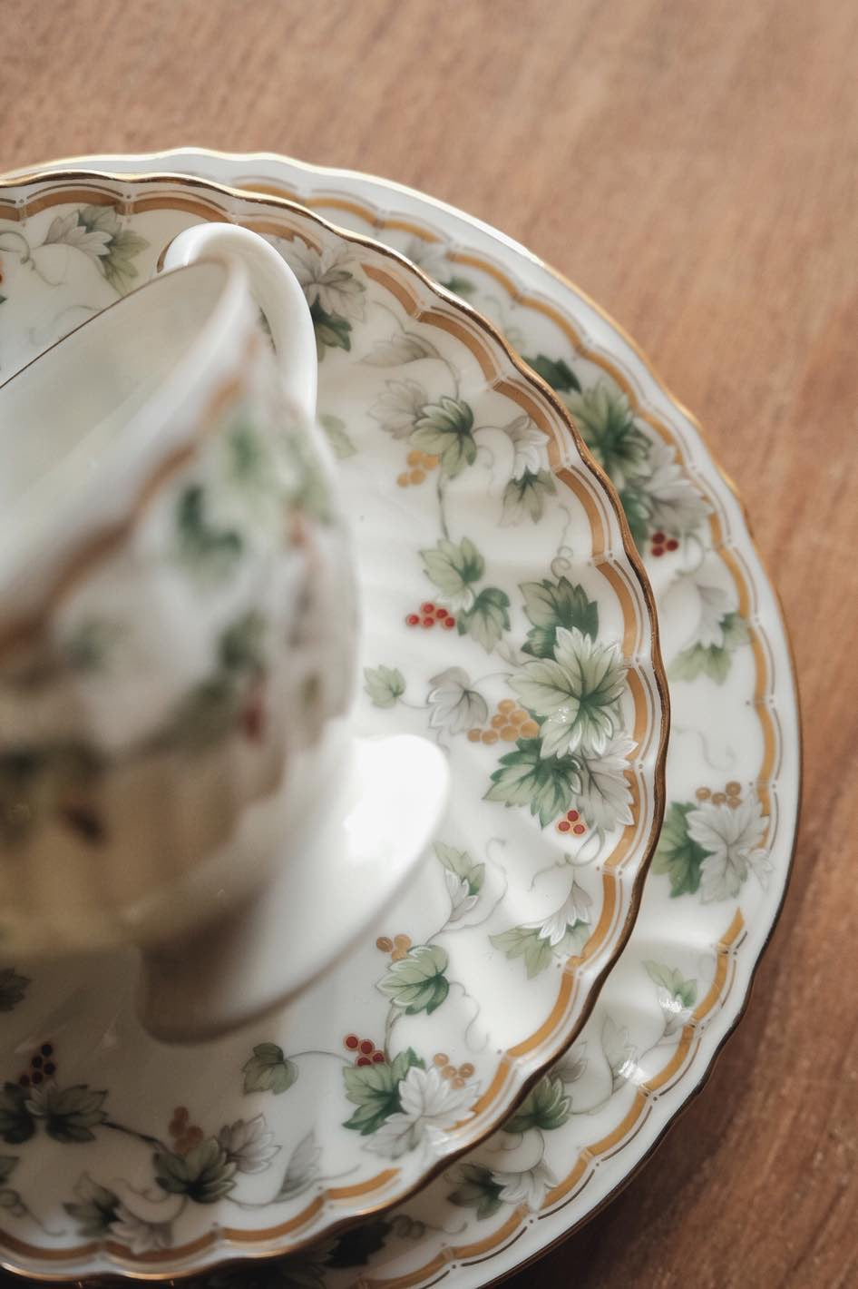 日本製嗚海NARUMI内繪葡萄藤骨瓷咖啡杯碟連甜點碟(210ml)