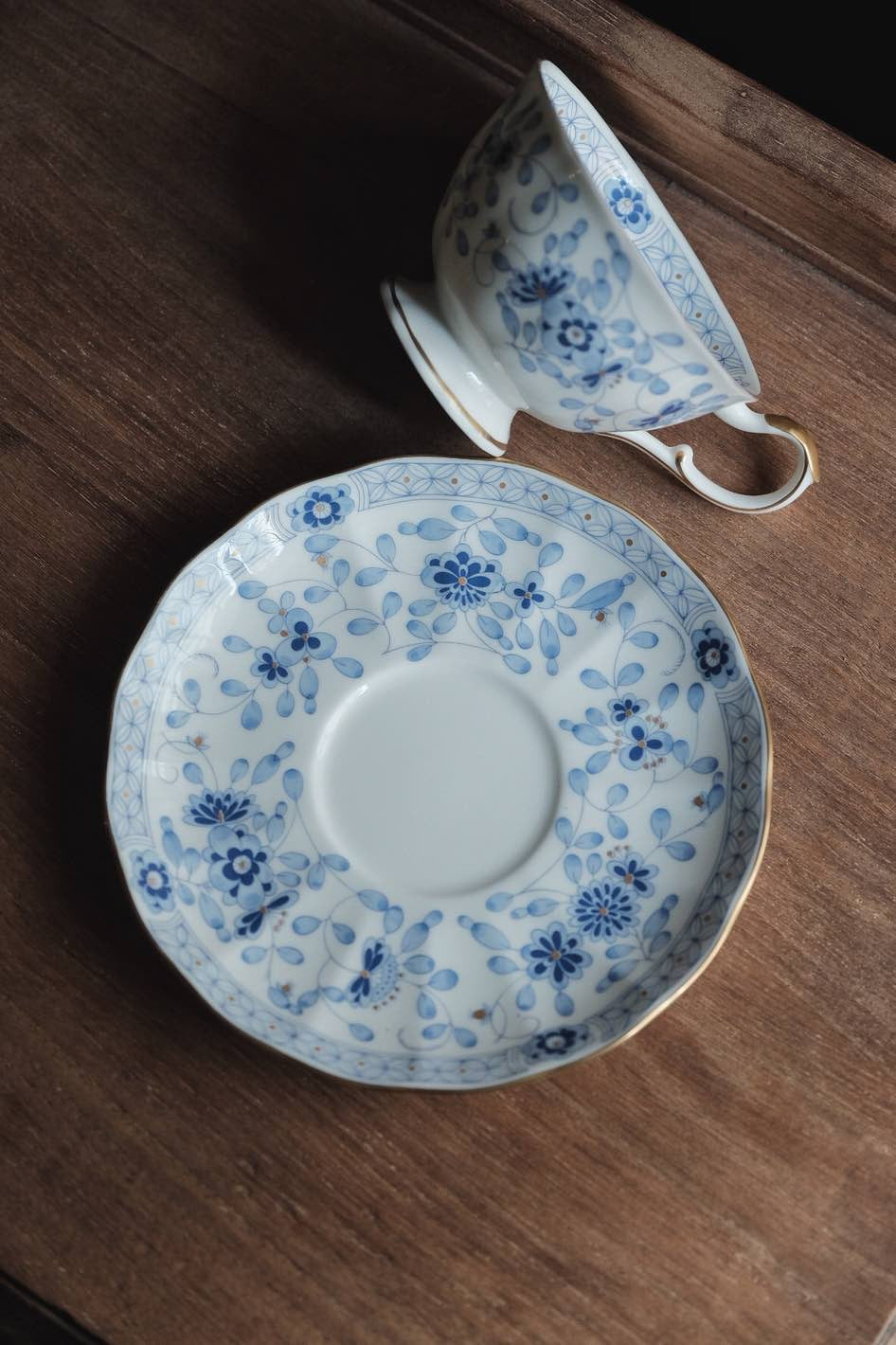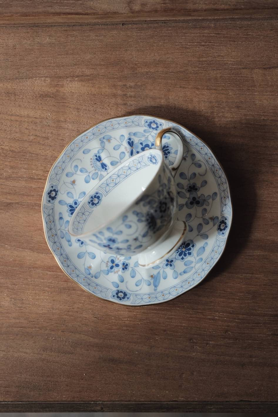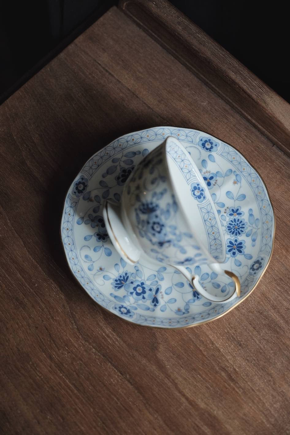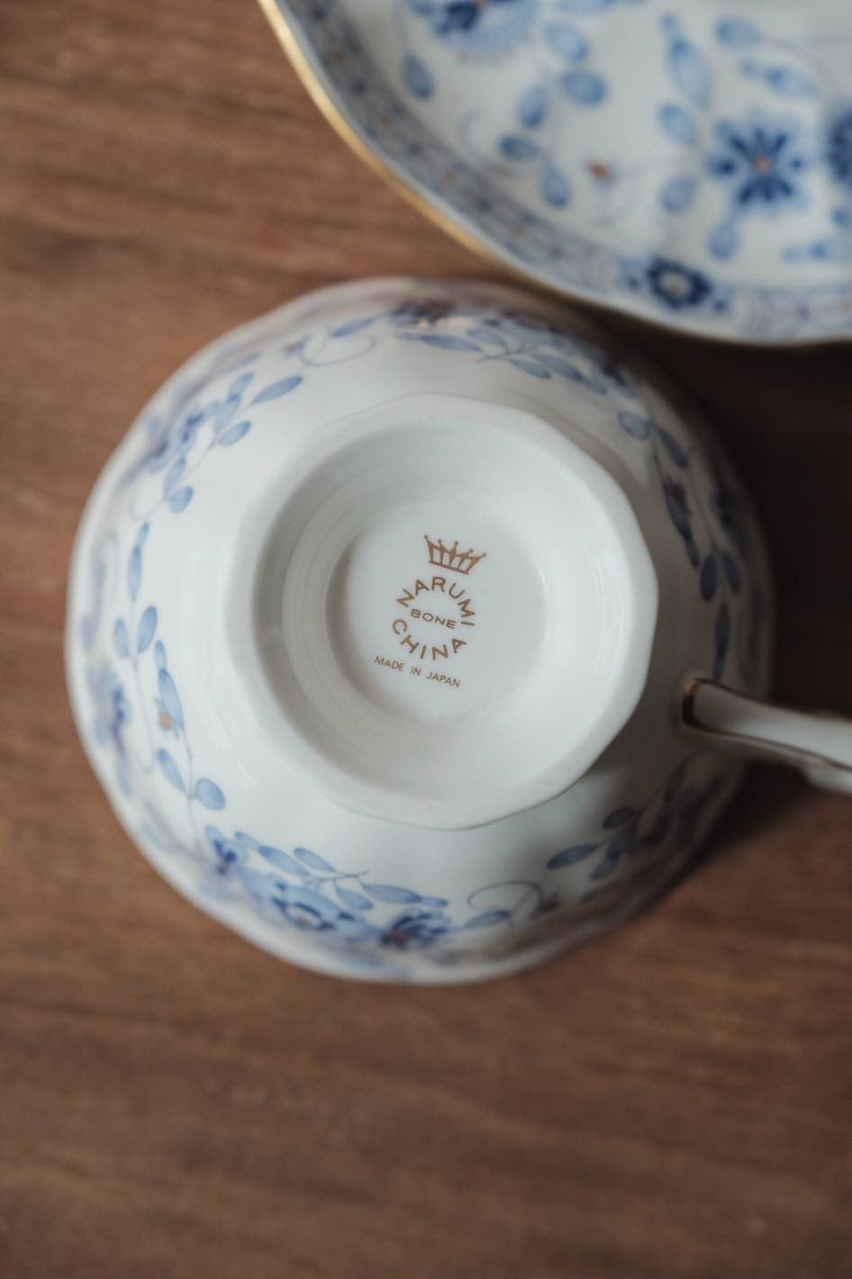 日本製嗚海NARUMI内繪青付花滿工描金骨瓷紅茶杯碟(210ml)