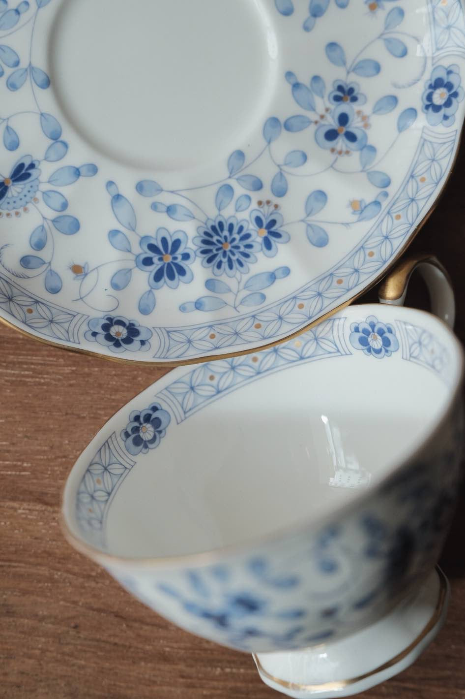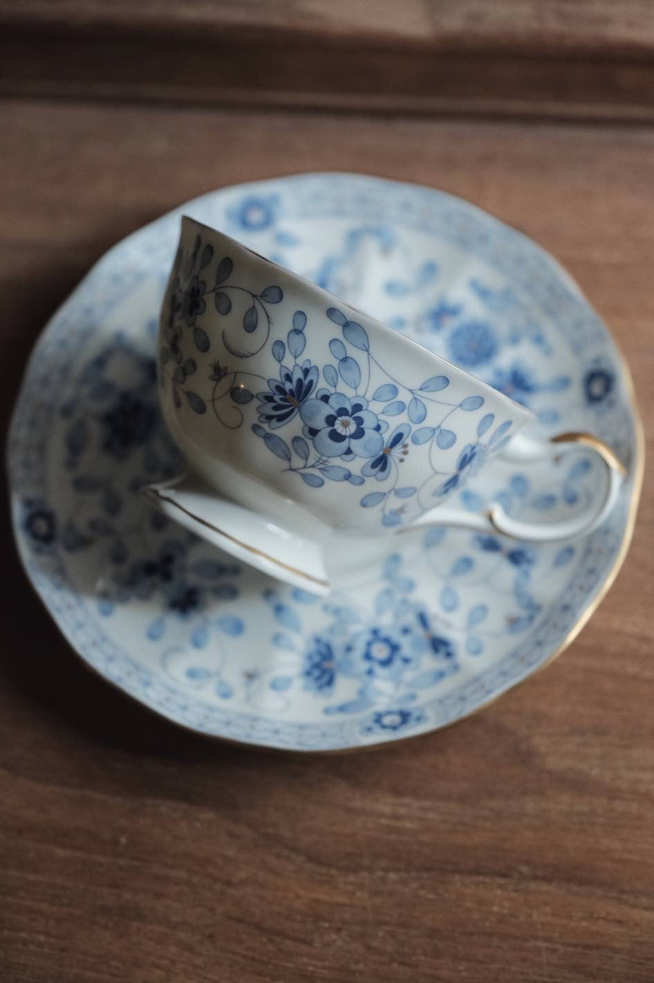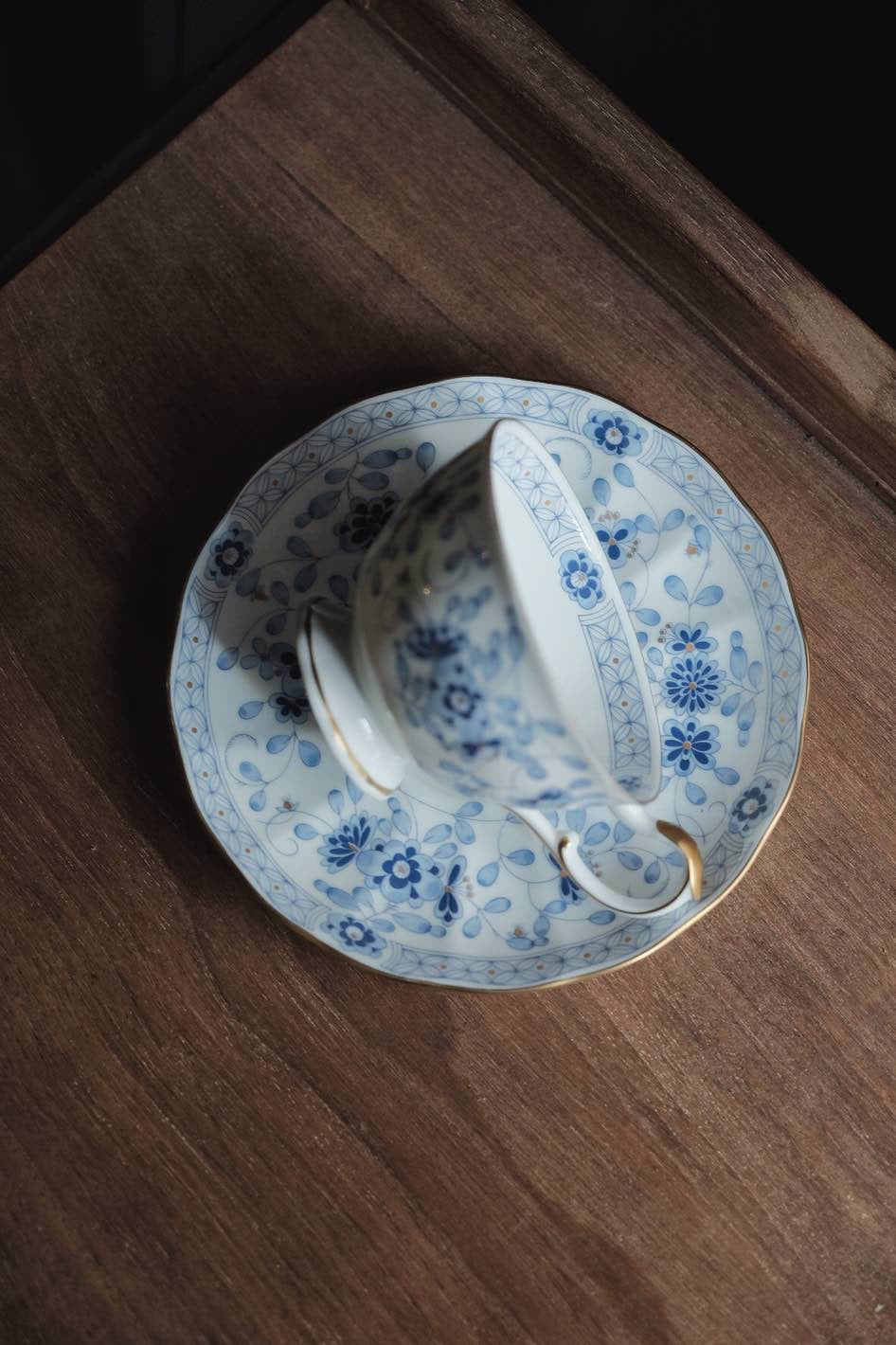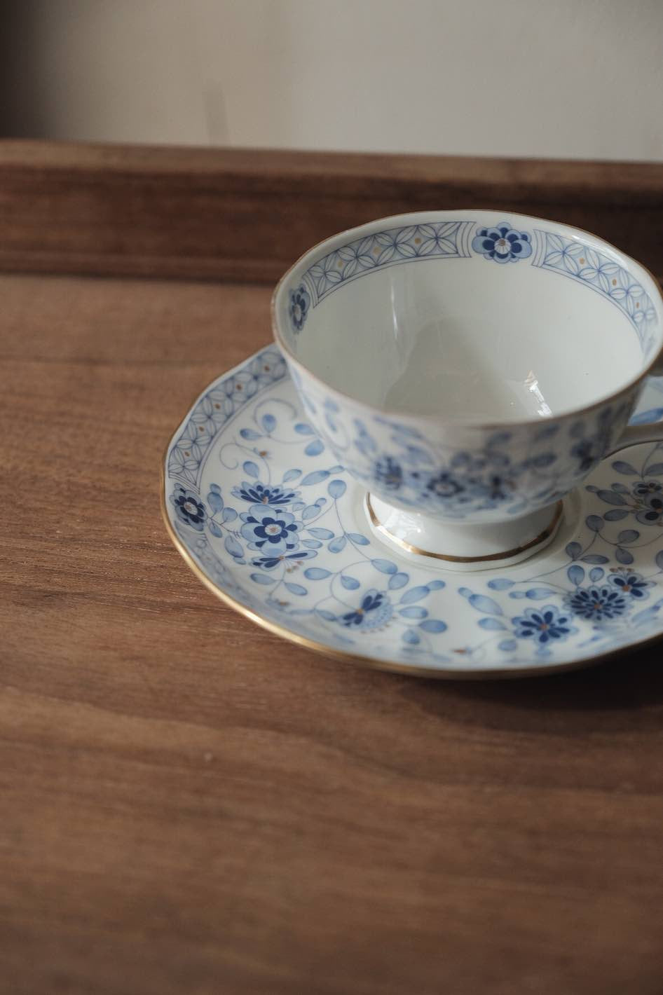 日本製嗚海NARUMI内繪青付花滿工描金骨瓷紅茶杯碟(210ml)