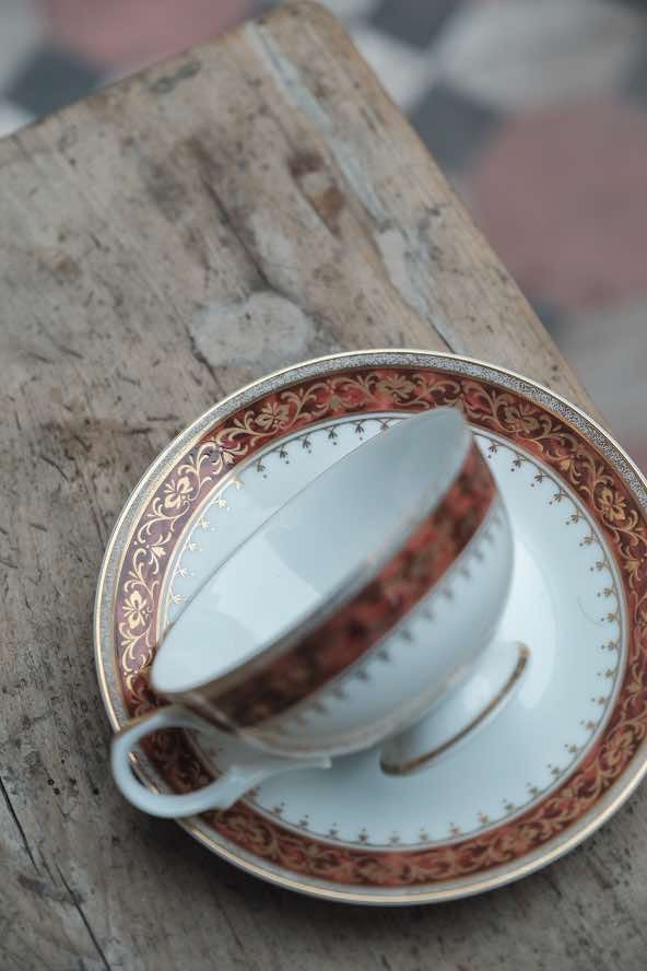 日本製嗚海NARUMI描金花紅骨瓷紅茶杯碟(180ml) 一杯一碟
