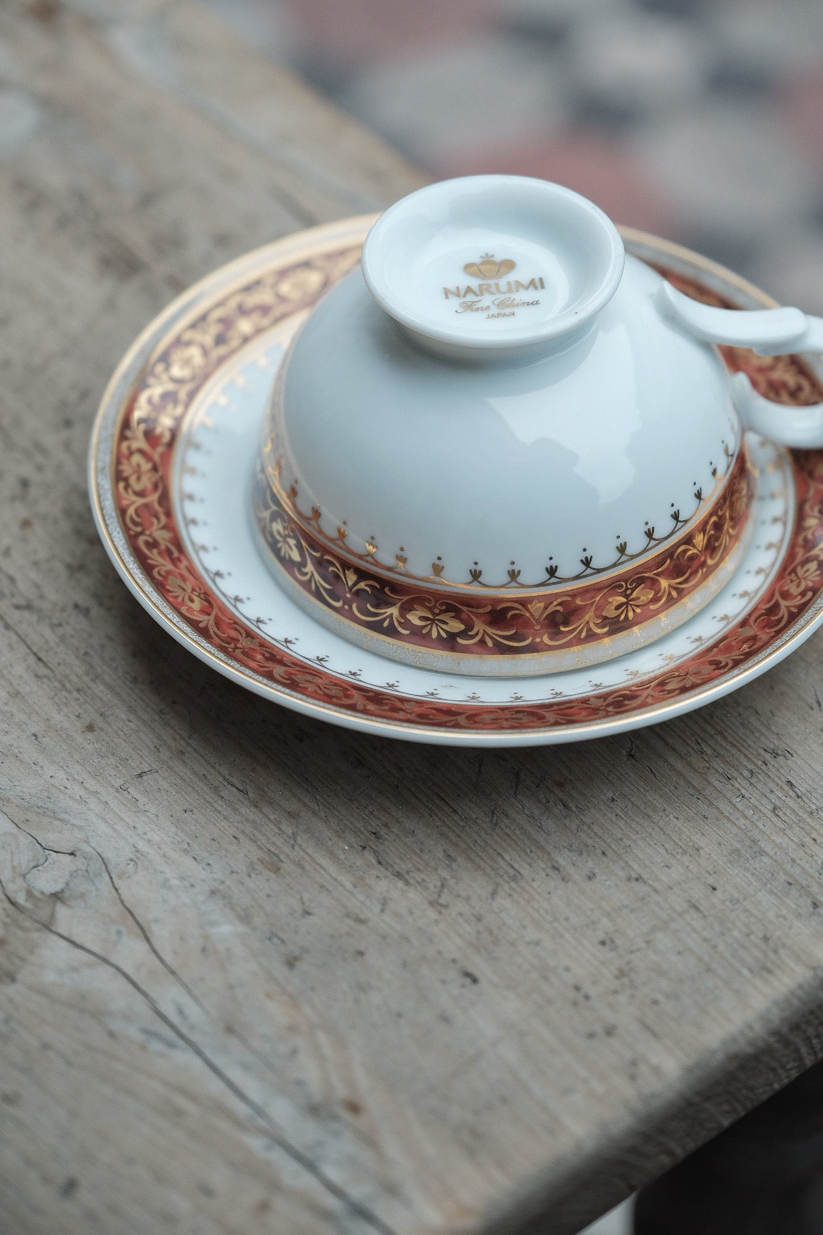 日本製嗚海NARUMI描金花紅骨瓷紅茶杯碟(180ml)
