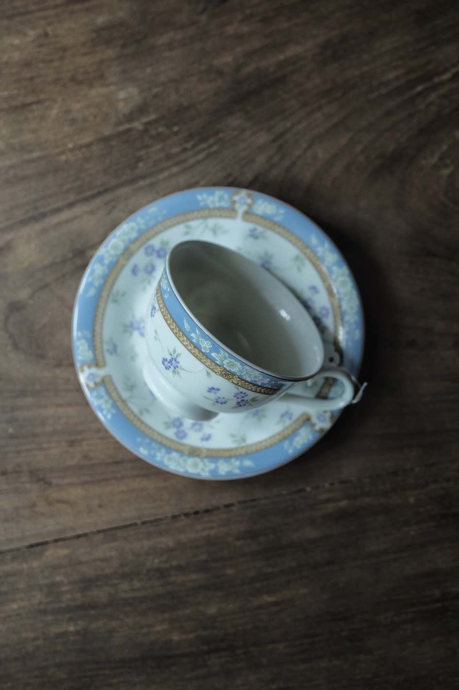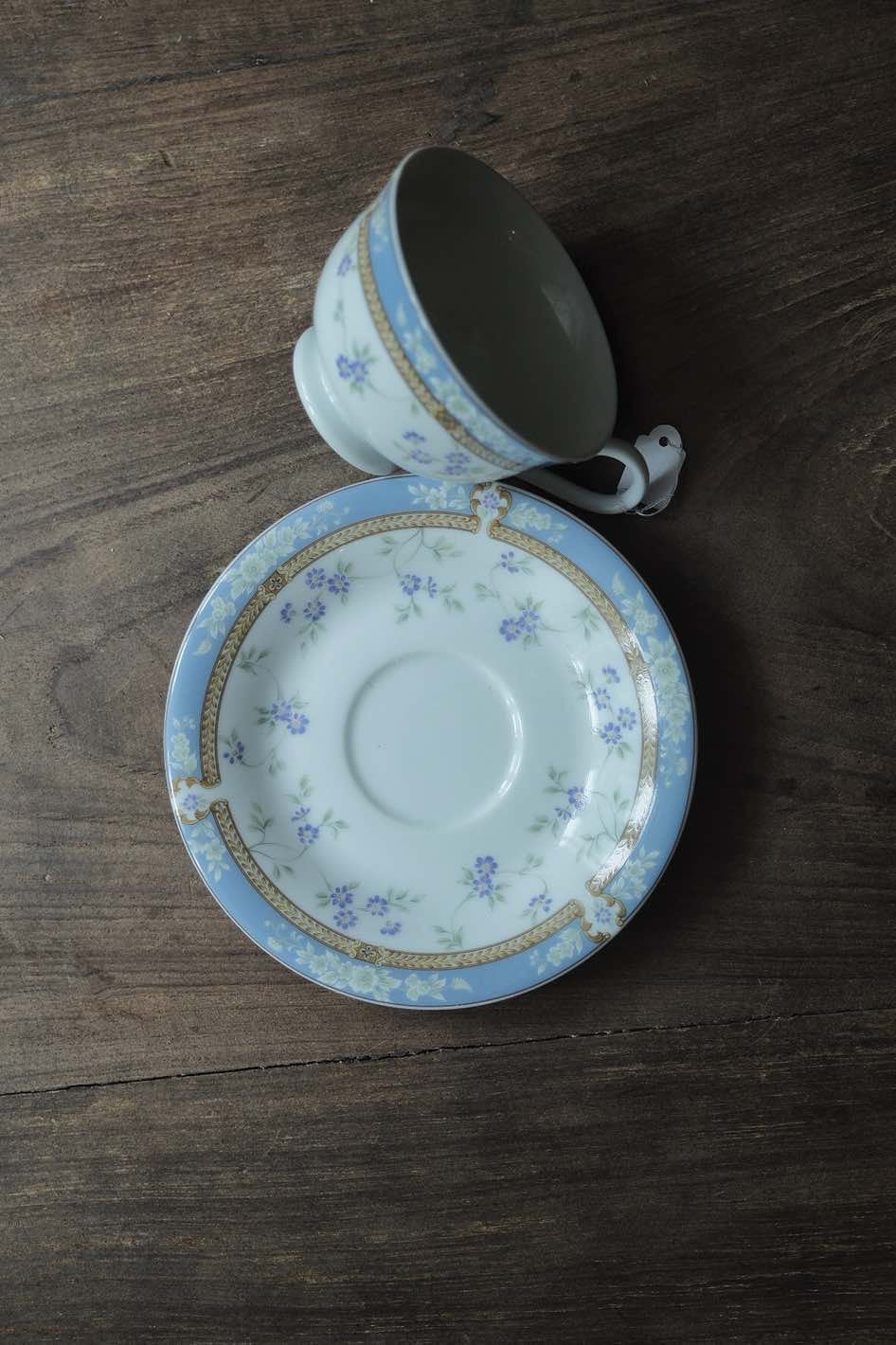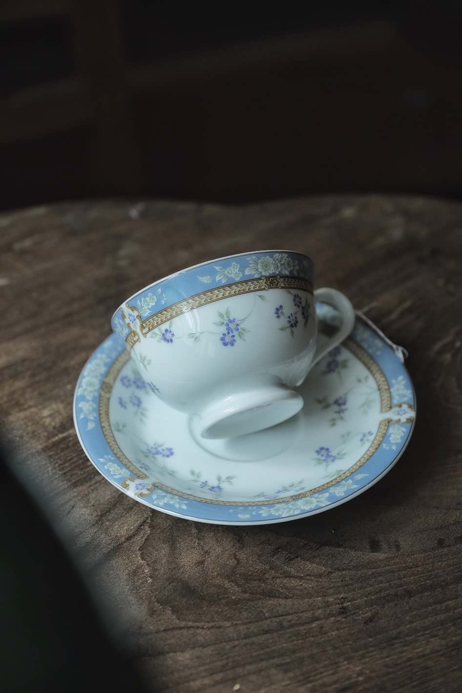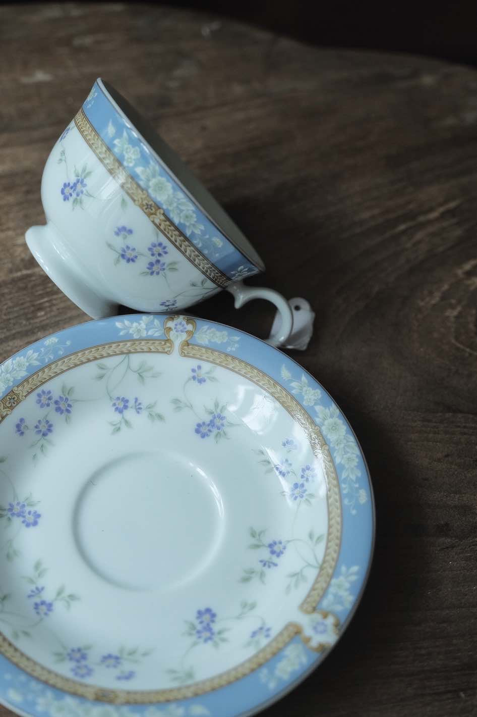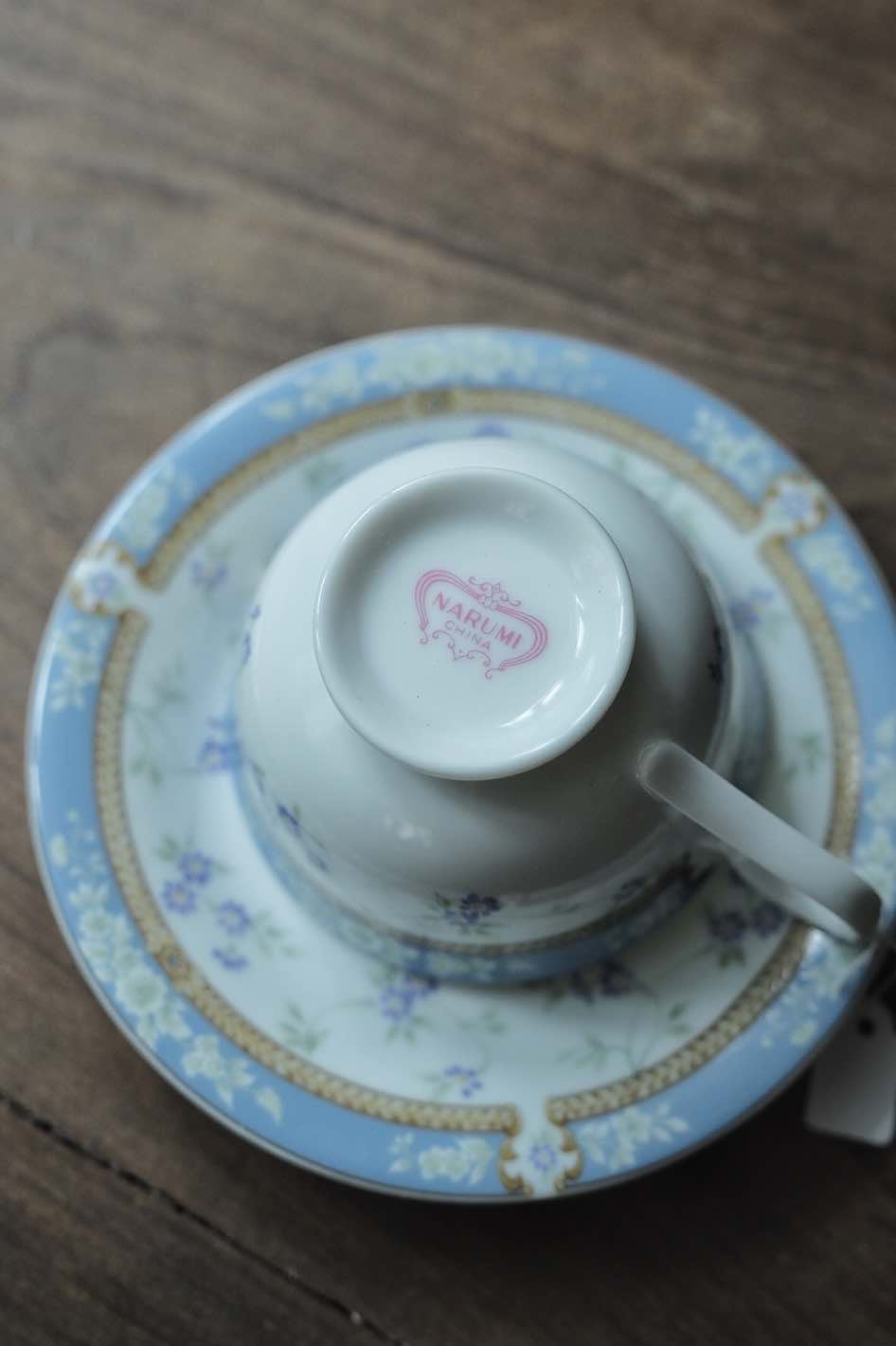 日本製嗚海NARUMI灰藍花描金骨瓷紅茶杯碟(200ml) 一杯一碟