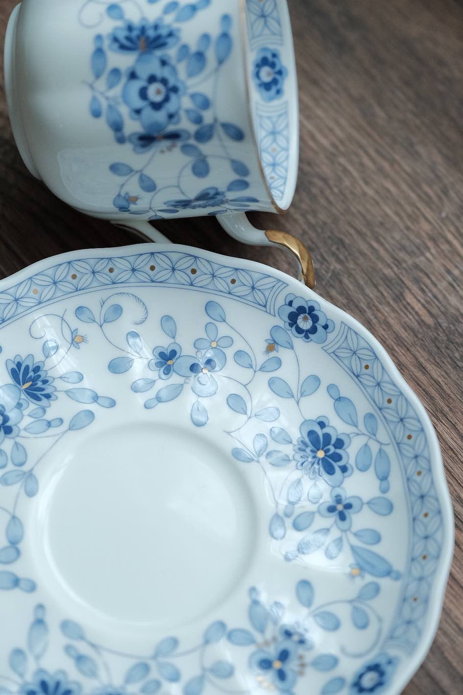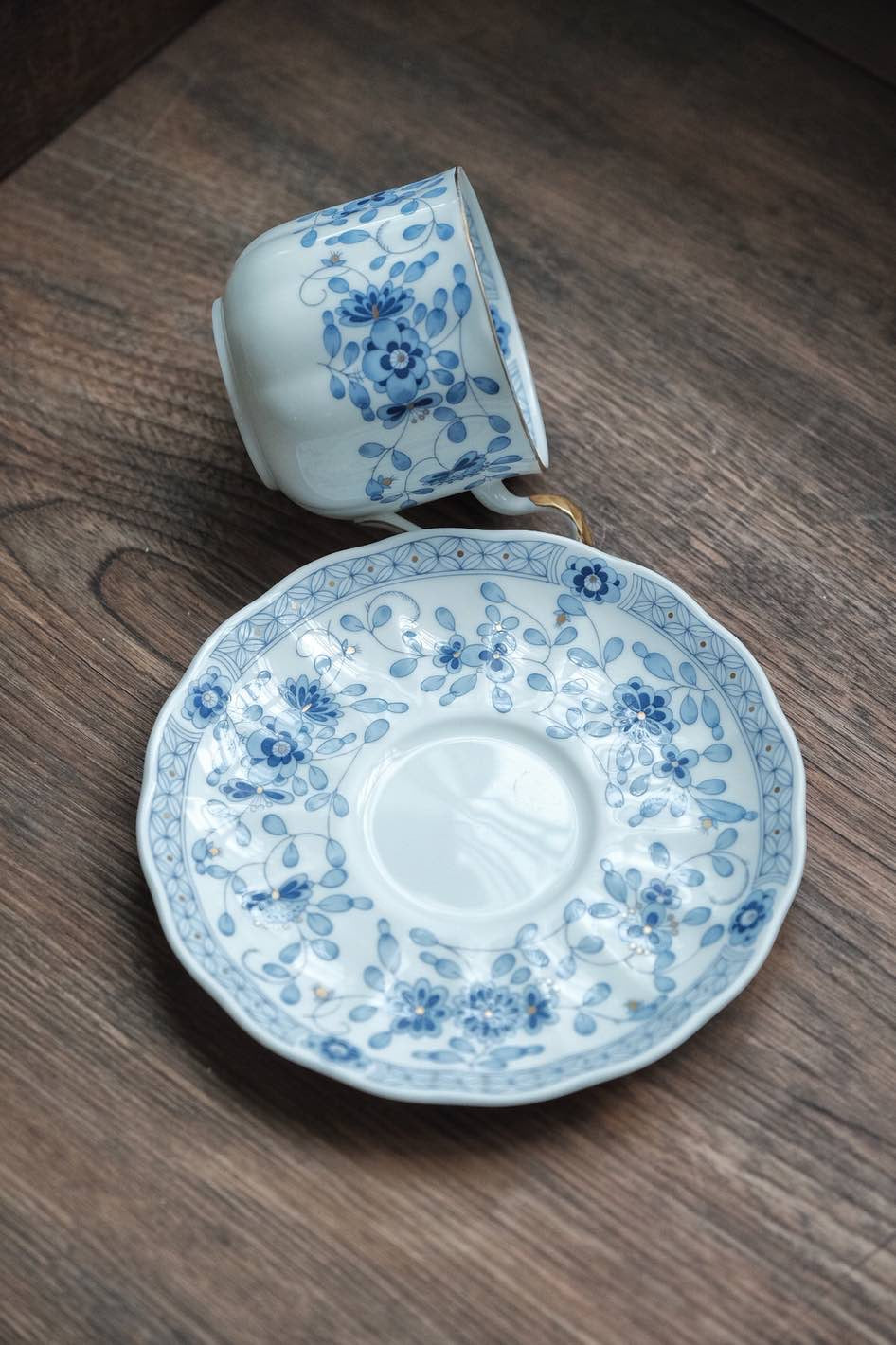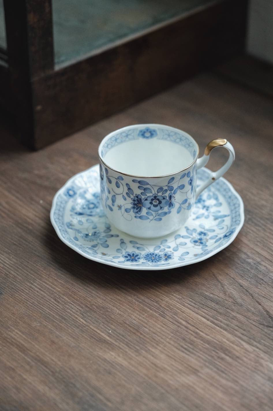 日本製嗚海NARUMI米蘭内繪青付花滿工描金骨瓷紅茶杯碟(240ml)