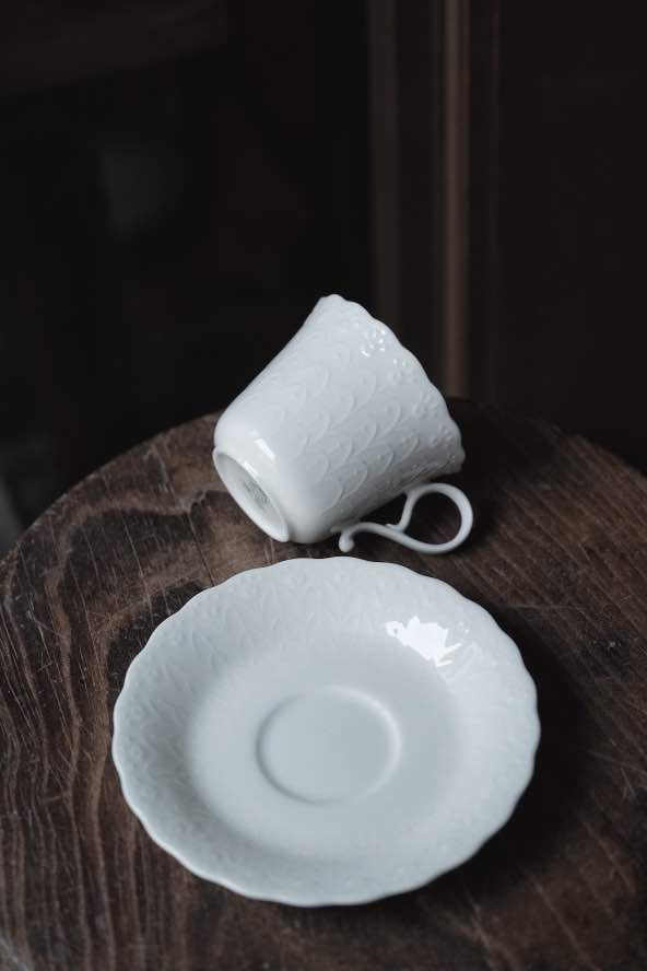 杯身杯碟淺浮雕,花朵清新優雅