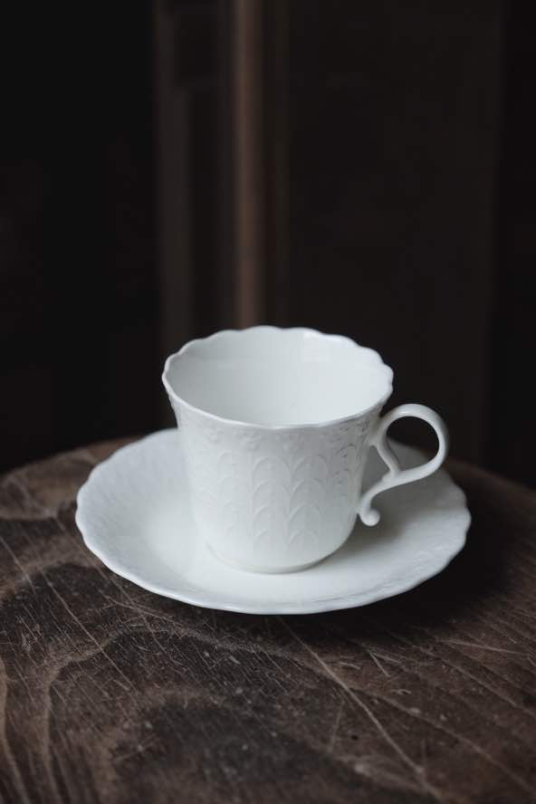 日本製嗚海NARUMI花浮雕骨瓷杯碟(150ml) 一杯一碟