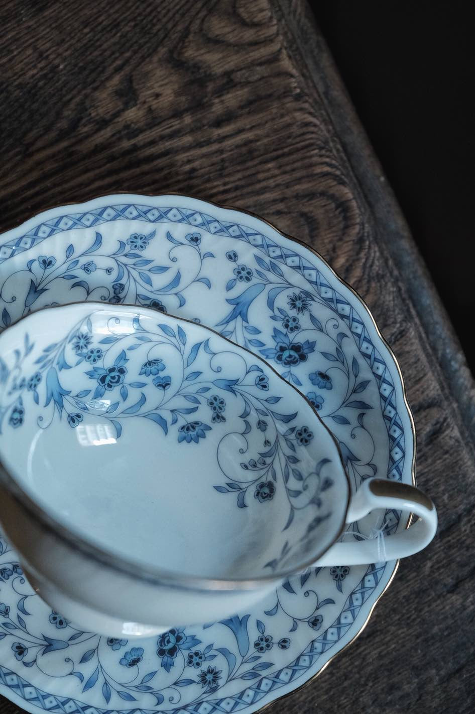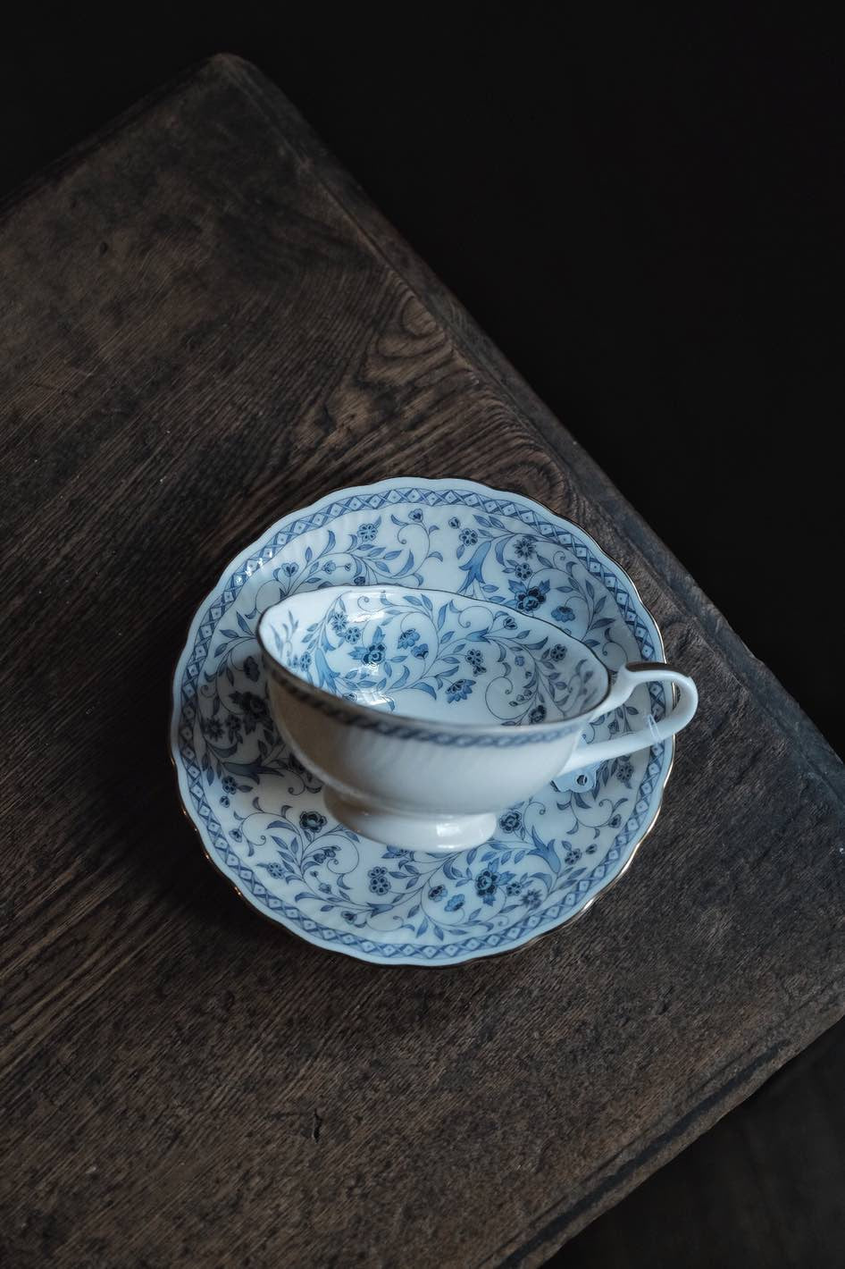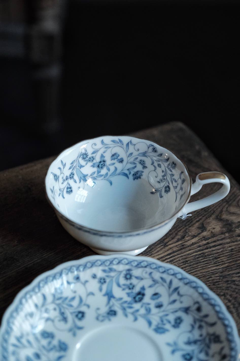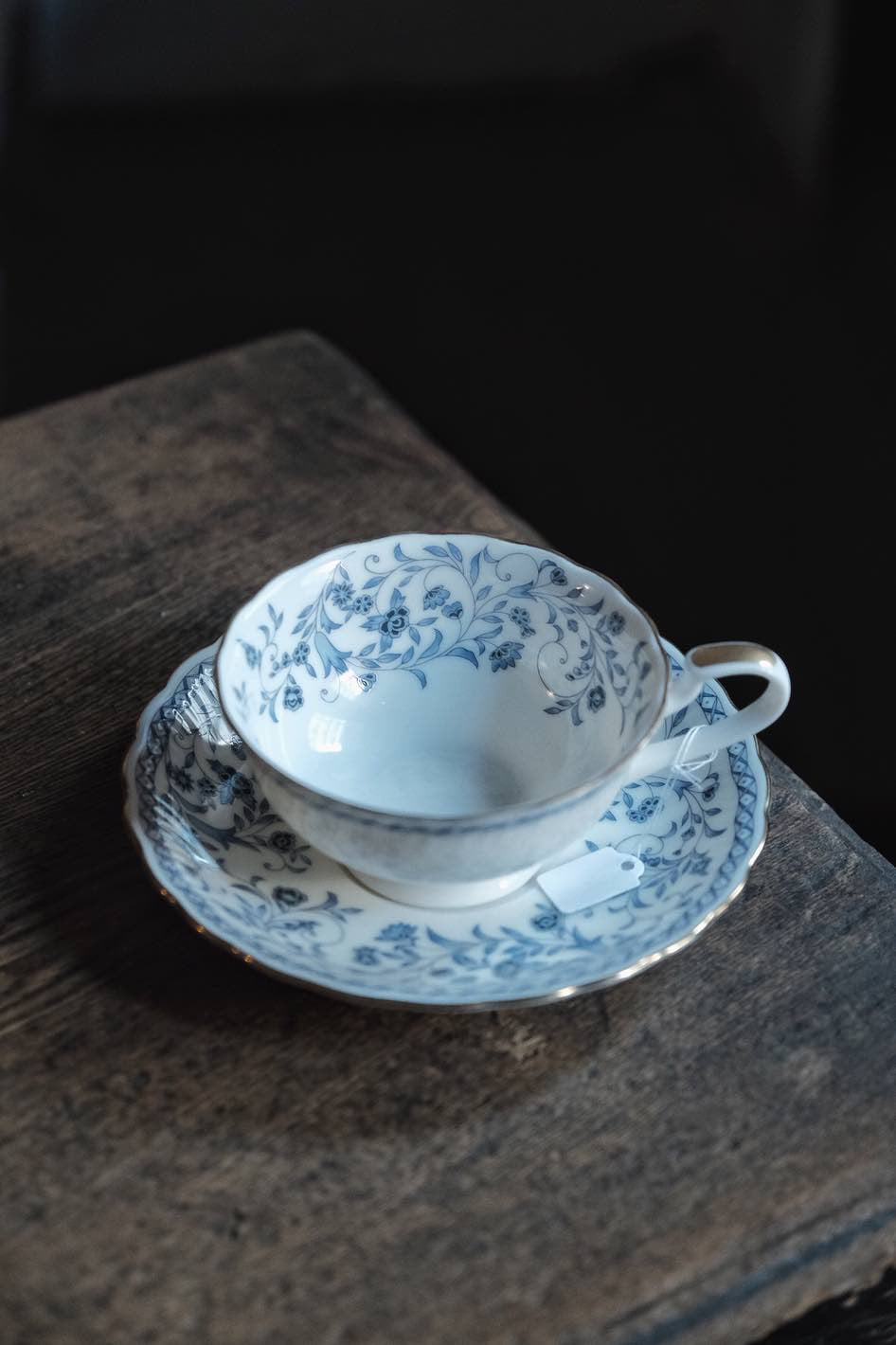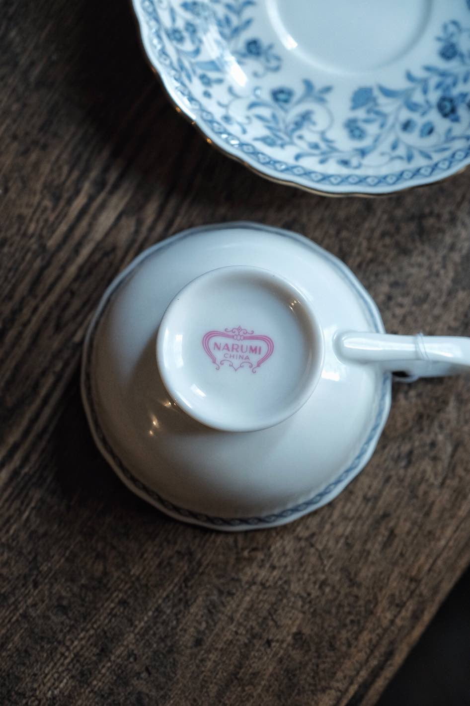 日本製嗚海NARUMI 內繪青花唐草型骨瓷闊口茶杯(220ml)