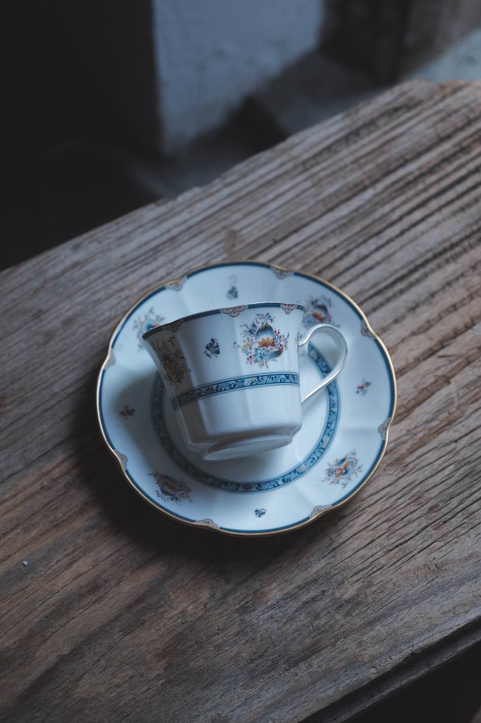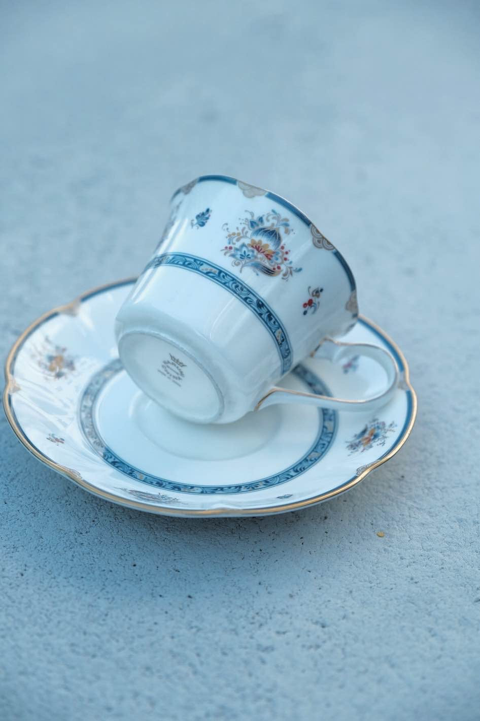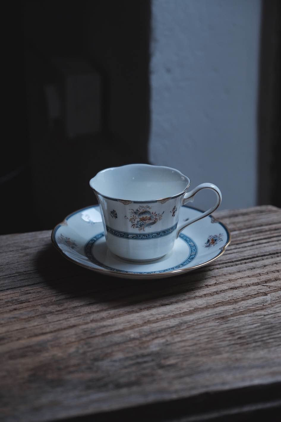 日本製嗚海NARUMI 唐草花卉西洋描金骨瓷杯連碟(200ml)