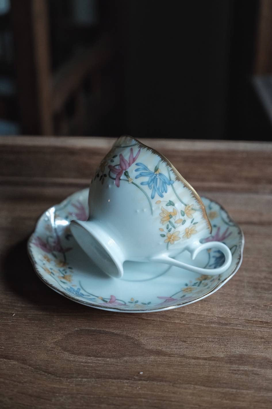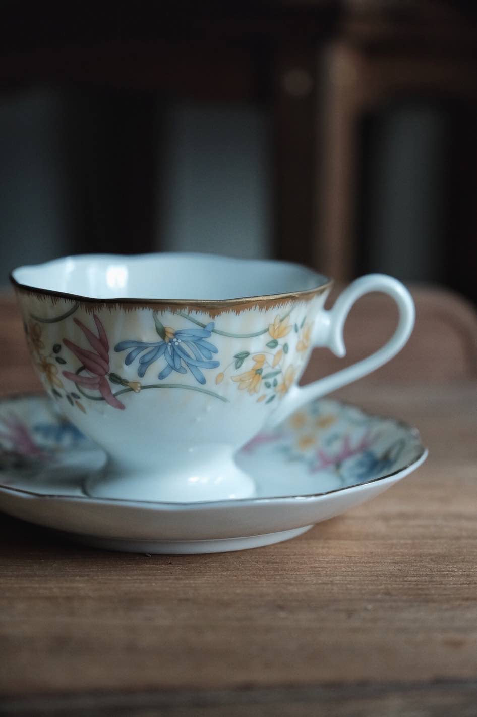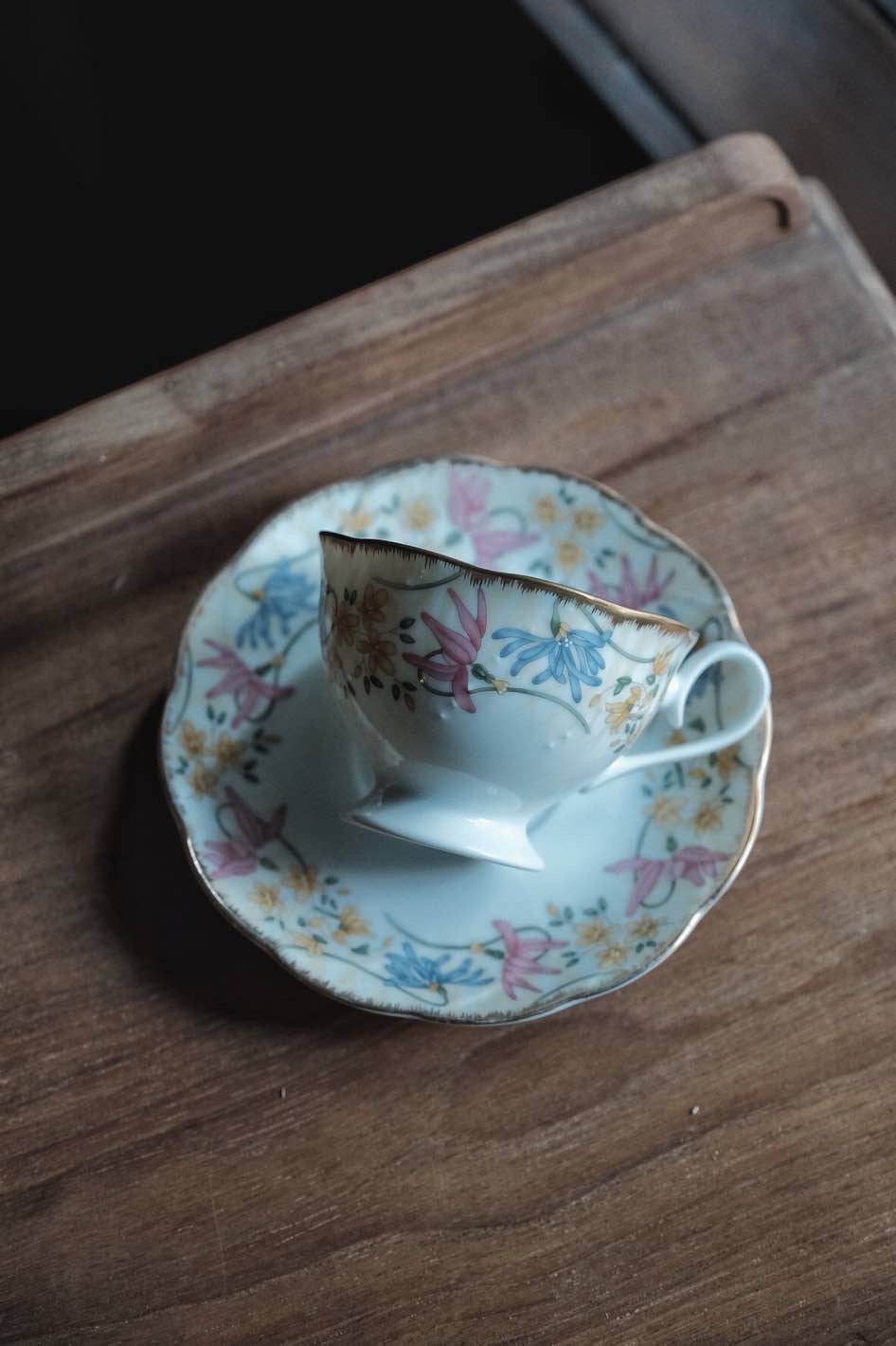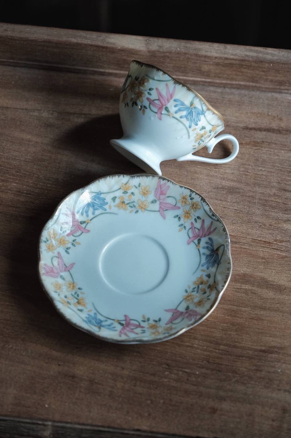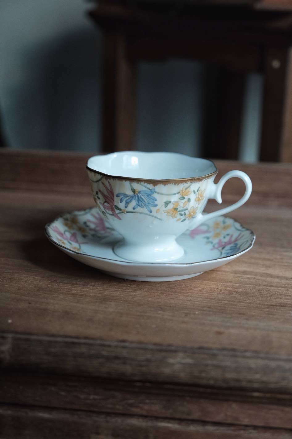 日本製嗚海NARUMI 花卉浮雕花瓣描金高足骨瓷茶杯(200ml)