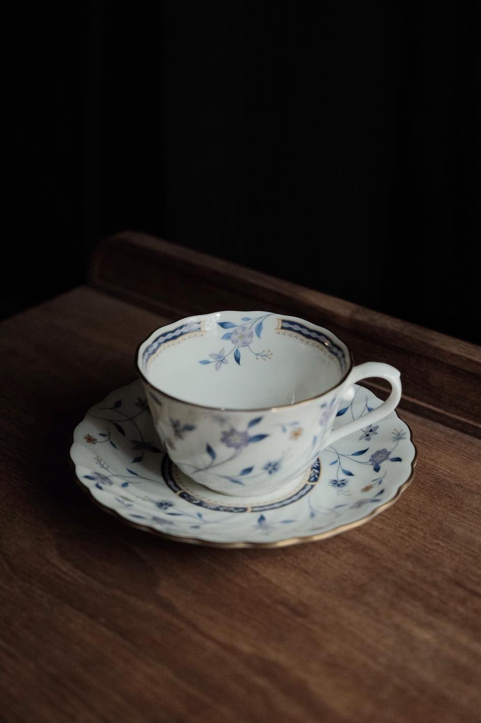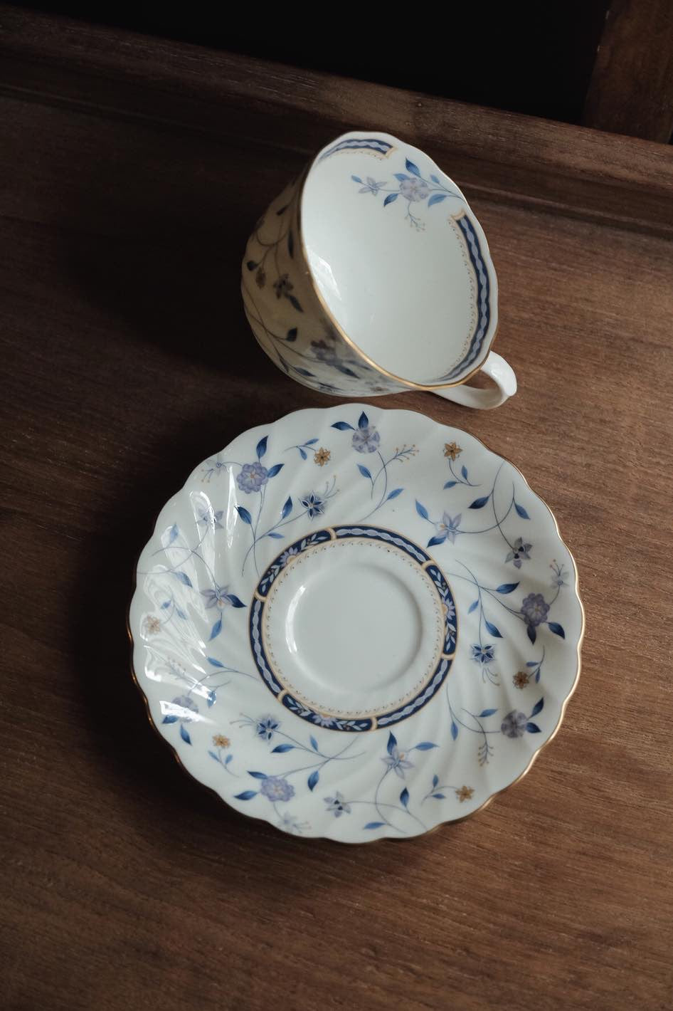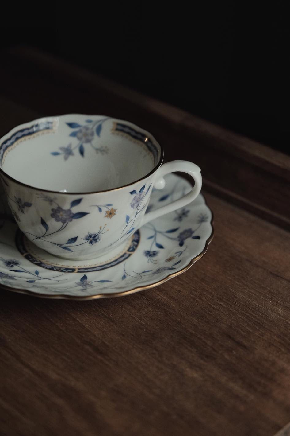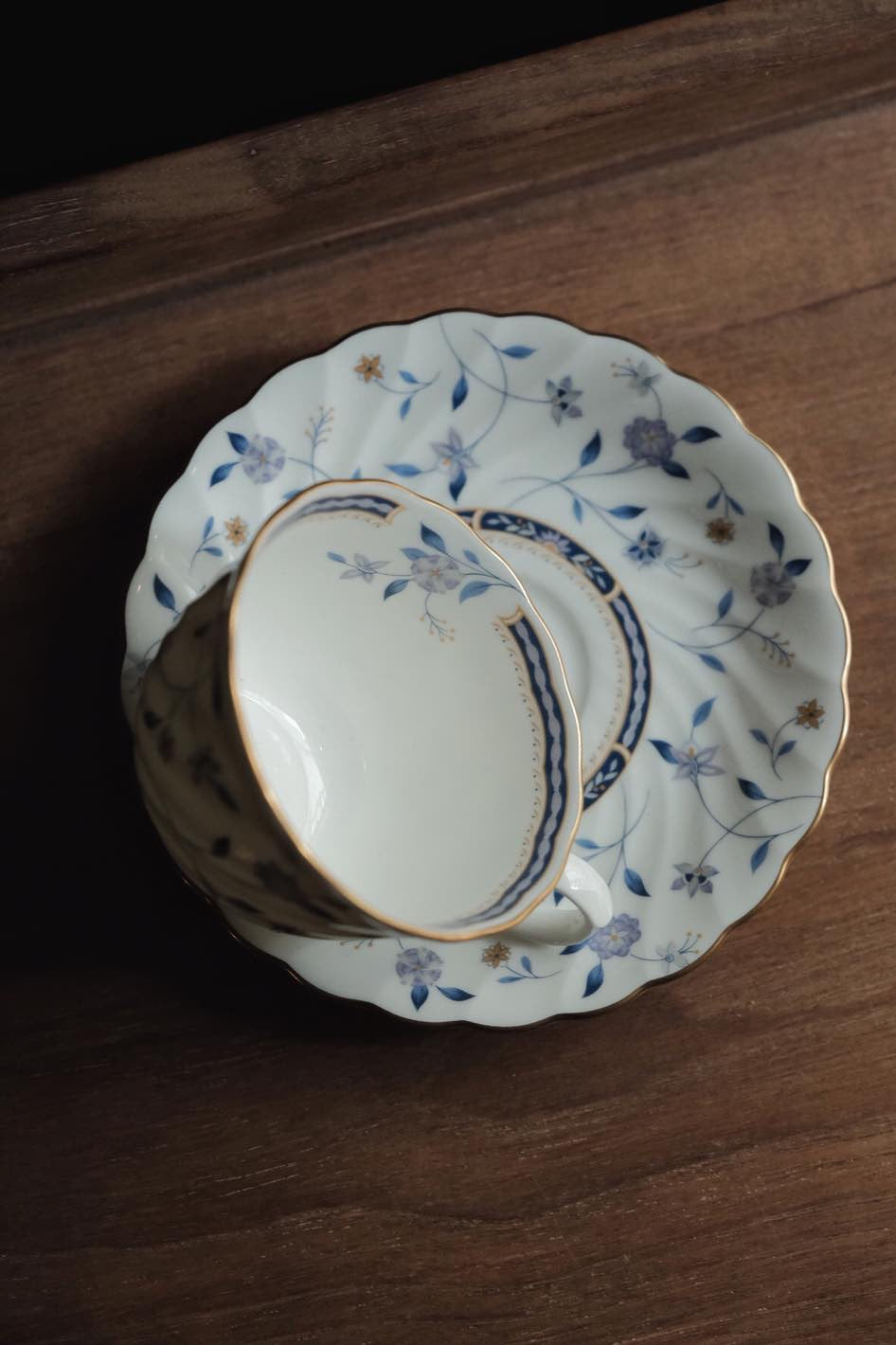 日本製嗚海NARUMI 藍調描金浮雕青花內繪骨瓷茶杯(210ml)