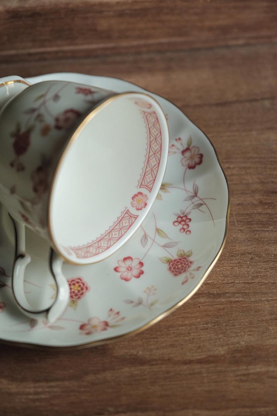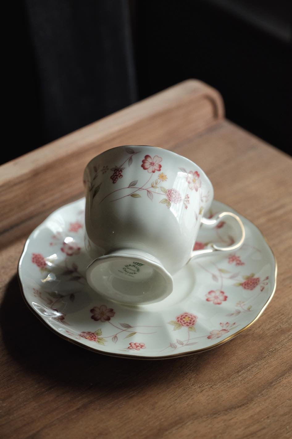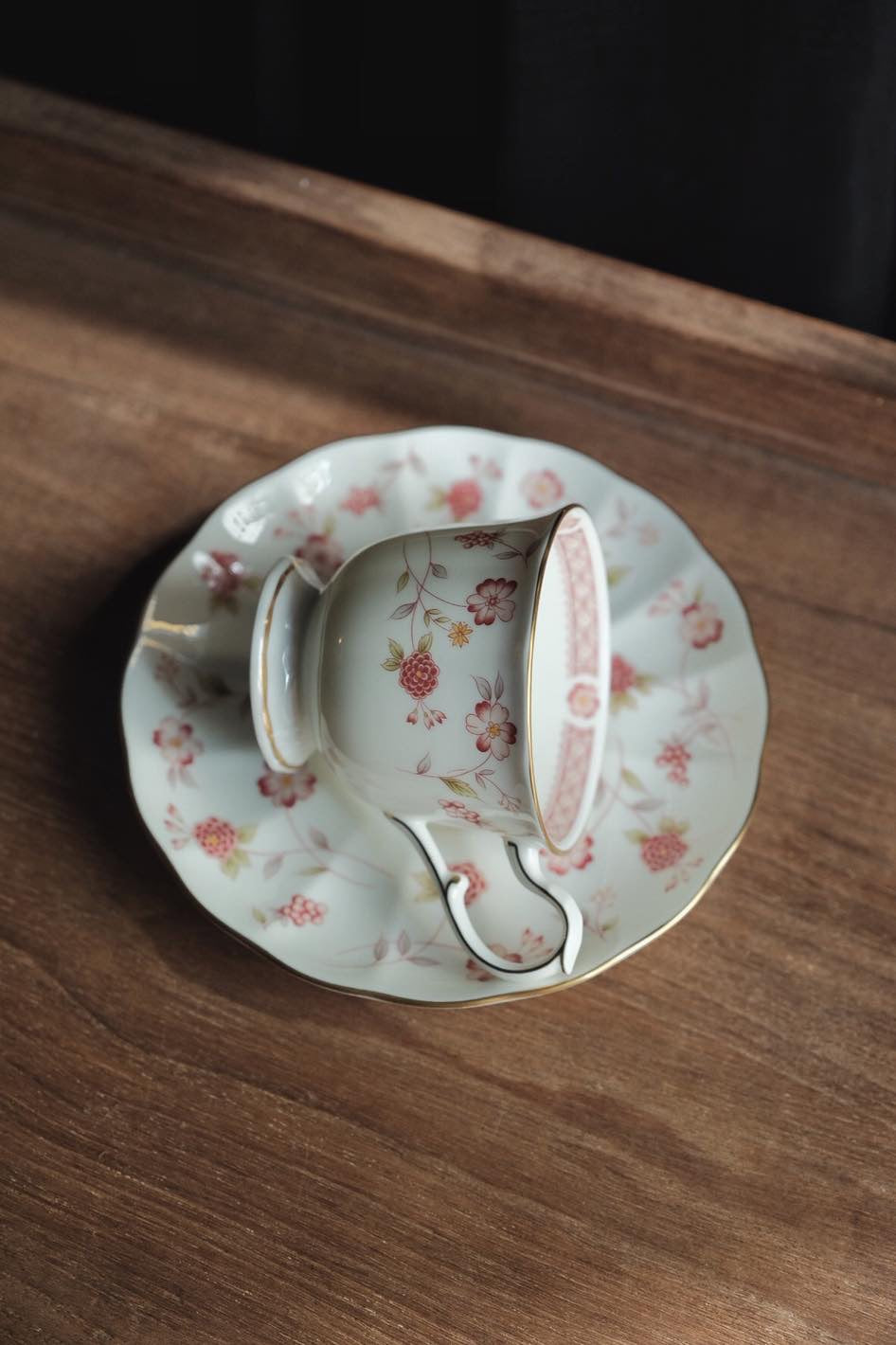 日本製嗚海NARUMI 赤調描金葡萄花內繪骨瓷茶杯(180ml)