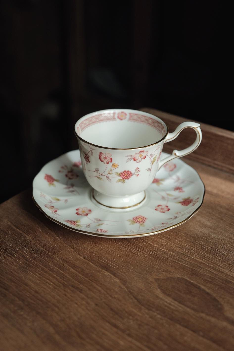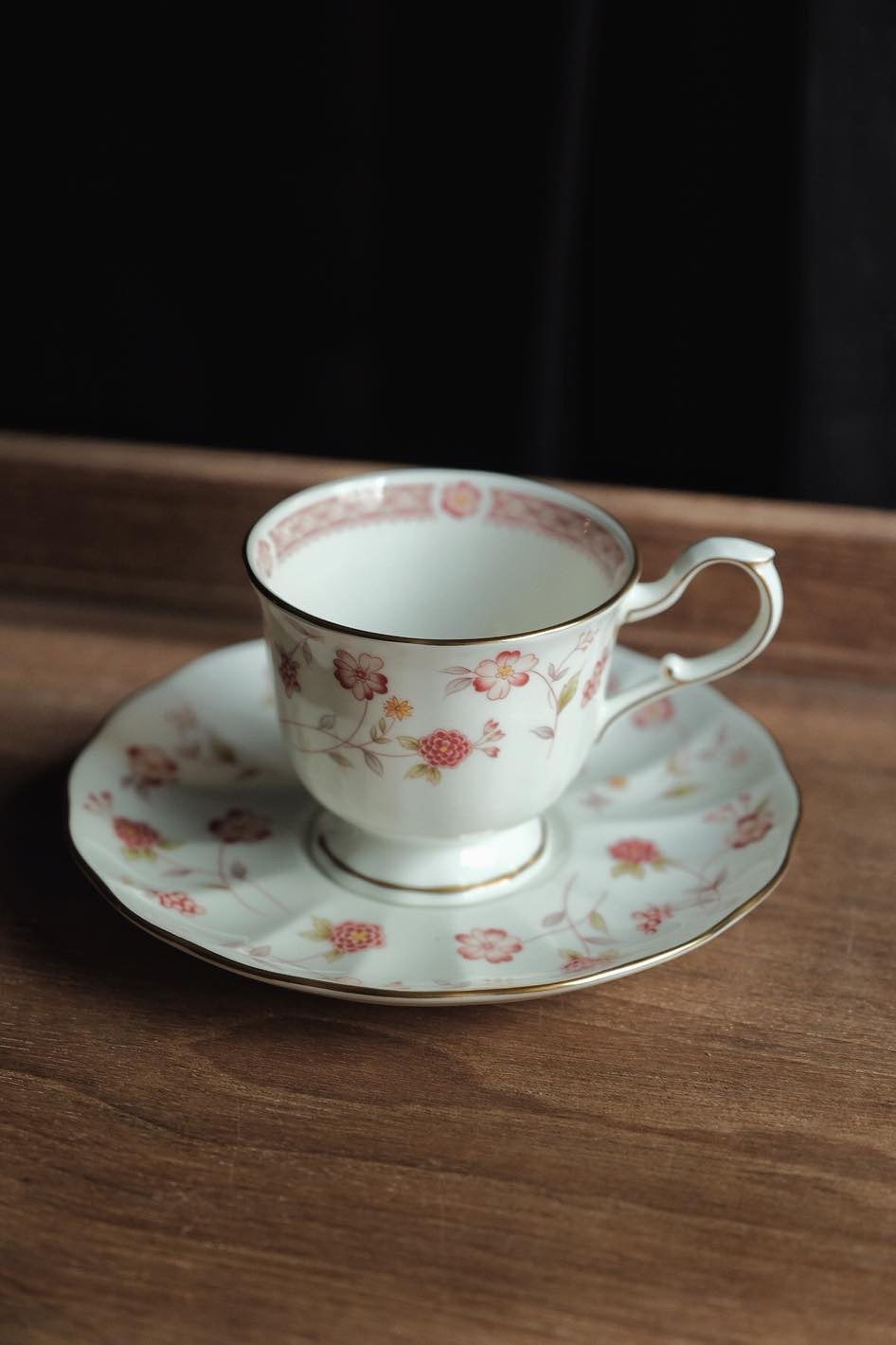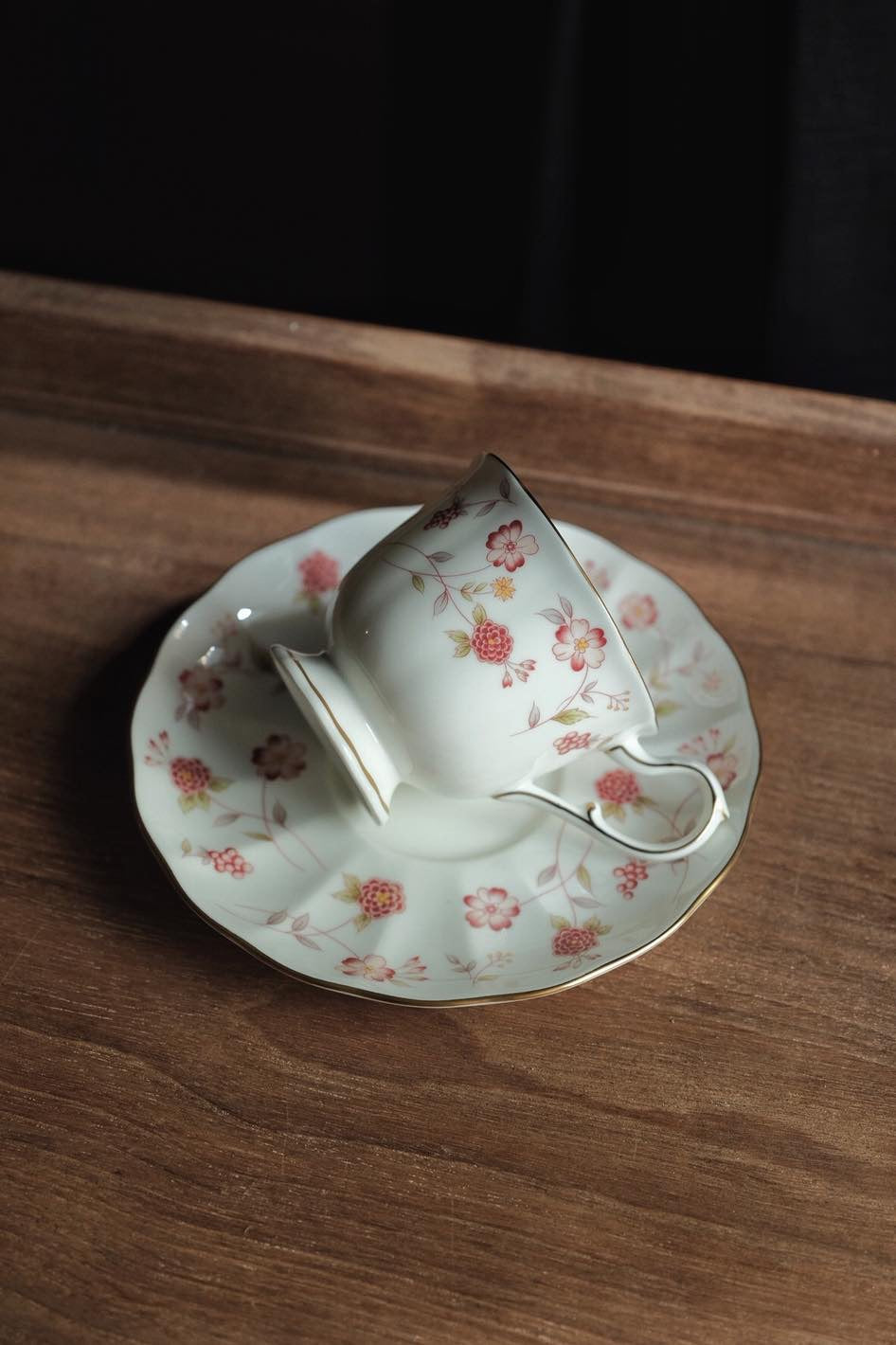日本製嗚海NARUMI 赤調描金葡萄花內繪骨瓷茶杯(180ml)