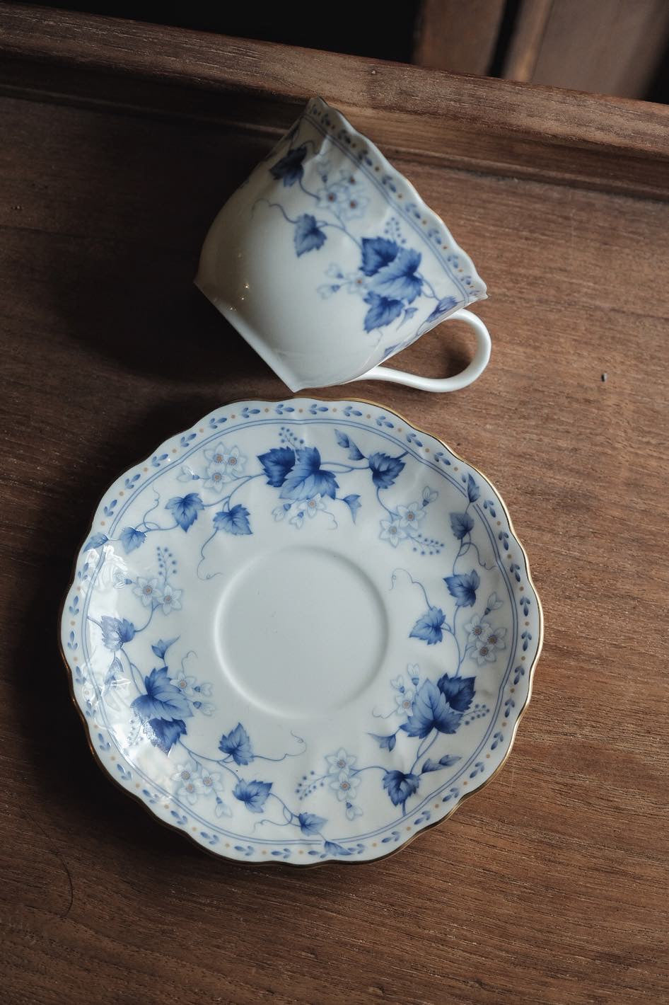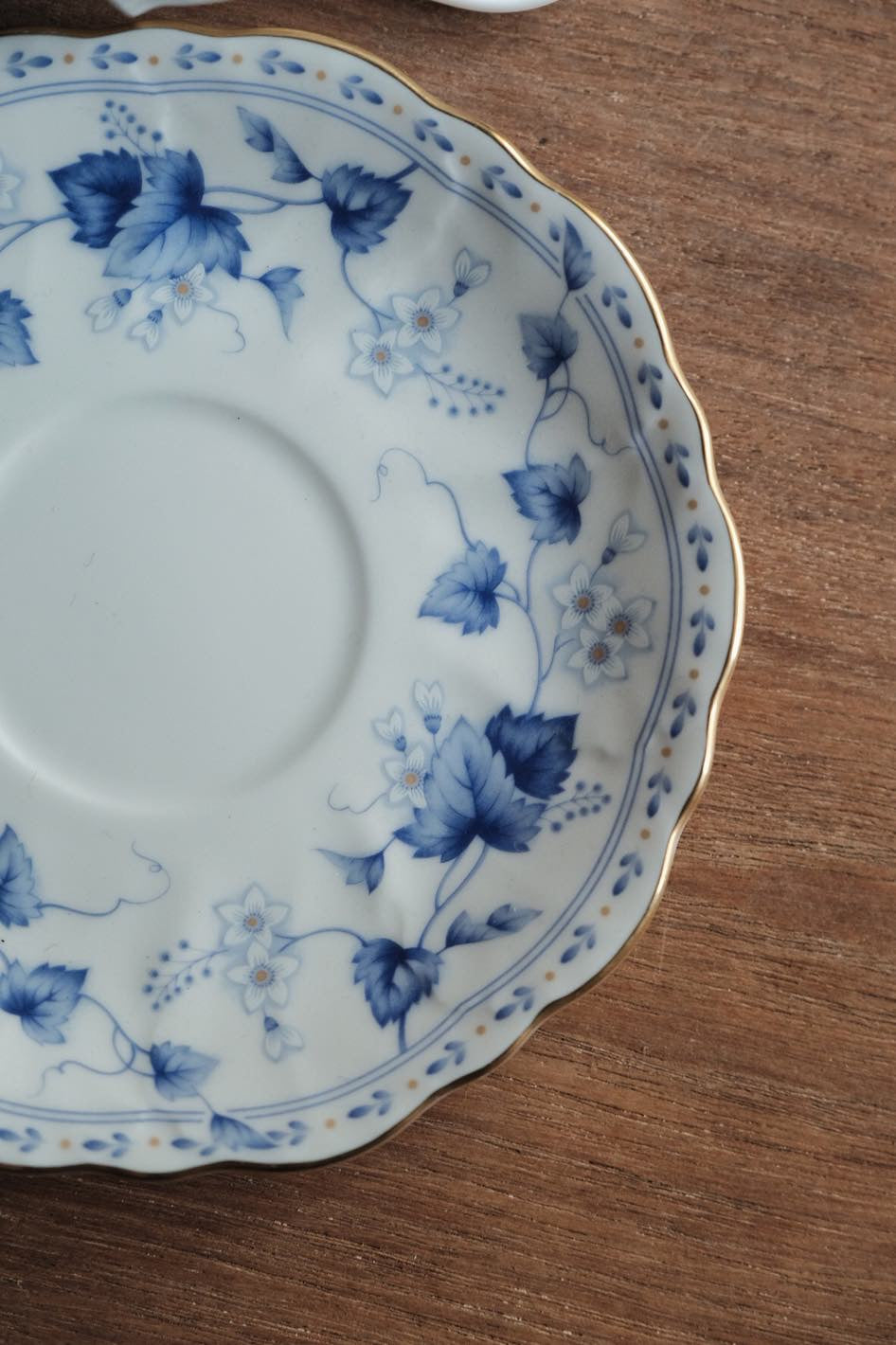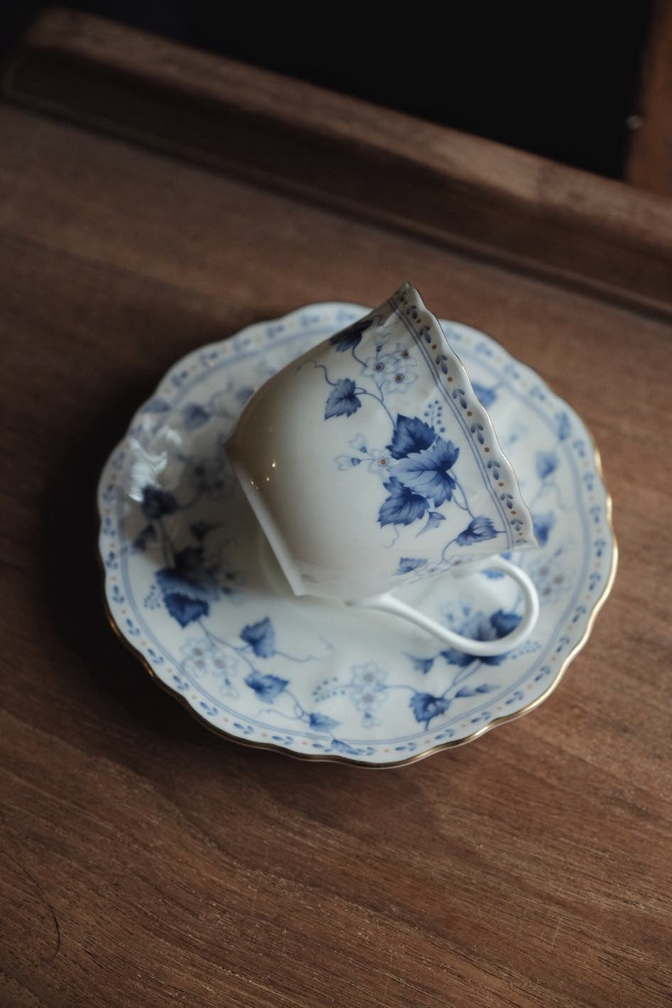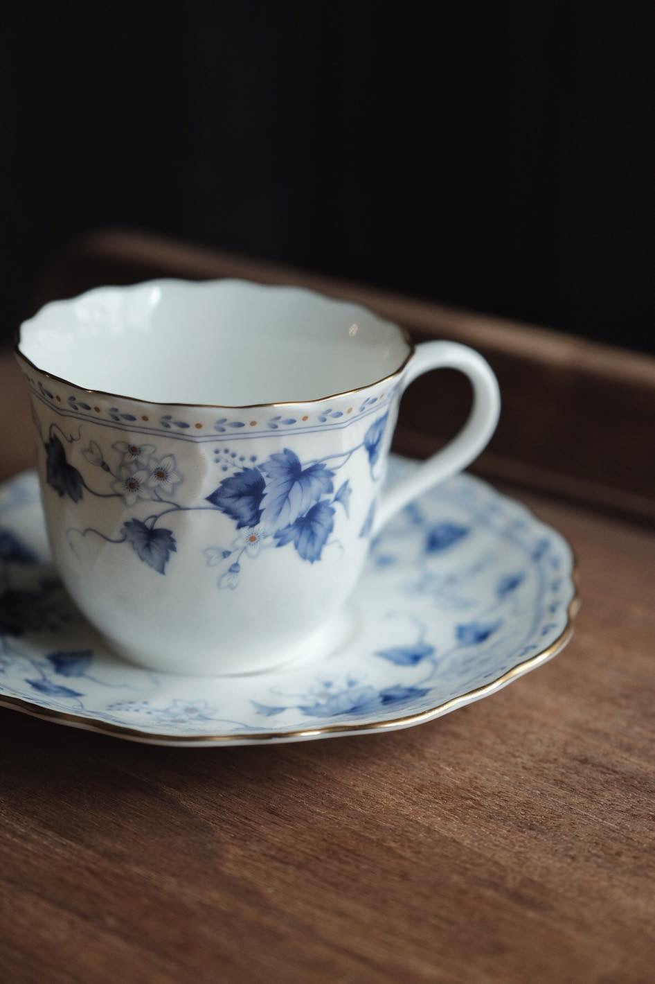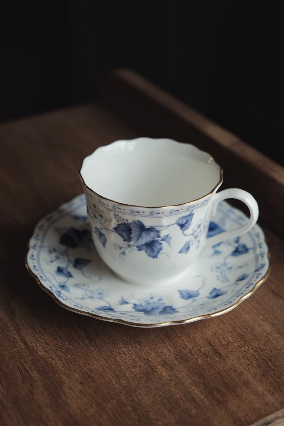 日本製嗚海NARUMI 鈴蘭描金浮雕青花骨瓷茶杯(200ml)