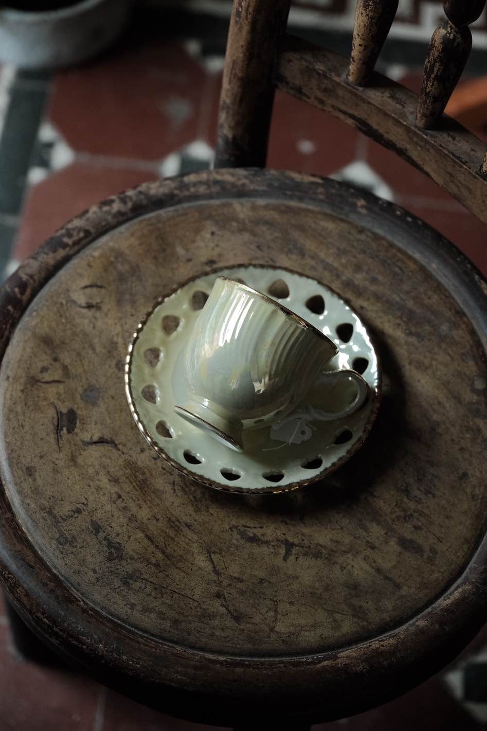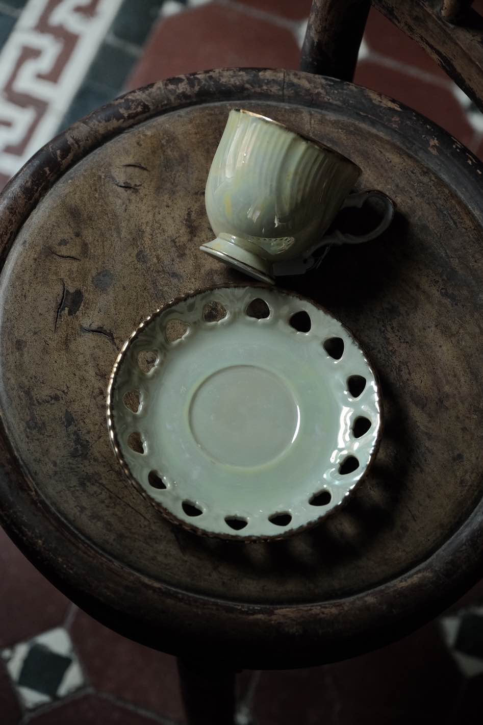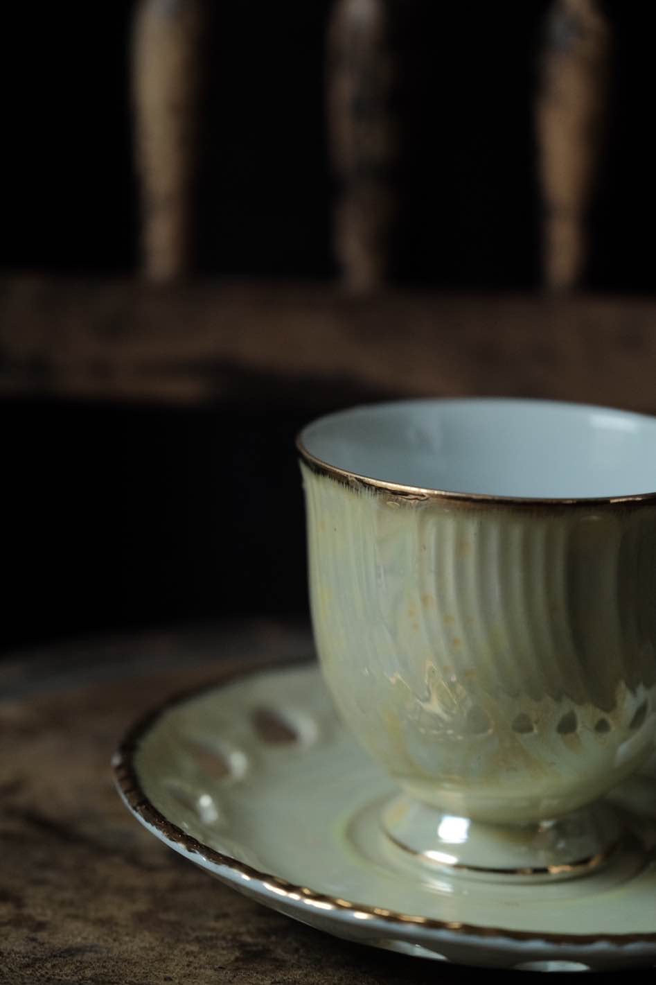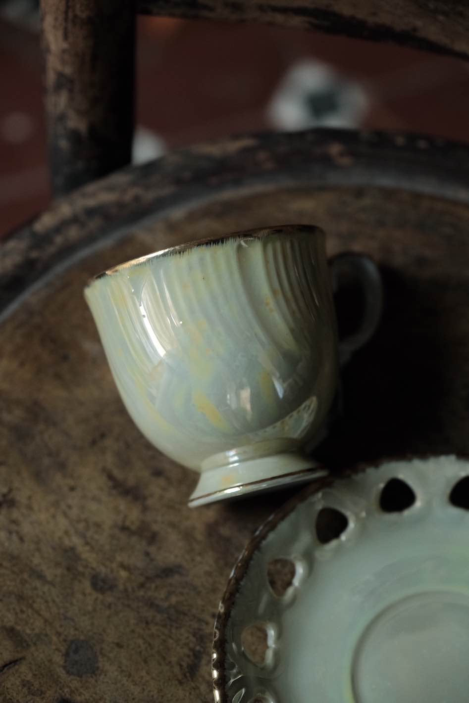 日本製·奶黃高身珍珠貝殼釉咖啡杯(210ml)
