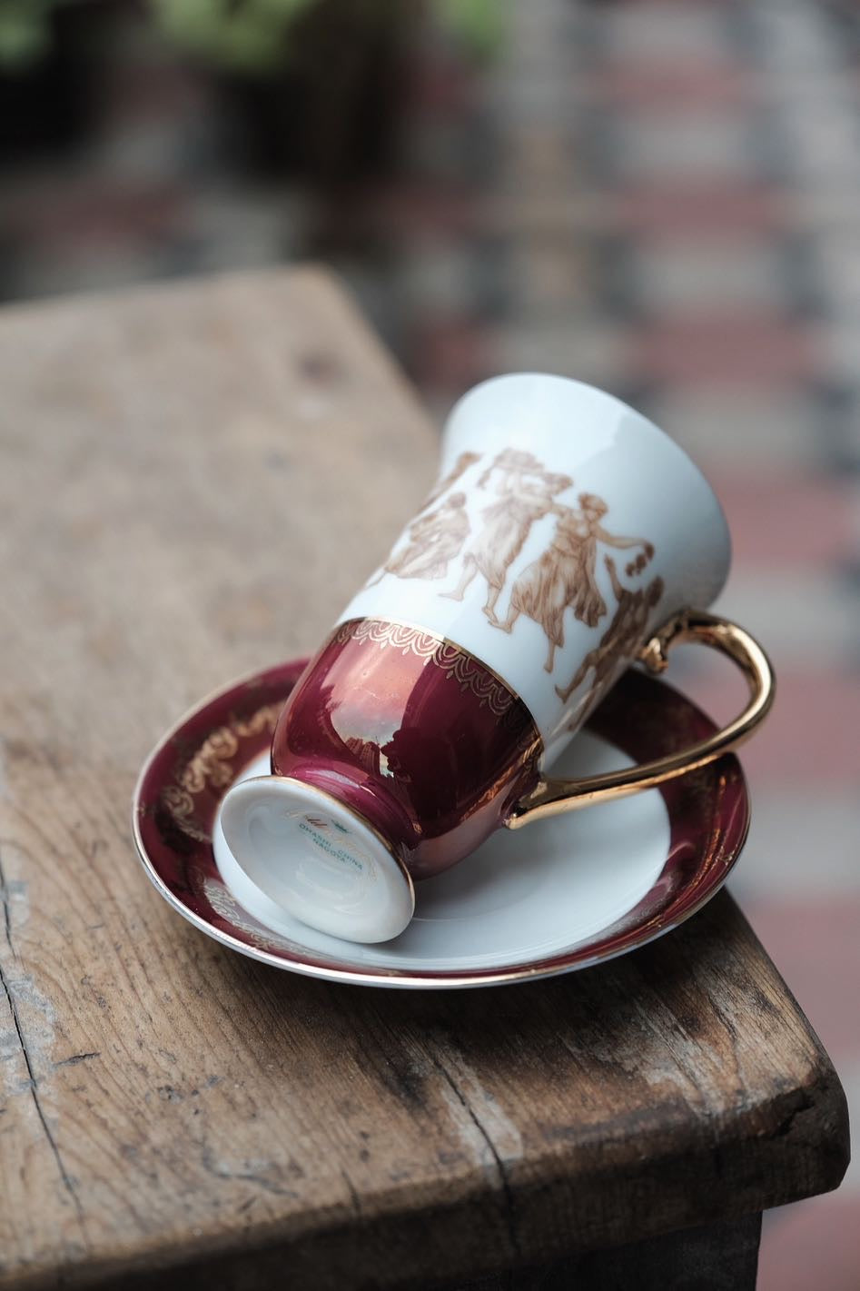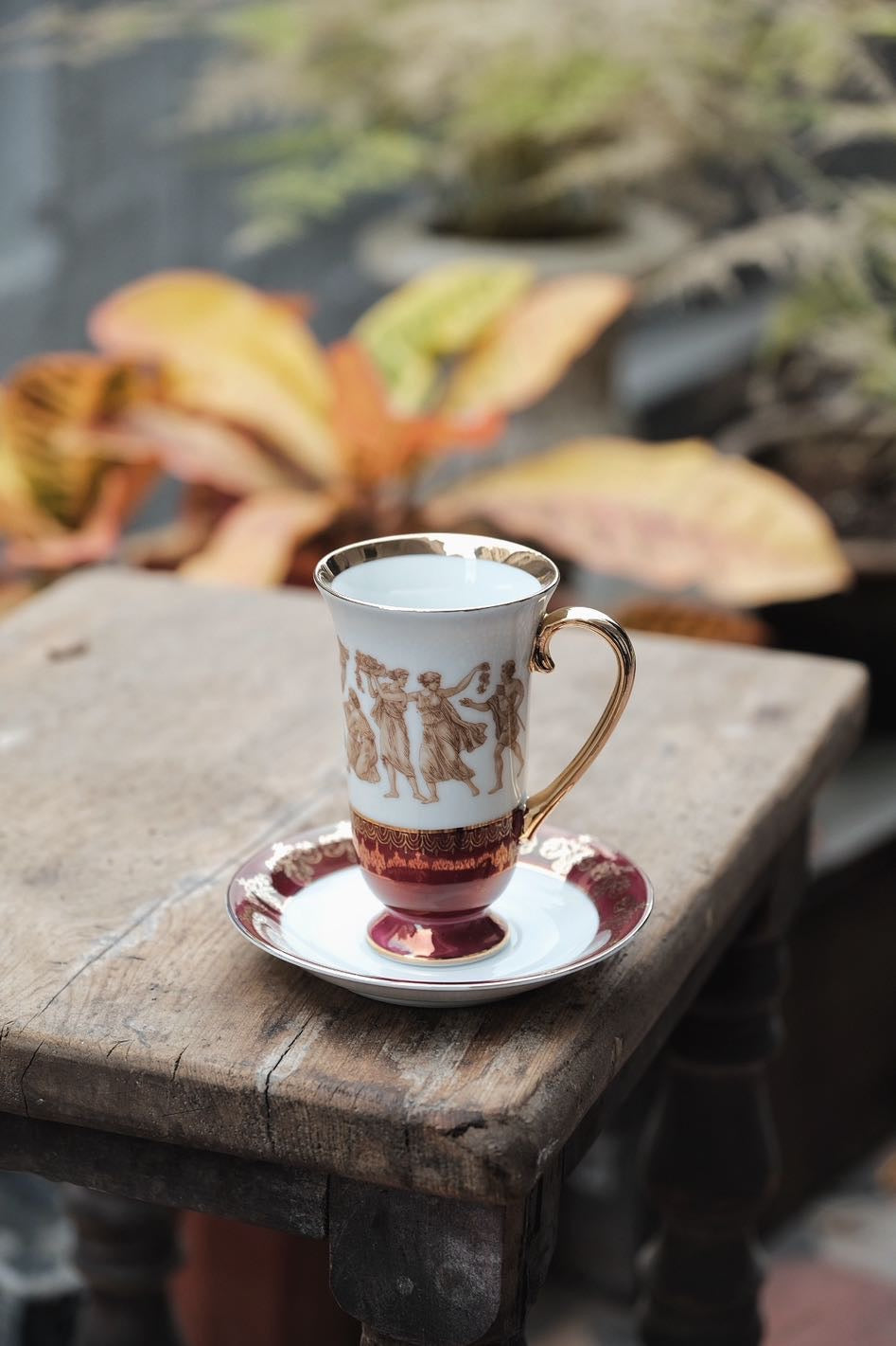 咖啡杯把手套有精緻描金,浮雕圖紋立體