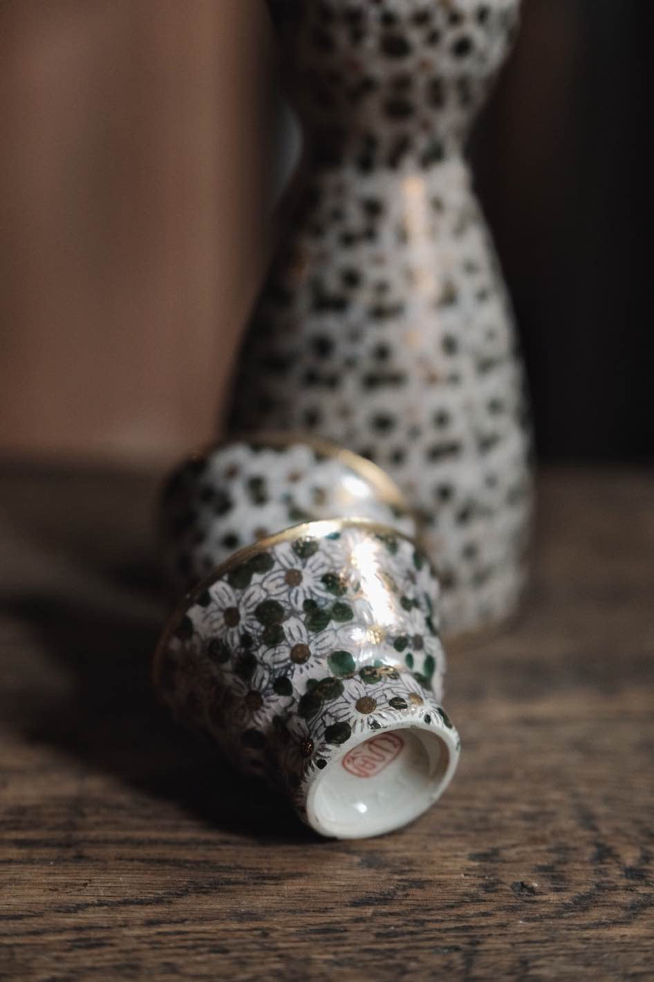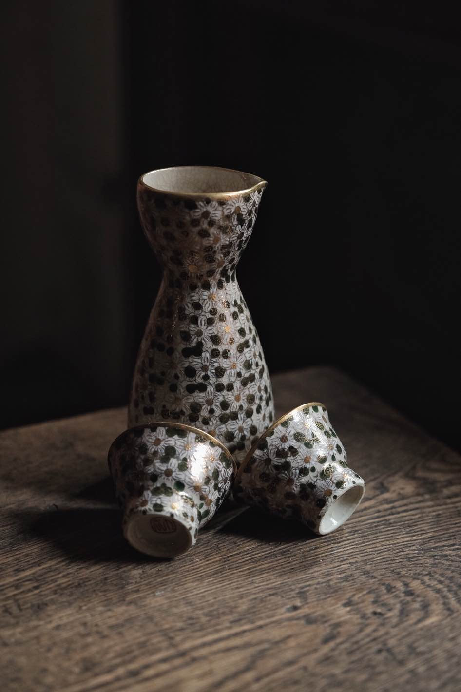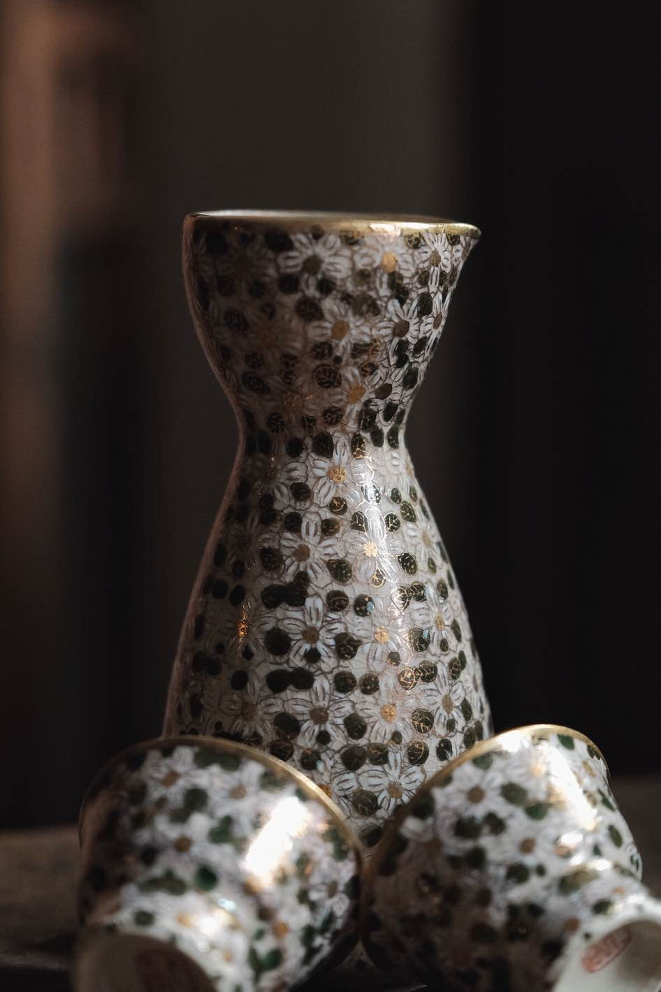 日本製·日本老九谷燒百花不落地點白粒清酒杯連酒瓶