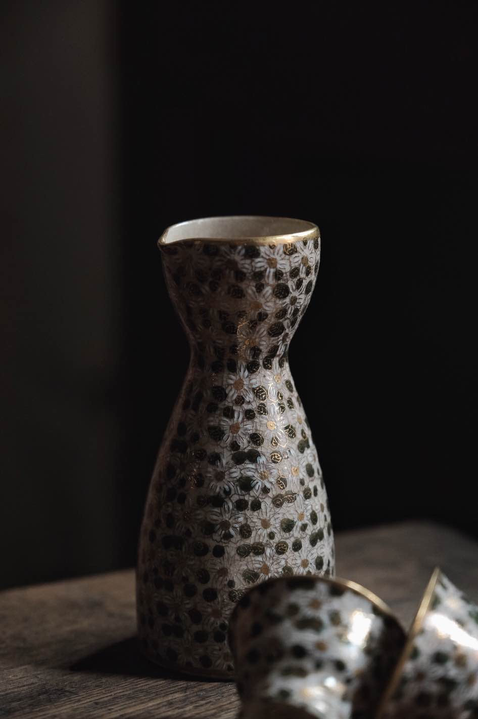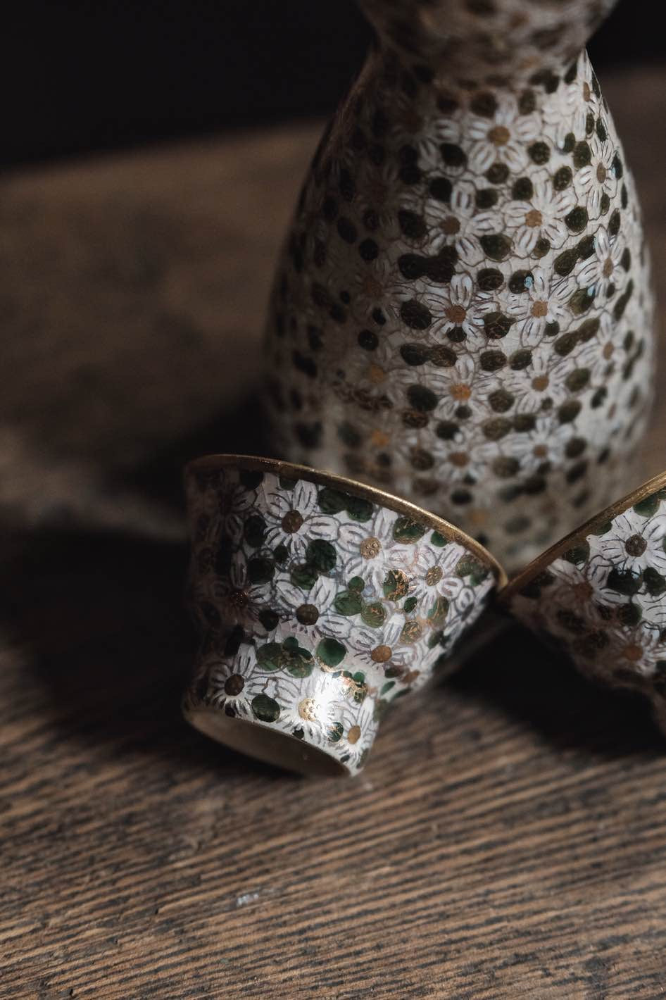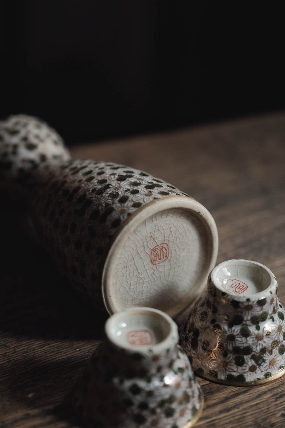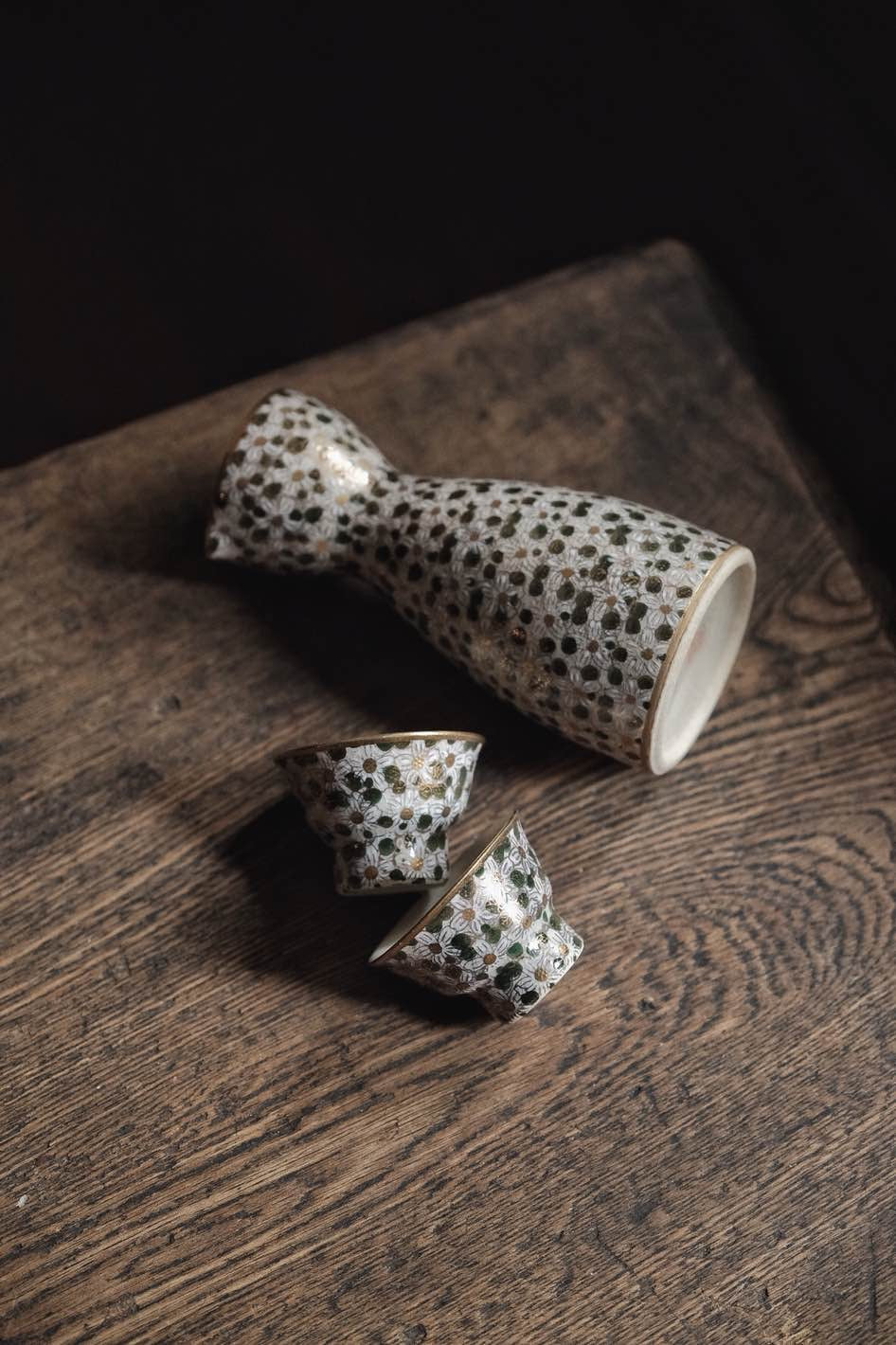 日本製·日本老九谷燒百花不落地點白粒清酒杯連酒瓶