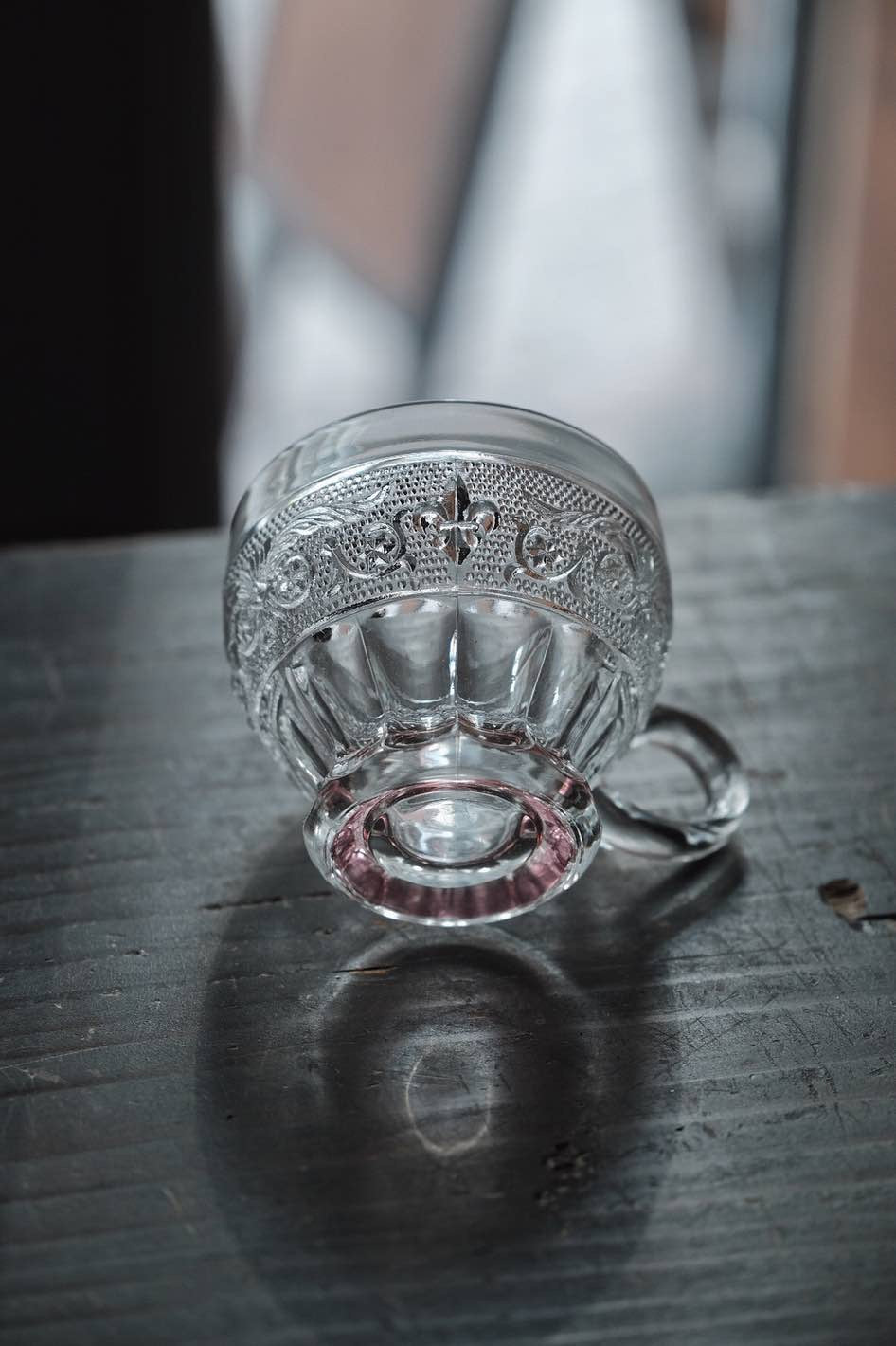 昭和鳶尾花满浮雕硝子咖啡杯碟
