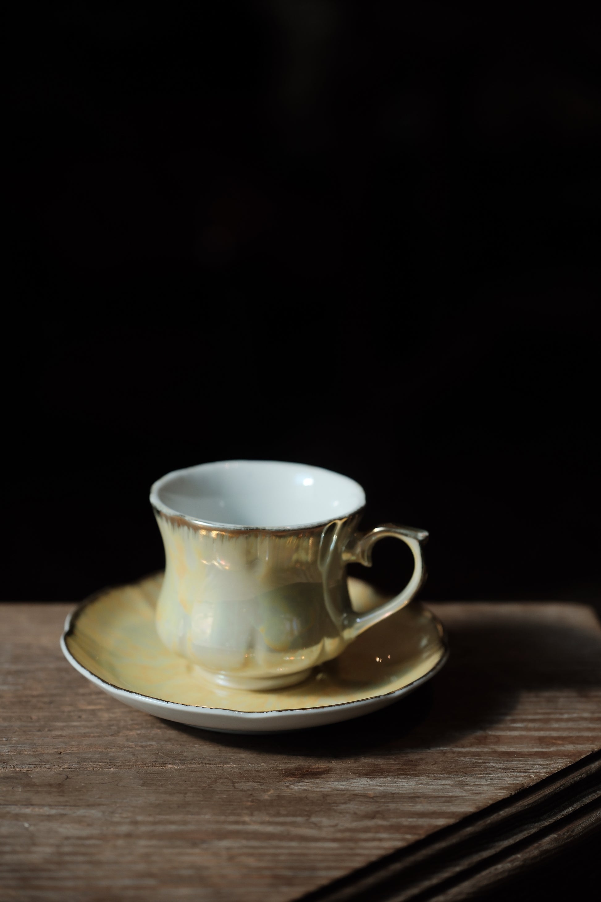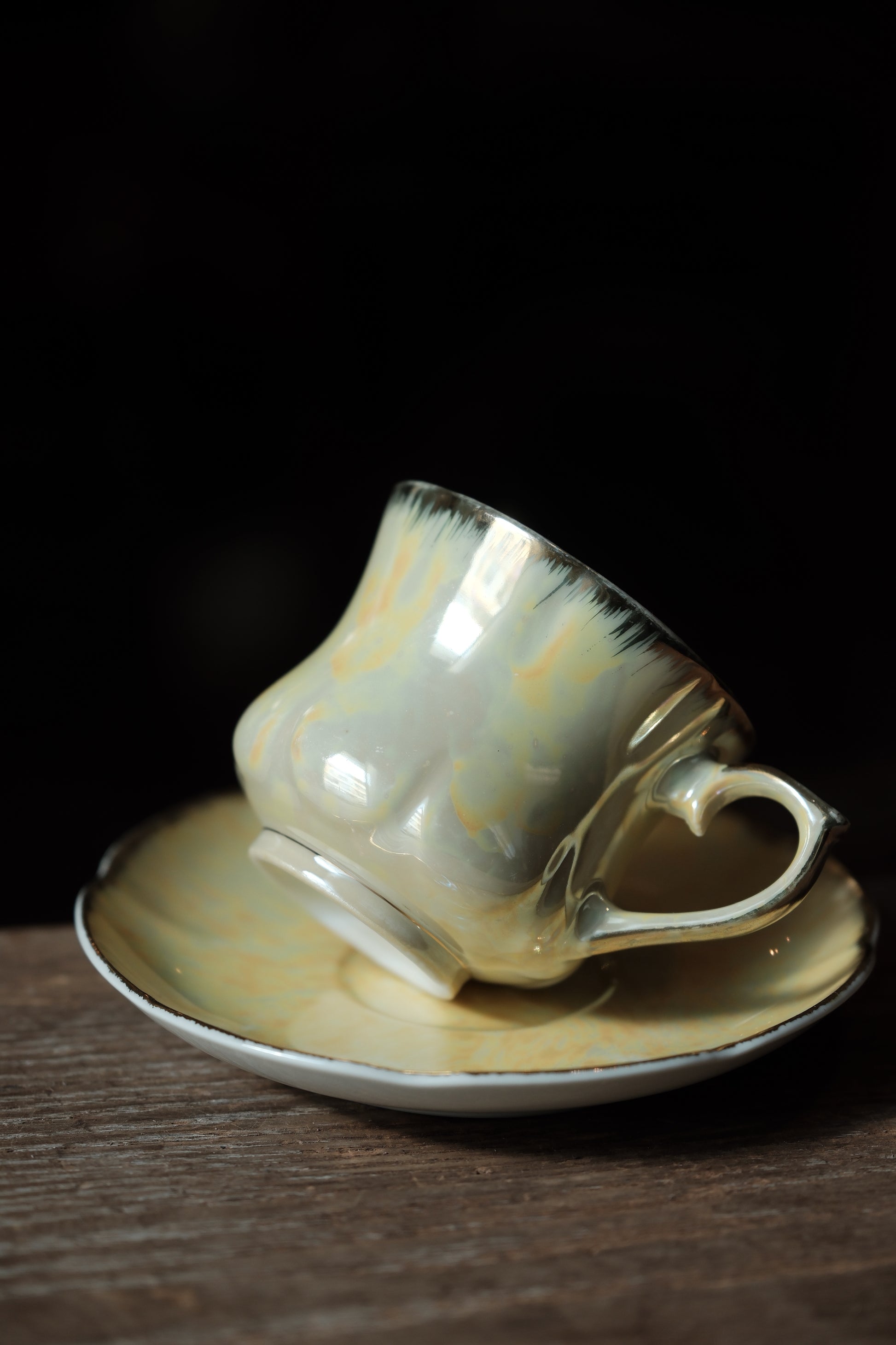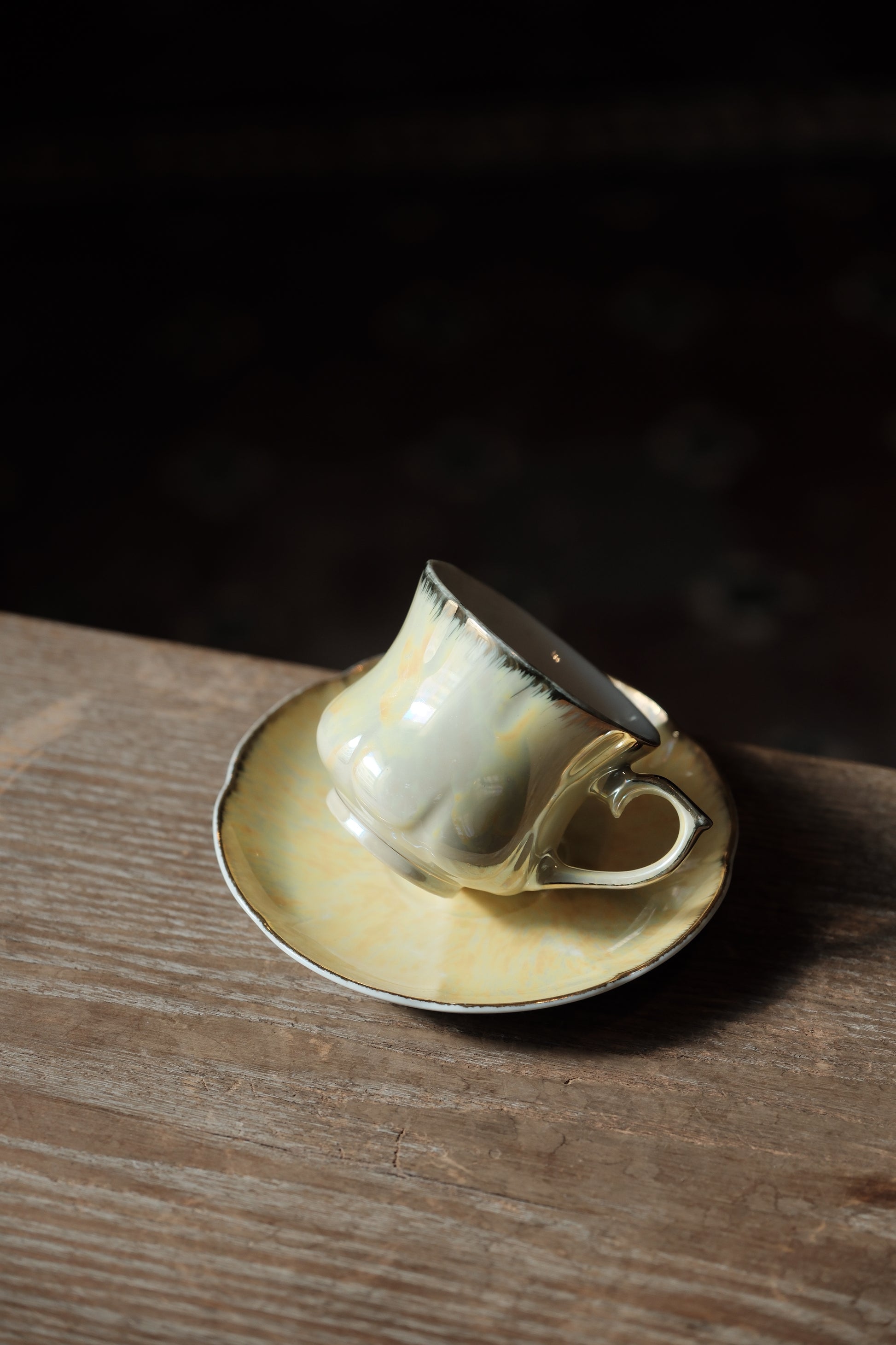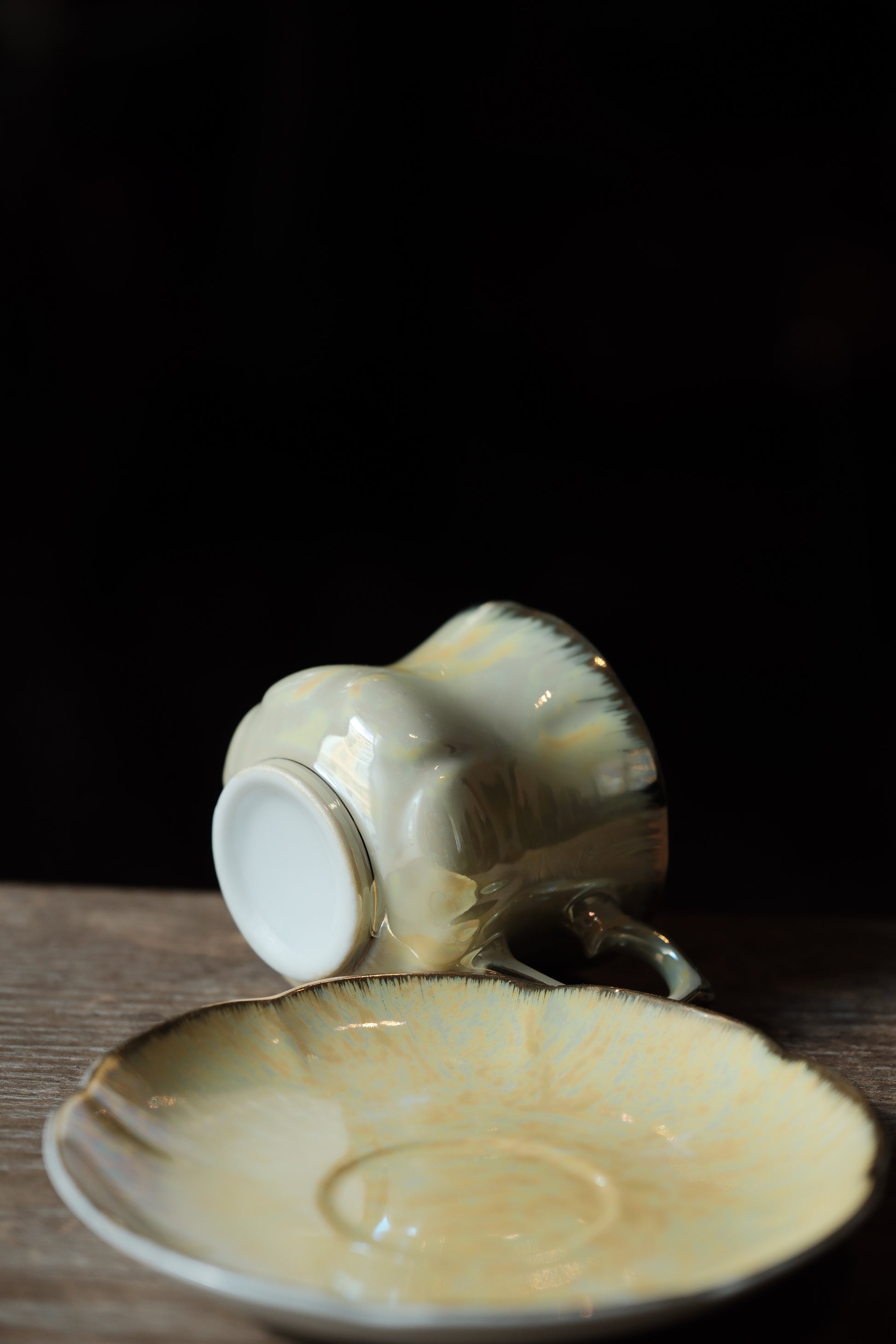 日本製·淡奶黃束腰珍珠貝殼釉咖啡杯(190ml)