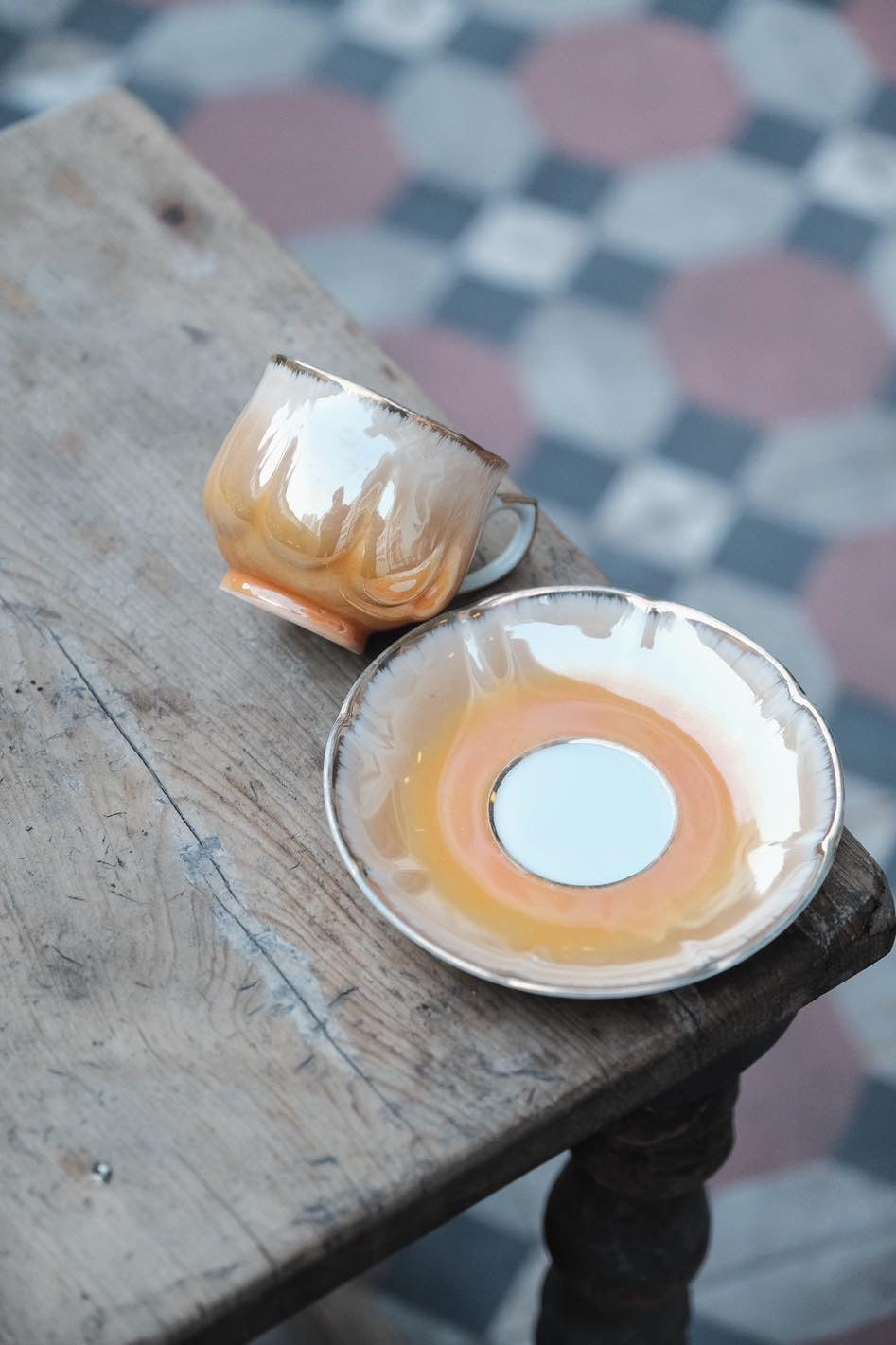 日本製·淡漸橙火紅珍珠釉咖啡杯(150ml)