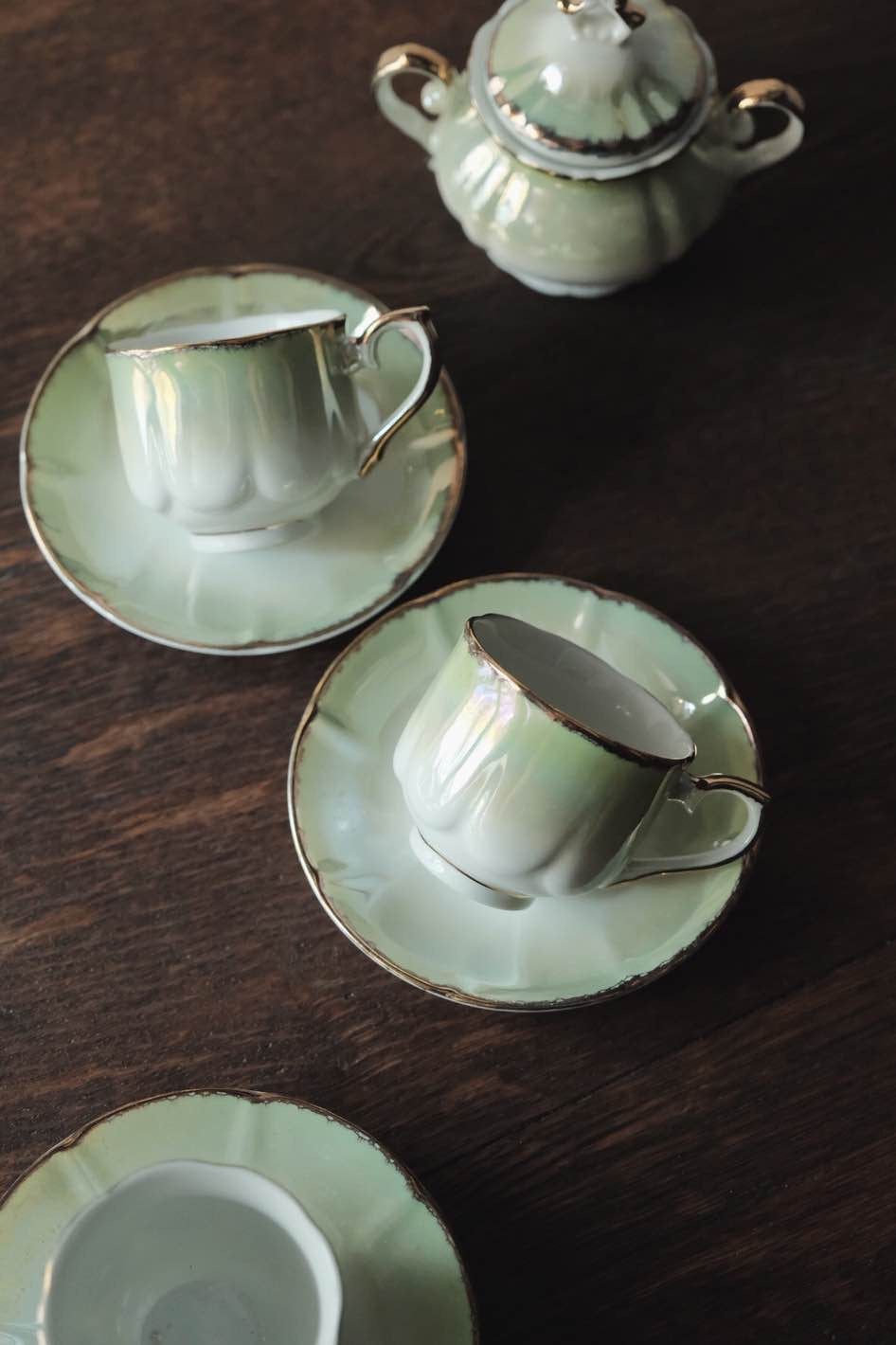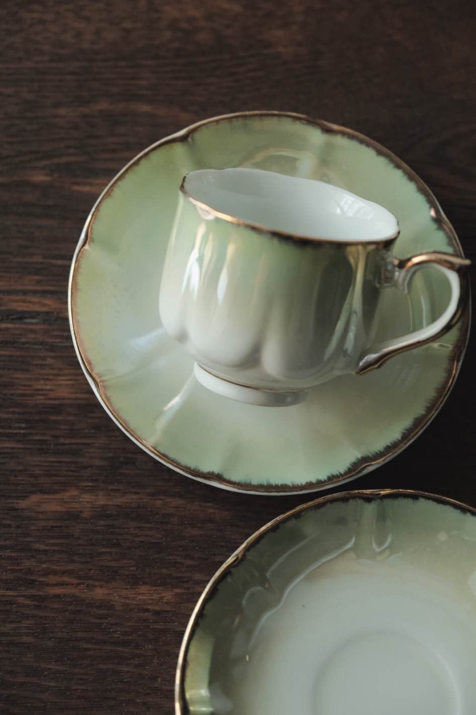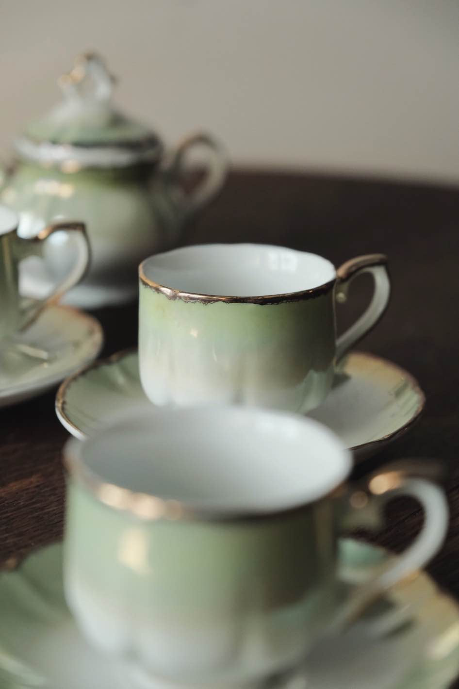 日本製·淡漸蘋果綠珍珠釉咖啡杯