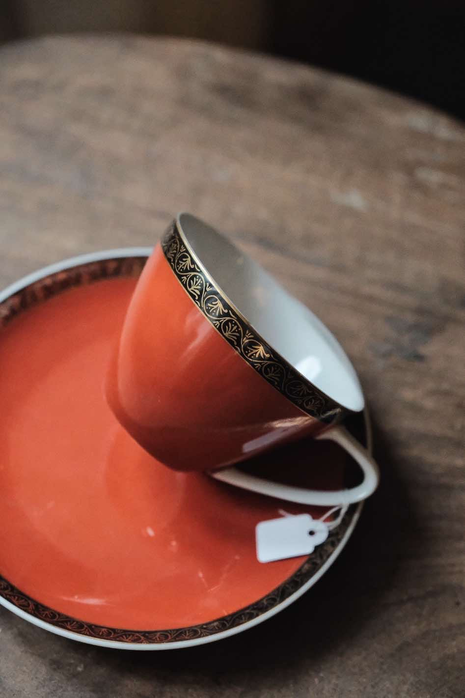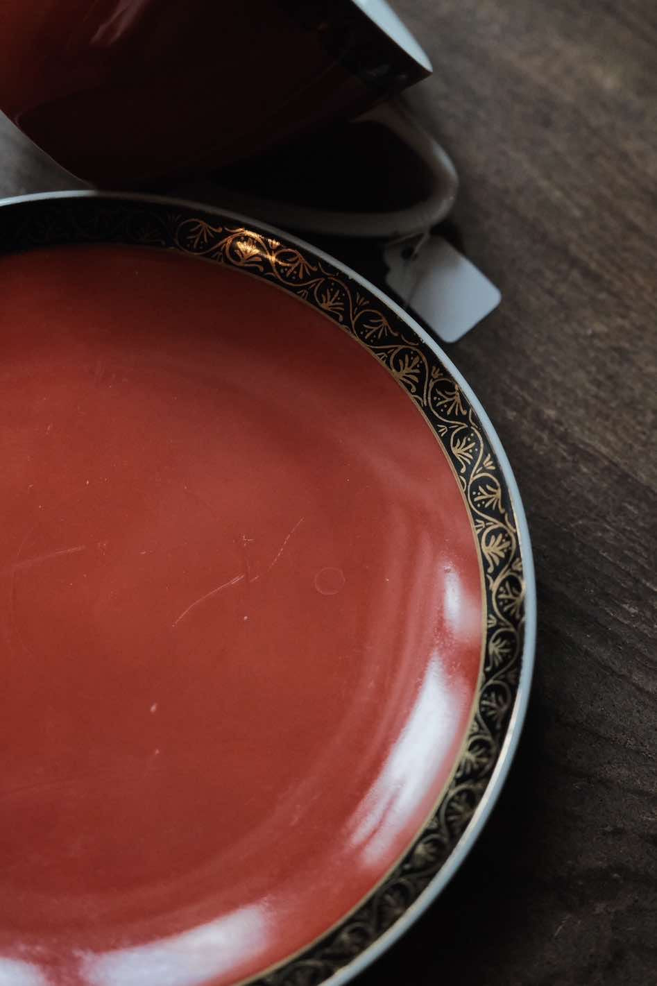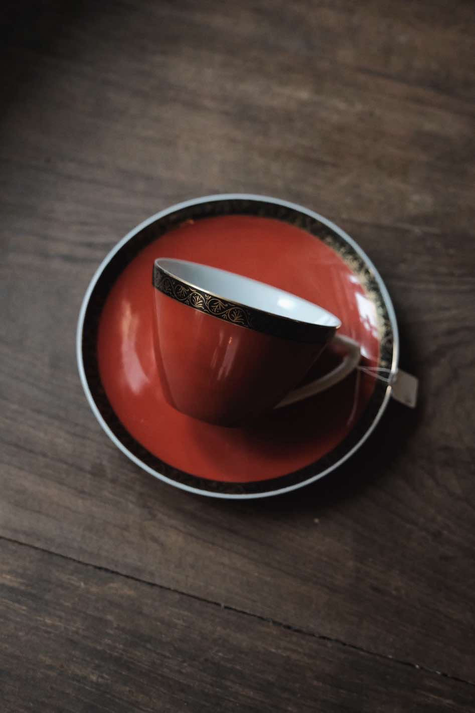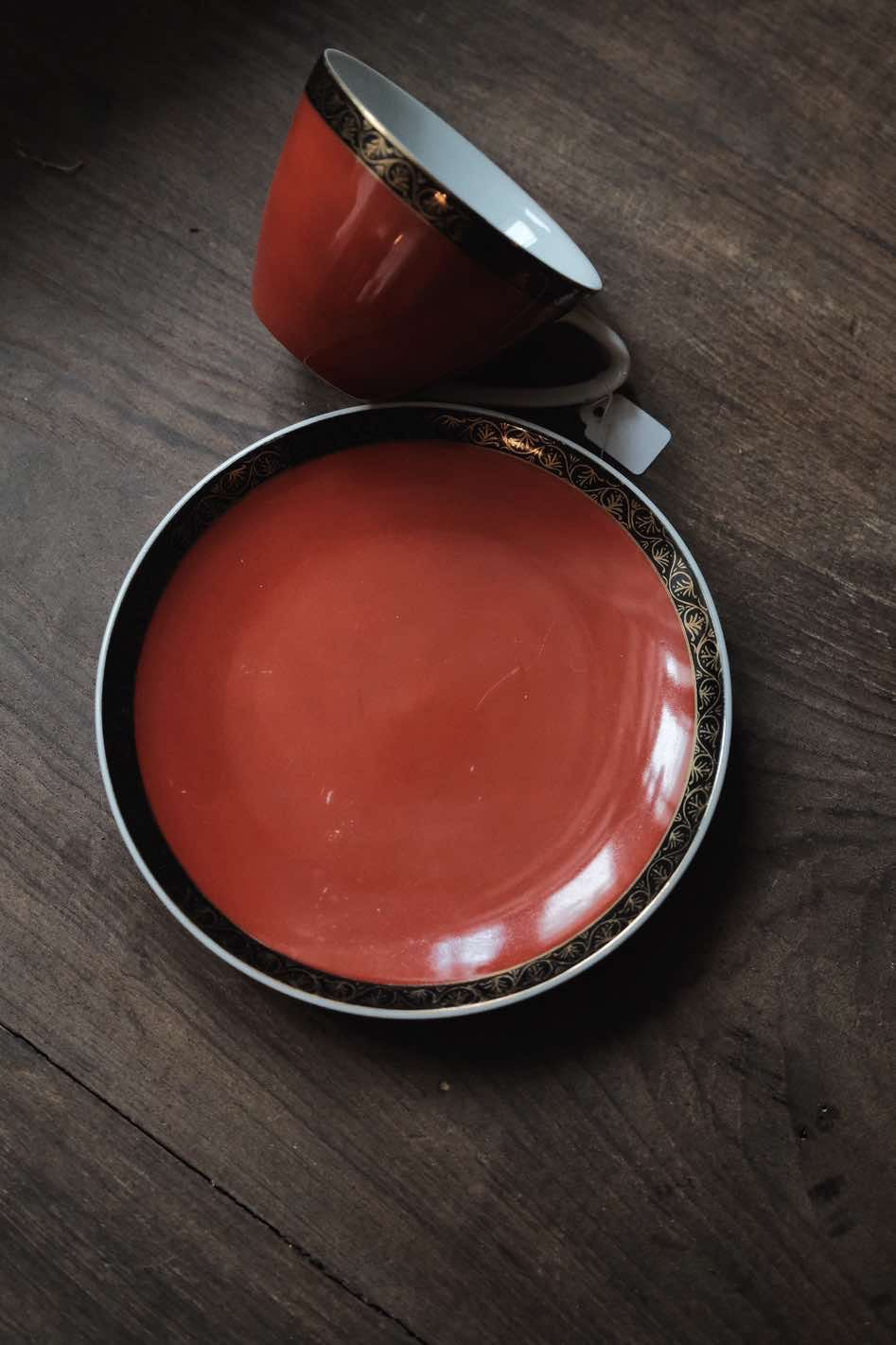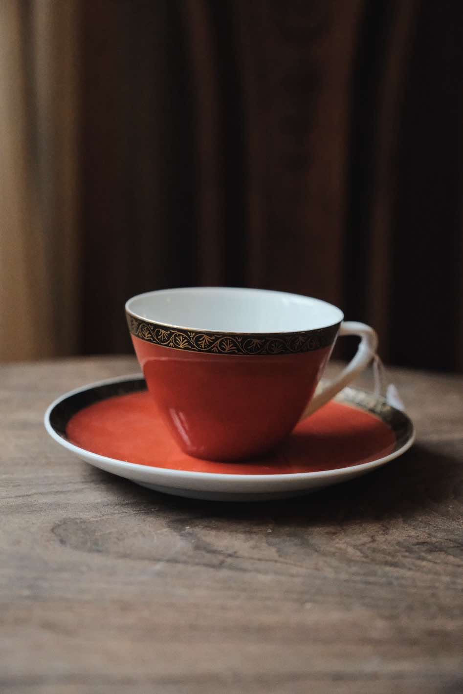 日本製• 深橙紅描黑金邊杯連碟(180ml)