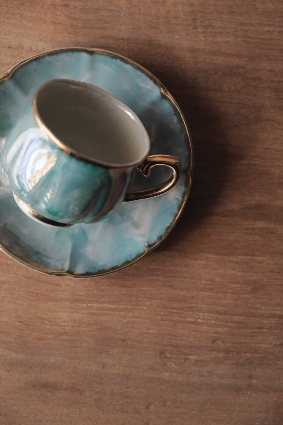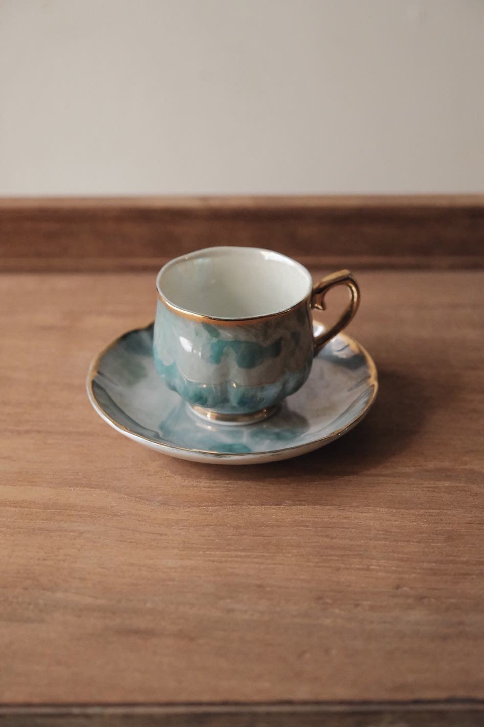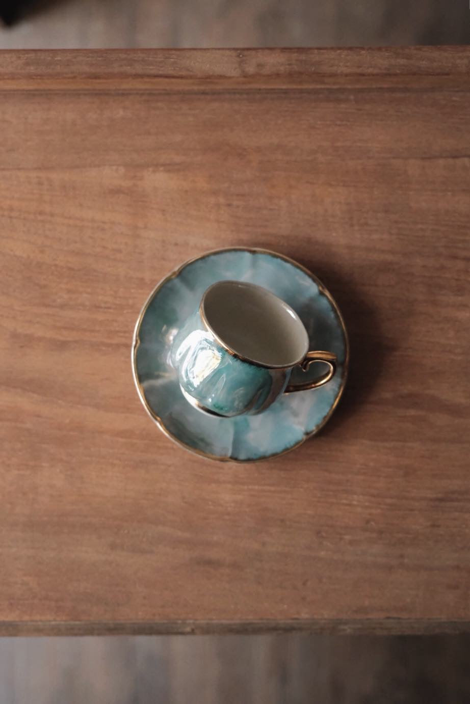 日本製·湖水綠貝殼釉骨瓷咖啡杯