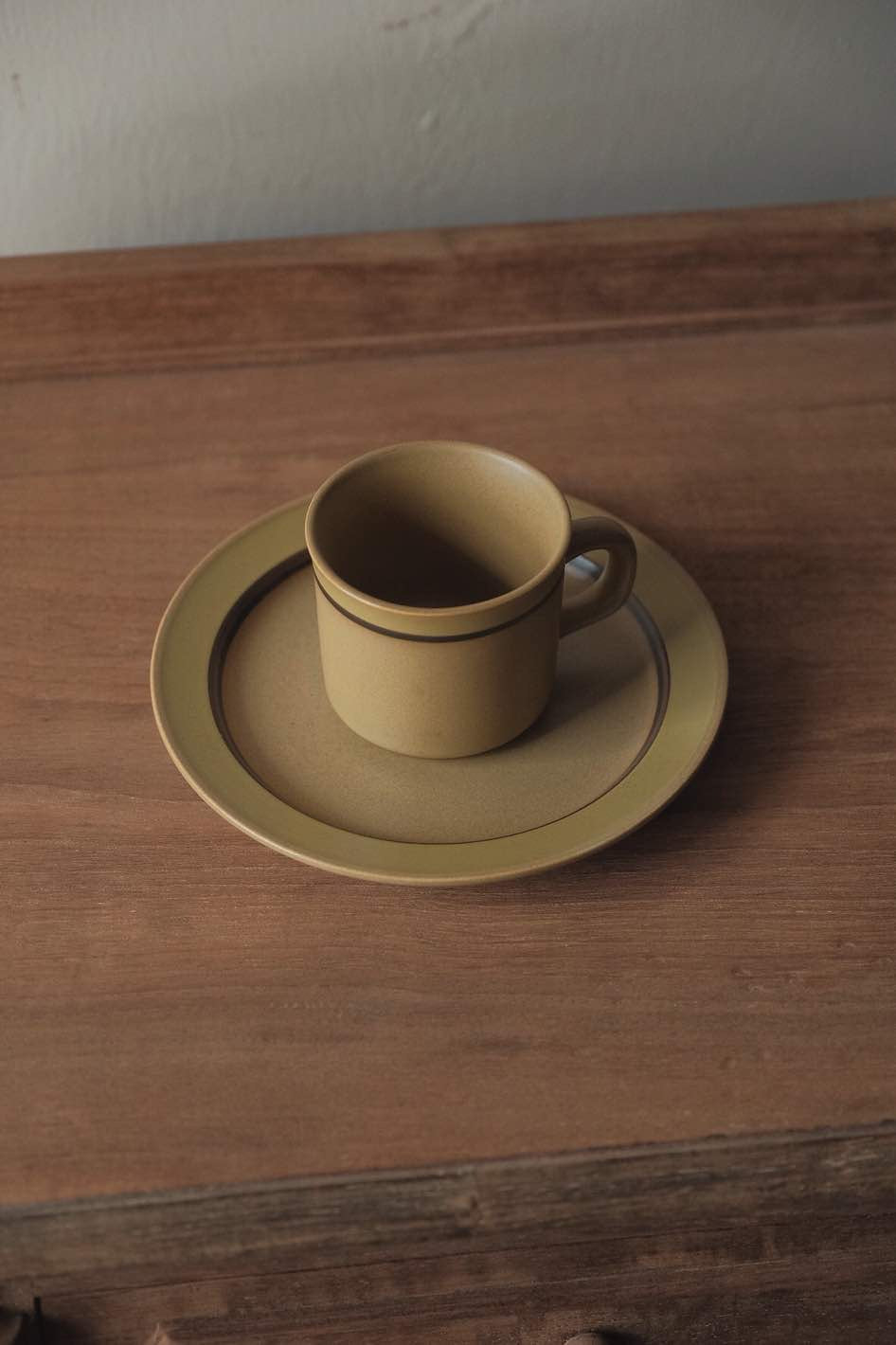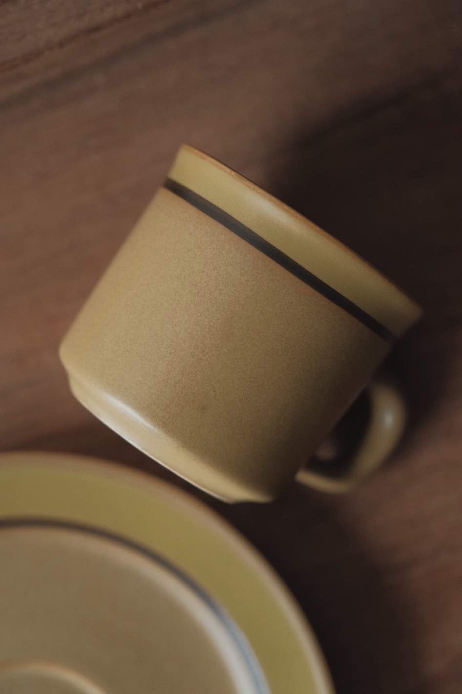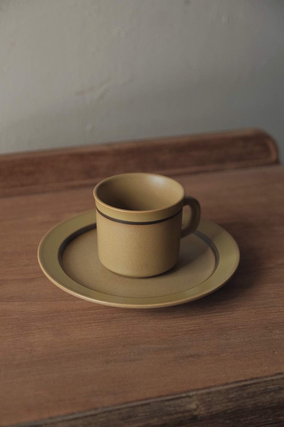 日本製•炻器古典温暖芥末黃綠色咖啡杯