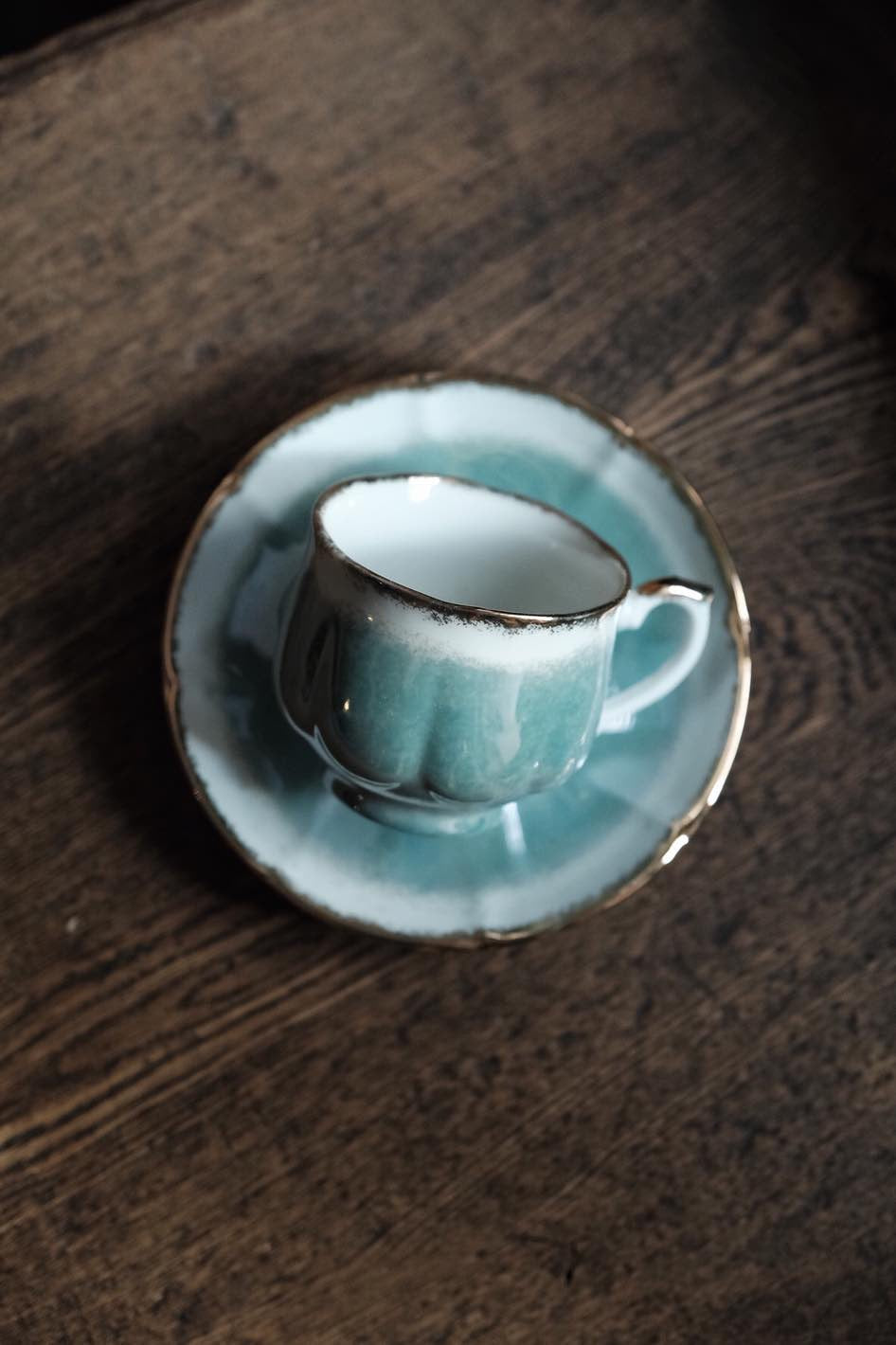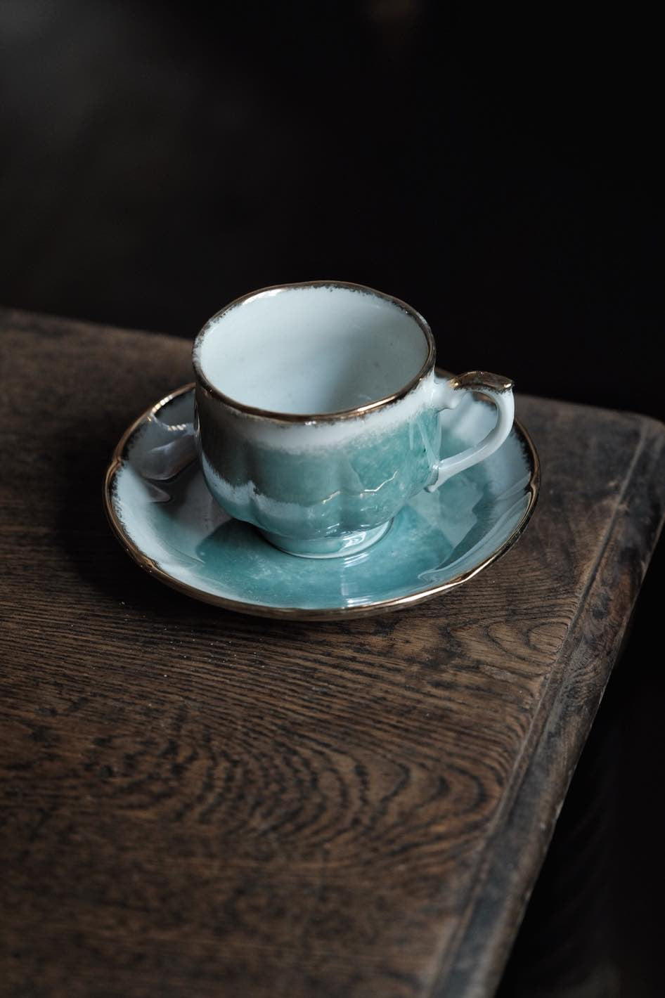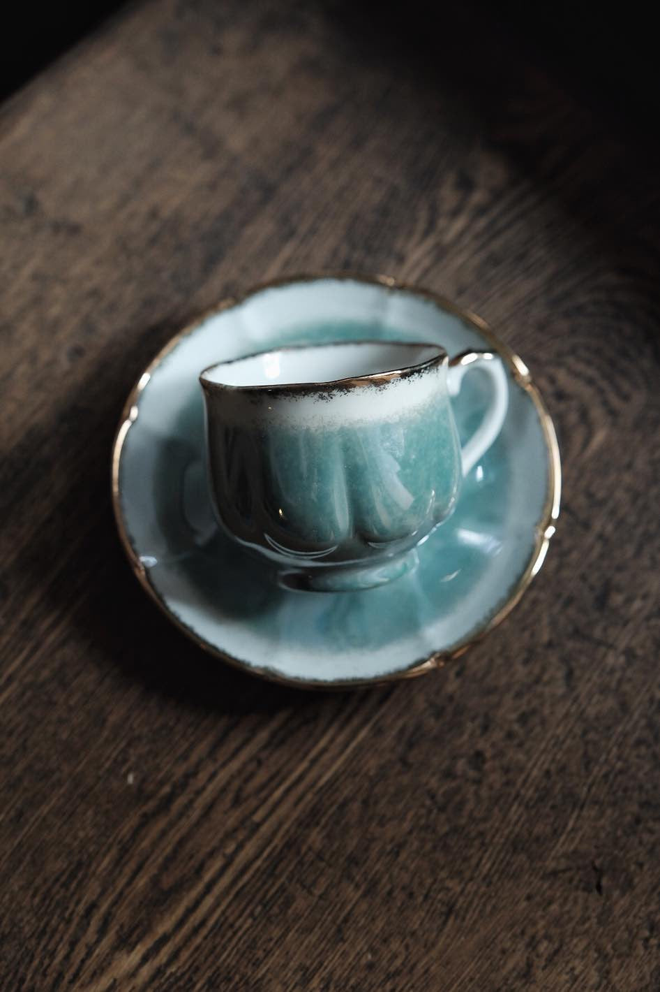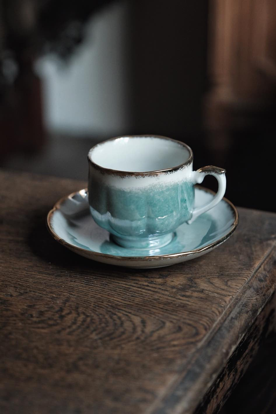 日本製·珍珠湖水藍色釉骨瓷咖啡杯(140ml)