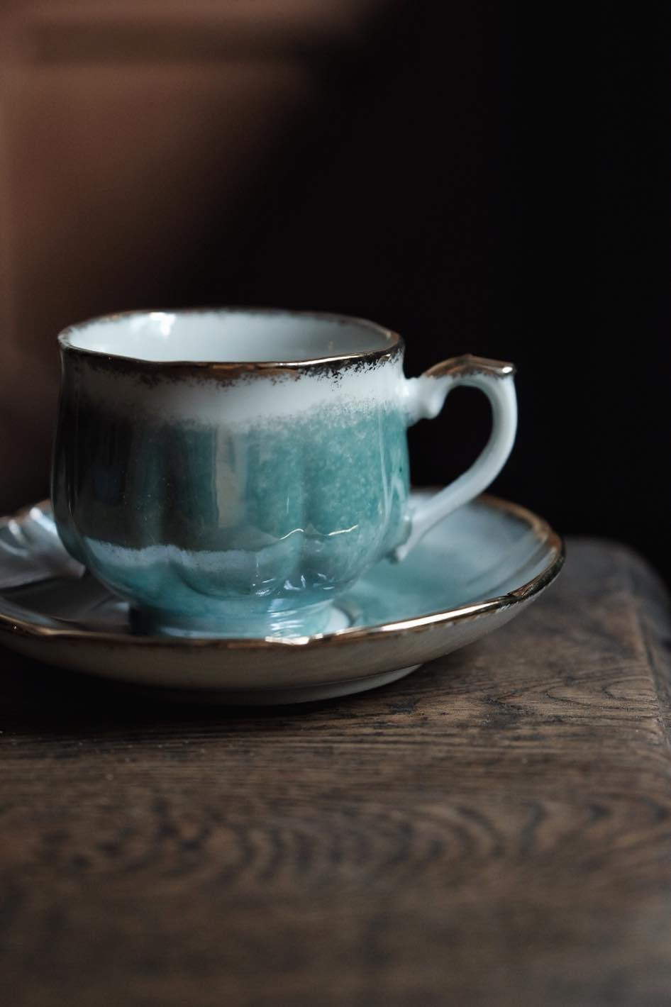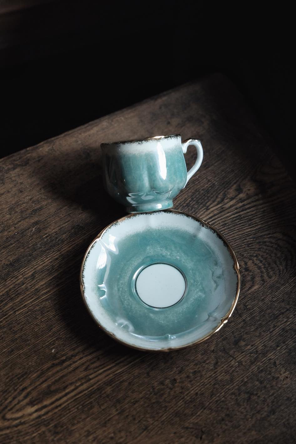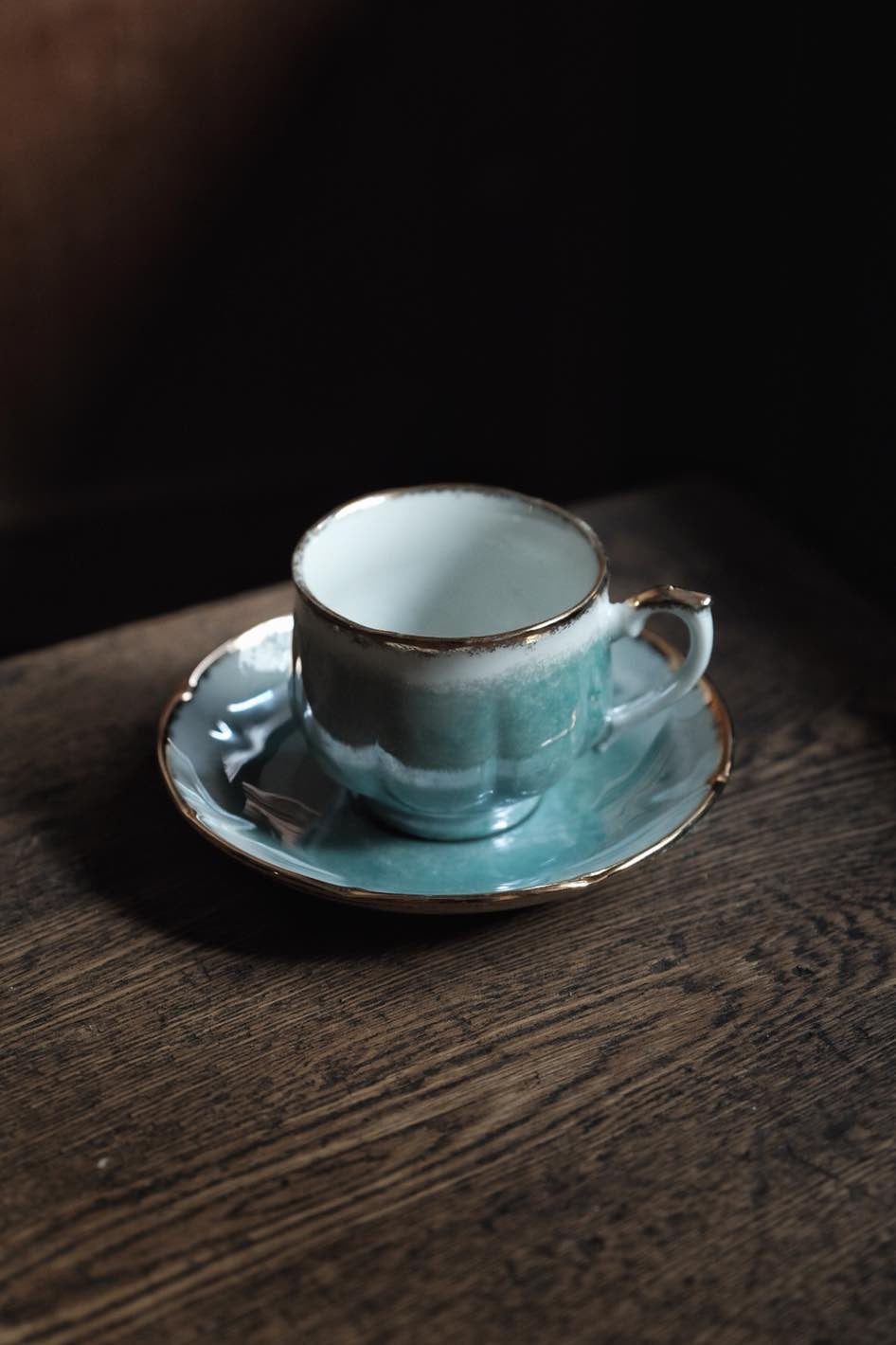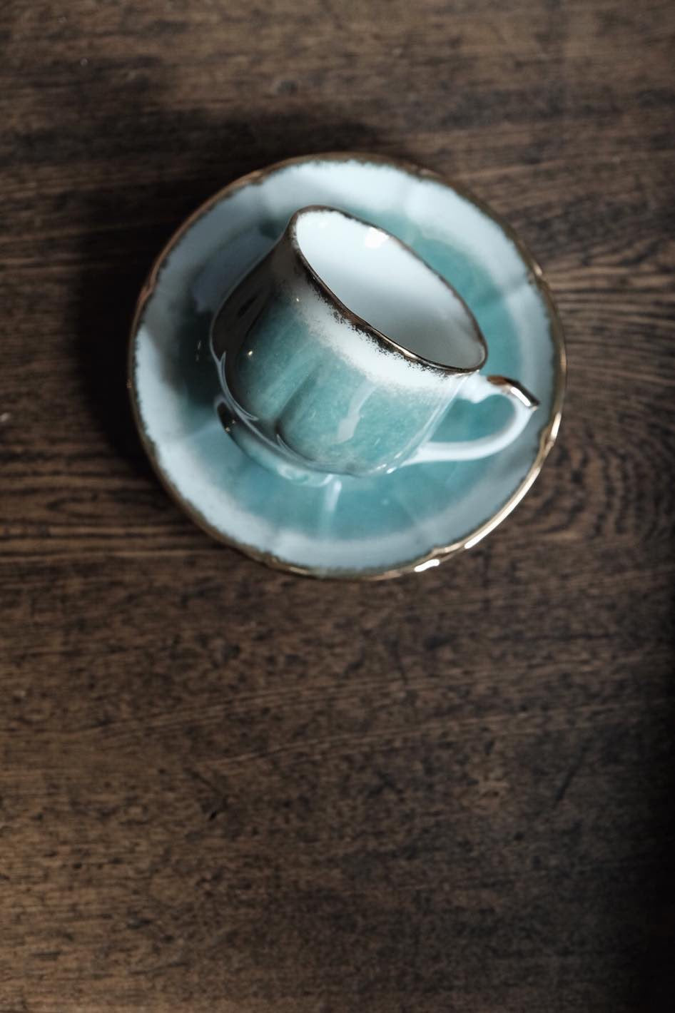 日本製·珍珠湖水藍色釉骨瓷咖啡杯(140ml)