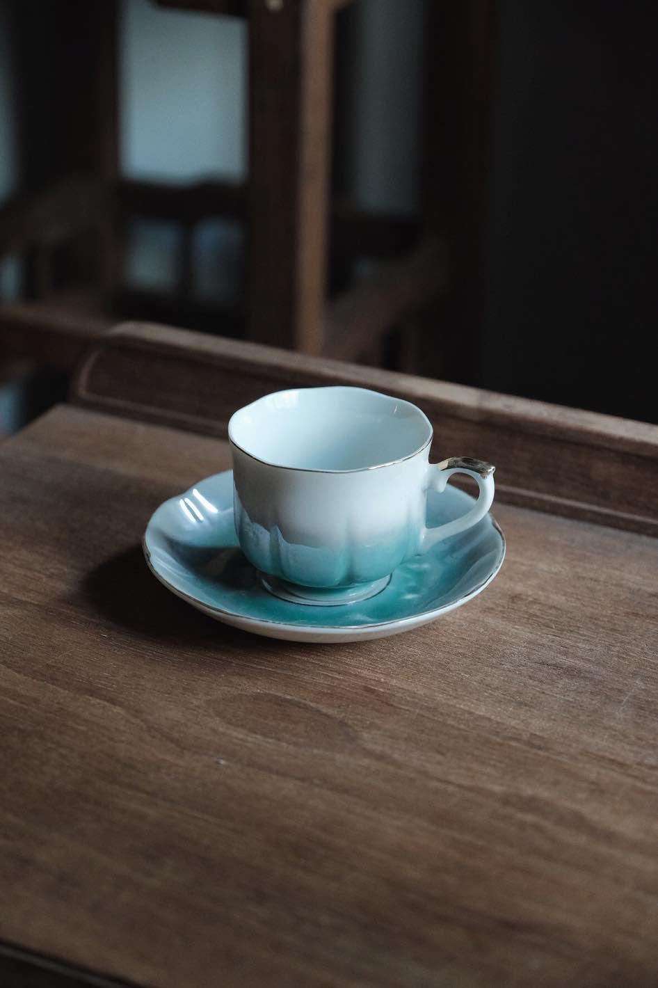 日本製·珍珠湖水藍色釉骨瓷咖啡杯(140ml)