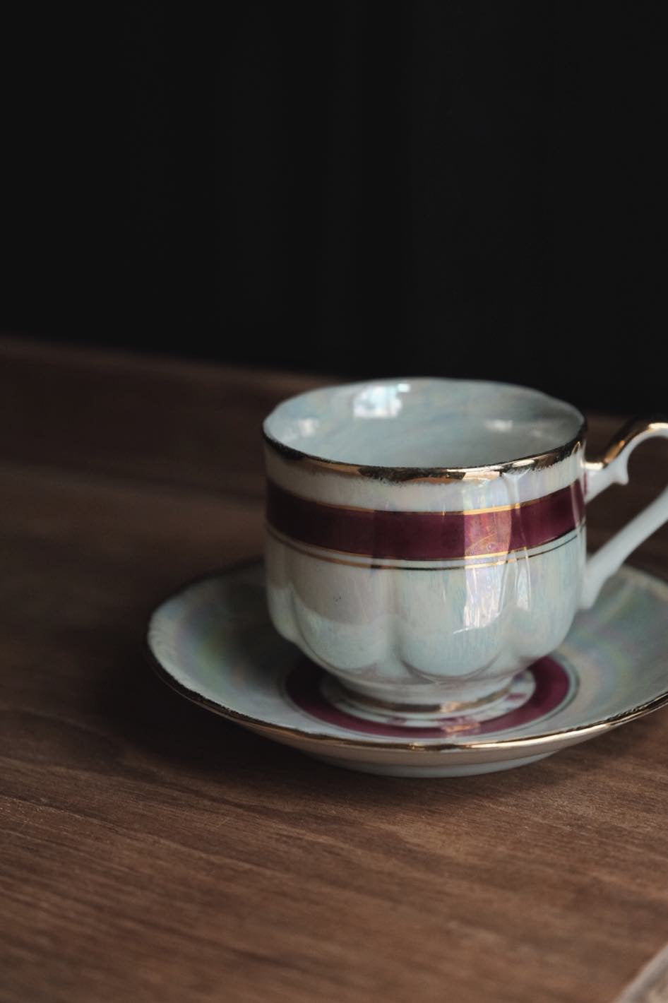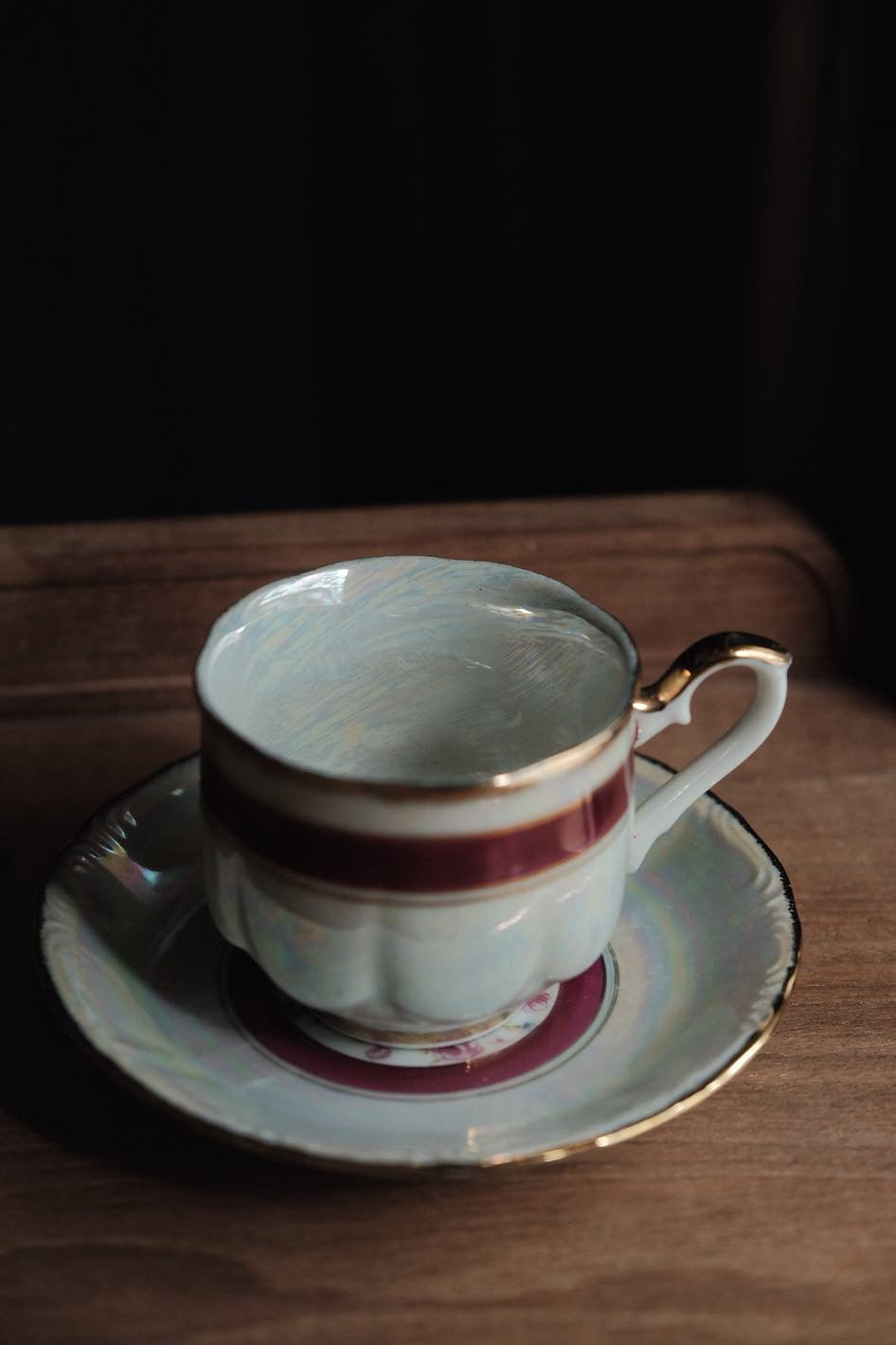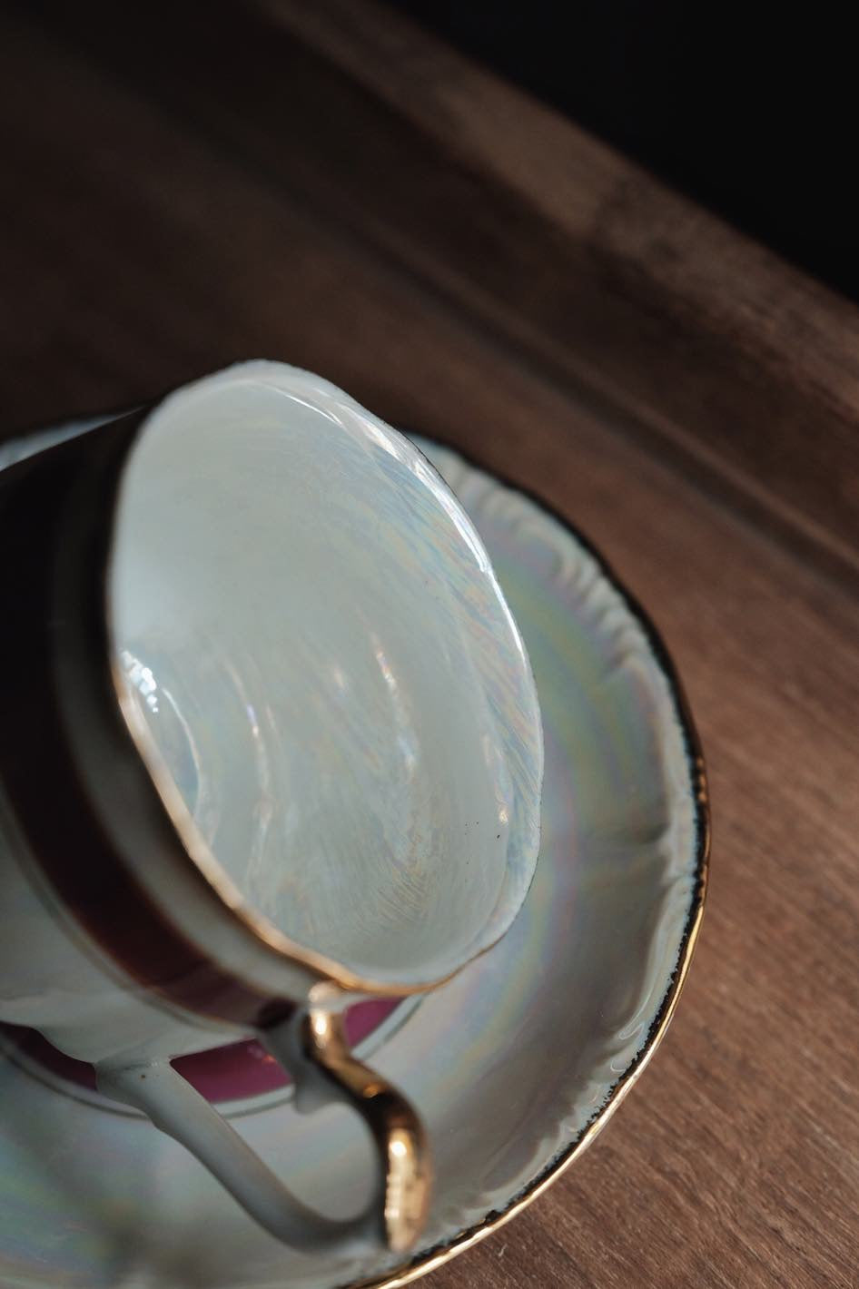 日本製·珍珠紫貝殼釉骨瓷浮雕描金咖啡杯(210ml)