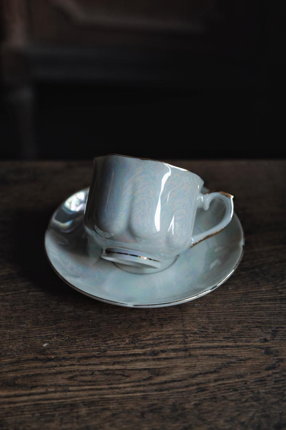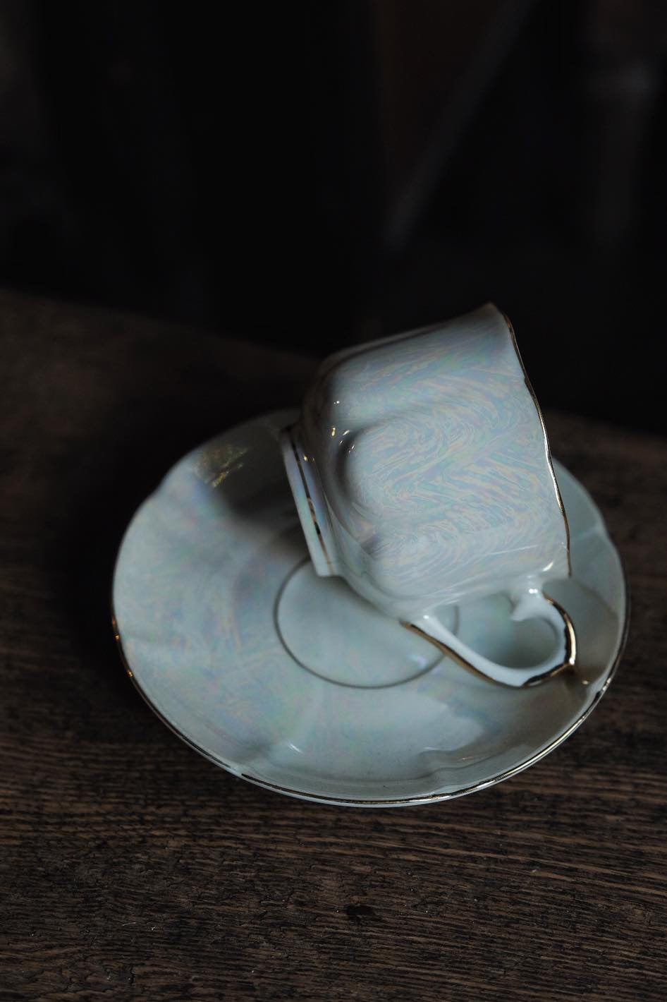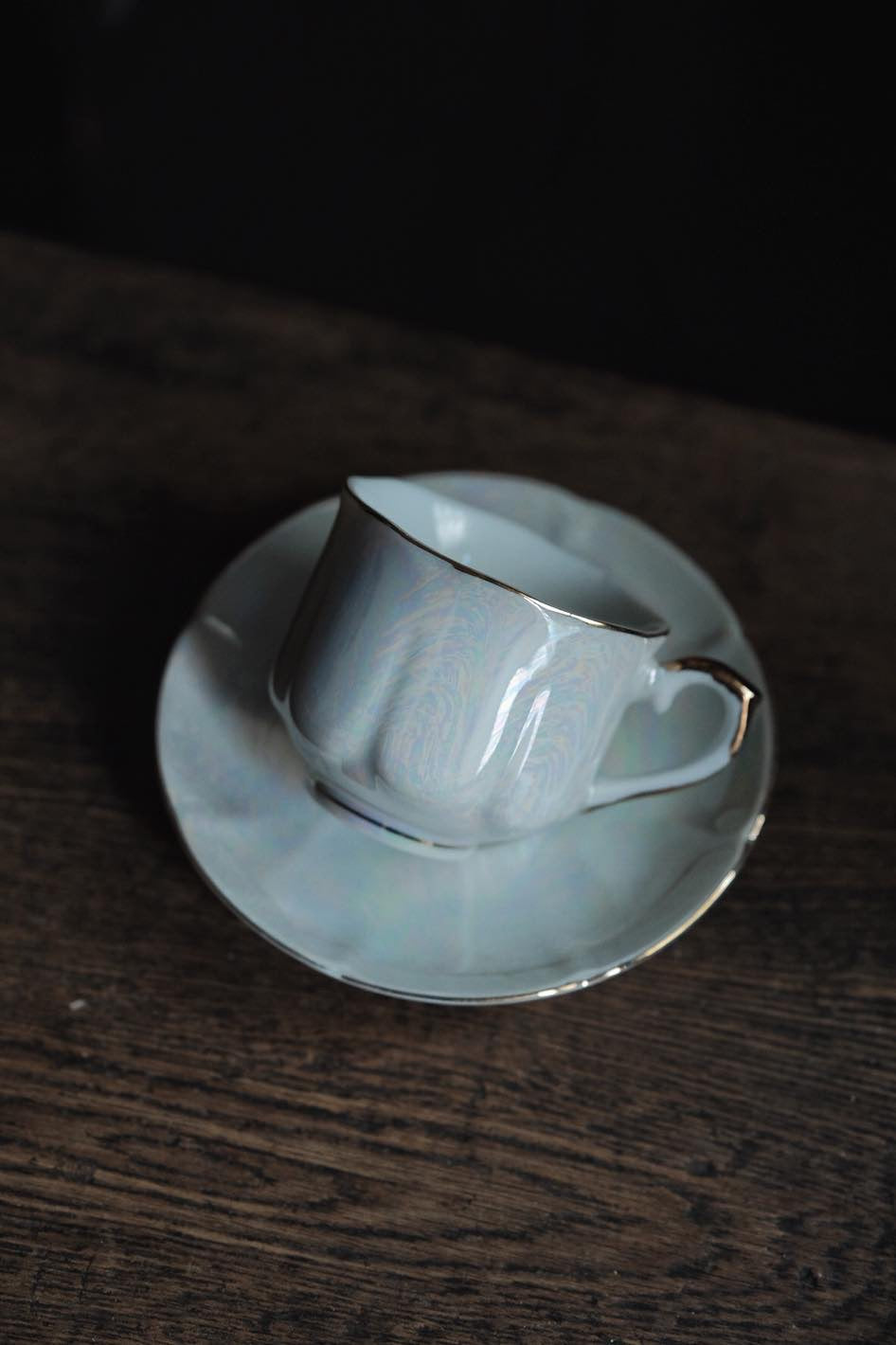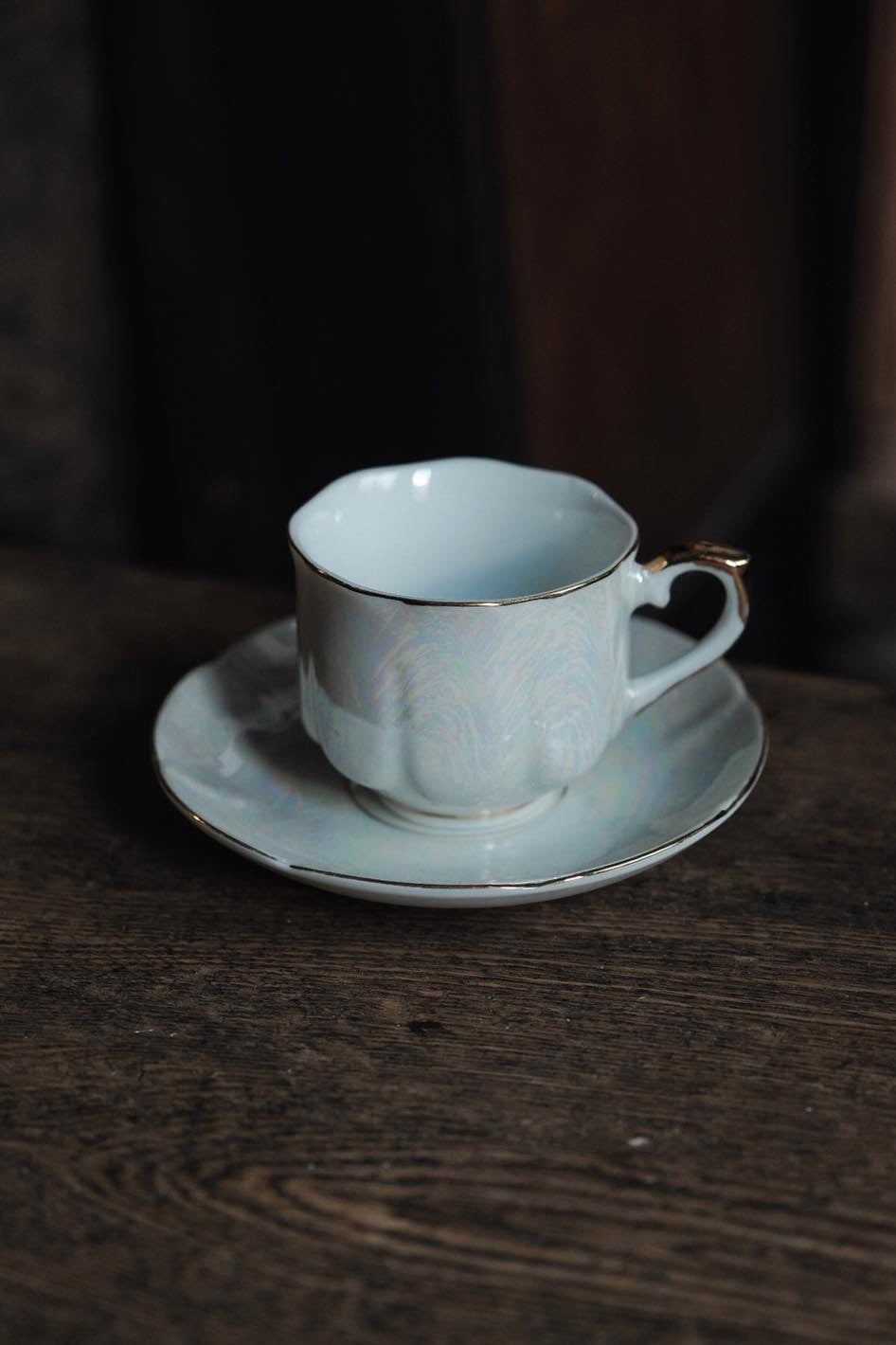 日本製·珍珠貝殼釉骨瓷杯連碟(160ml)
