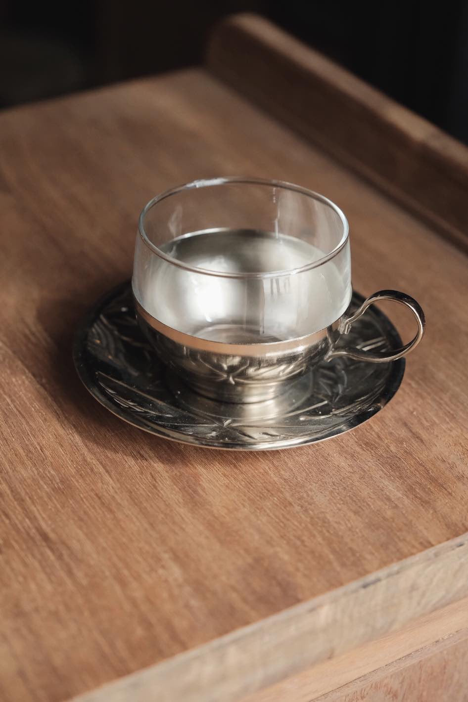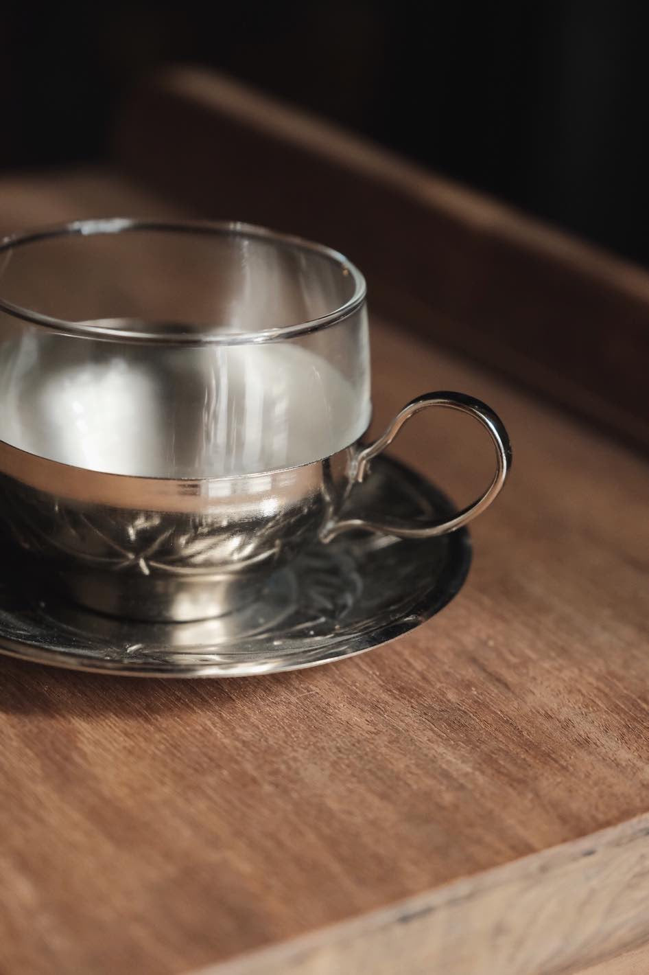 金屬托杯設計,簡潔飽滿,竹葉花壓花,玻璃杯可獨立拆出清潔。