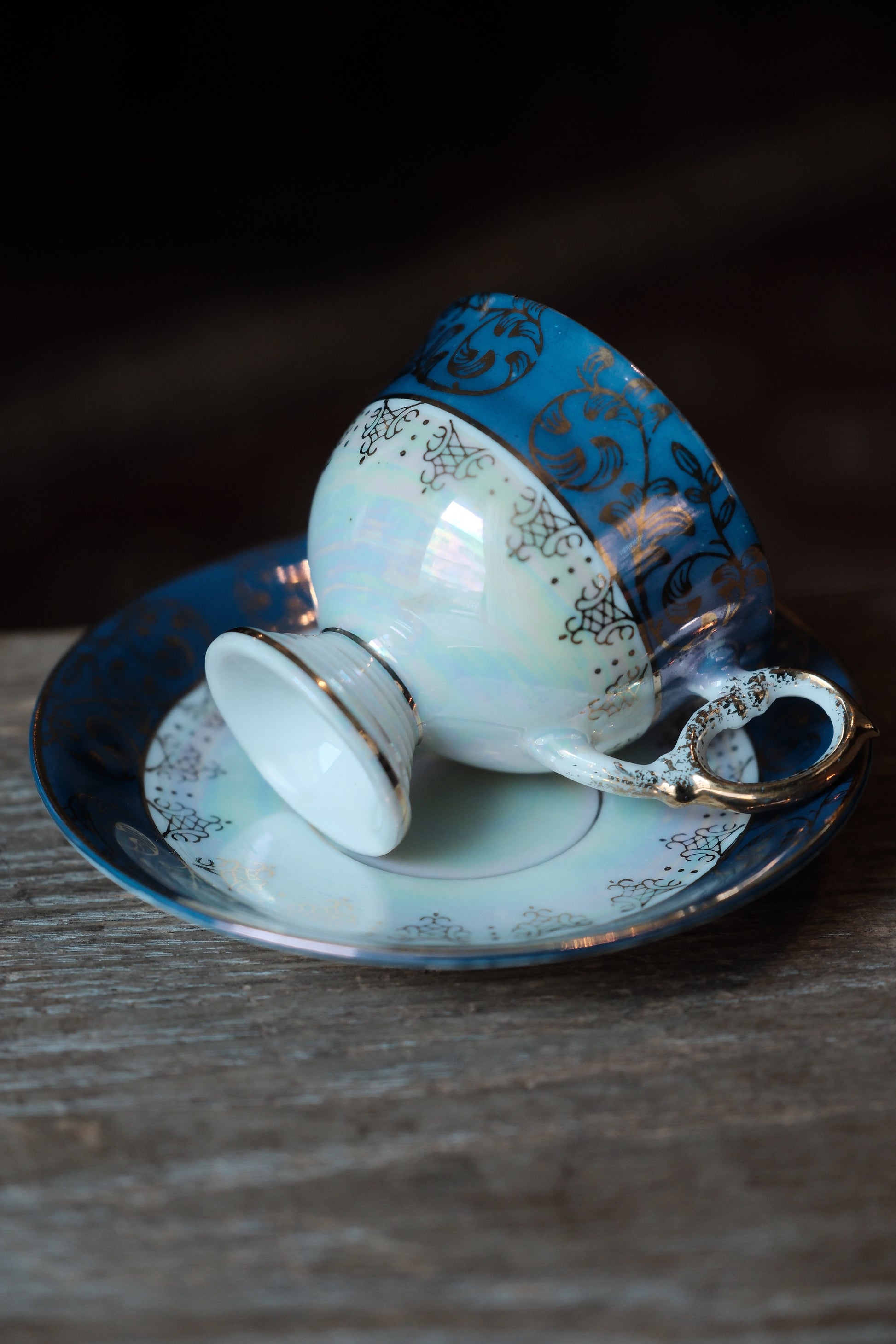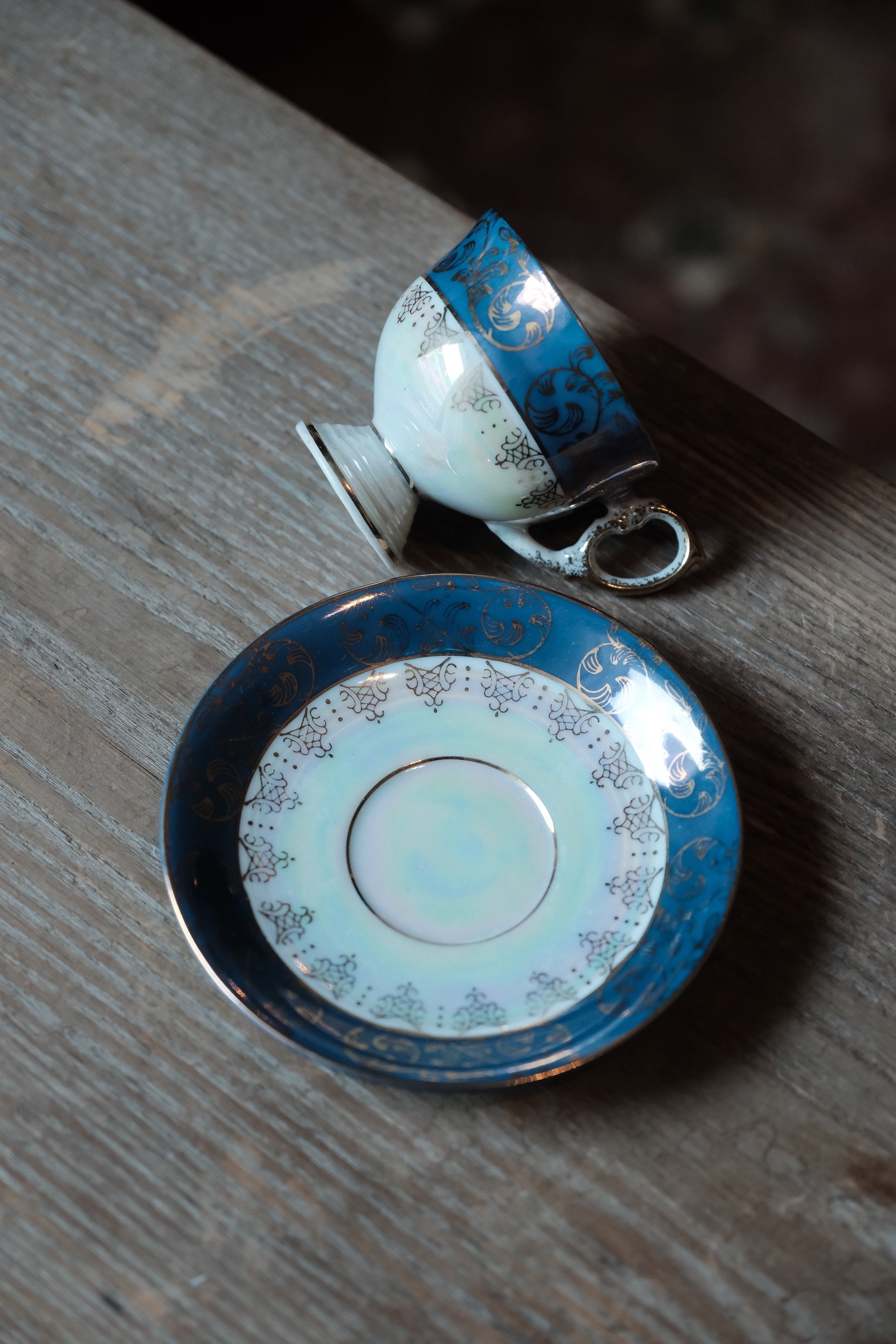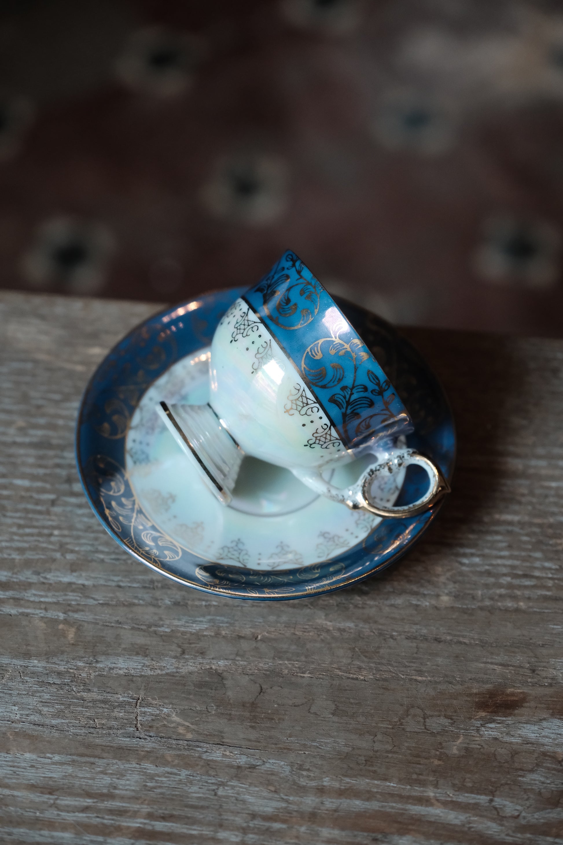 日本製·藍紫間花高足貝殼釉描金紅茶杯細形杯(120ml)