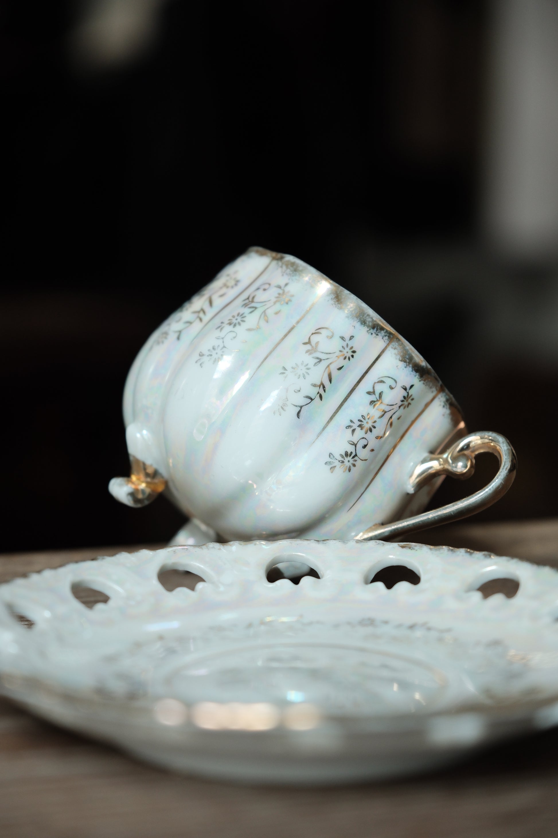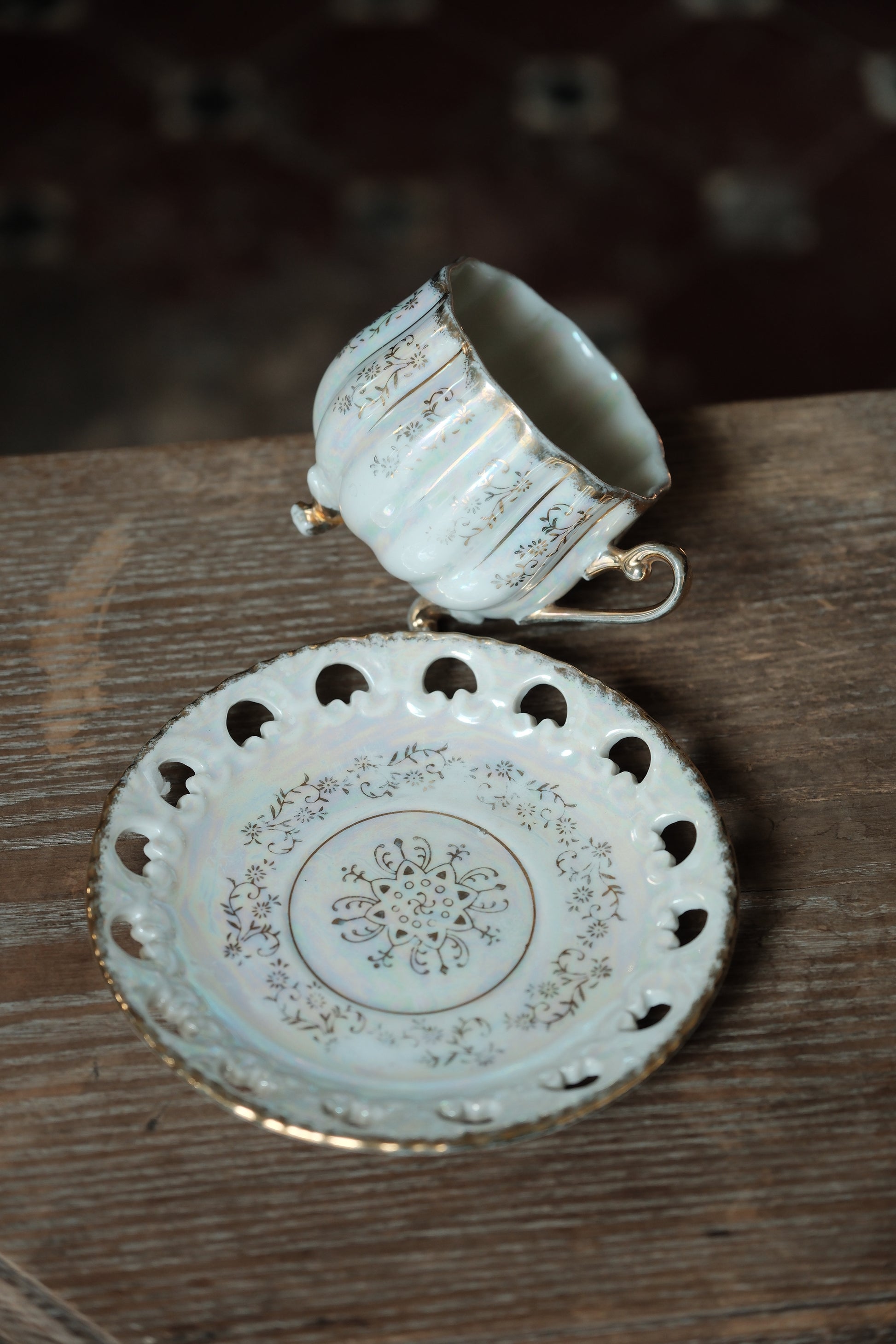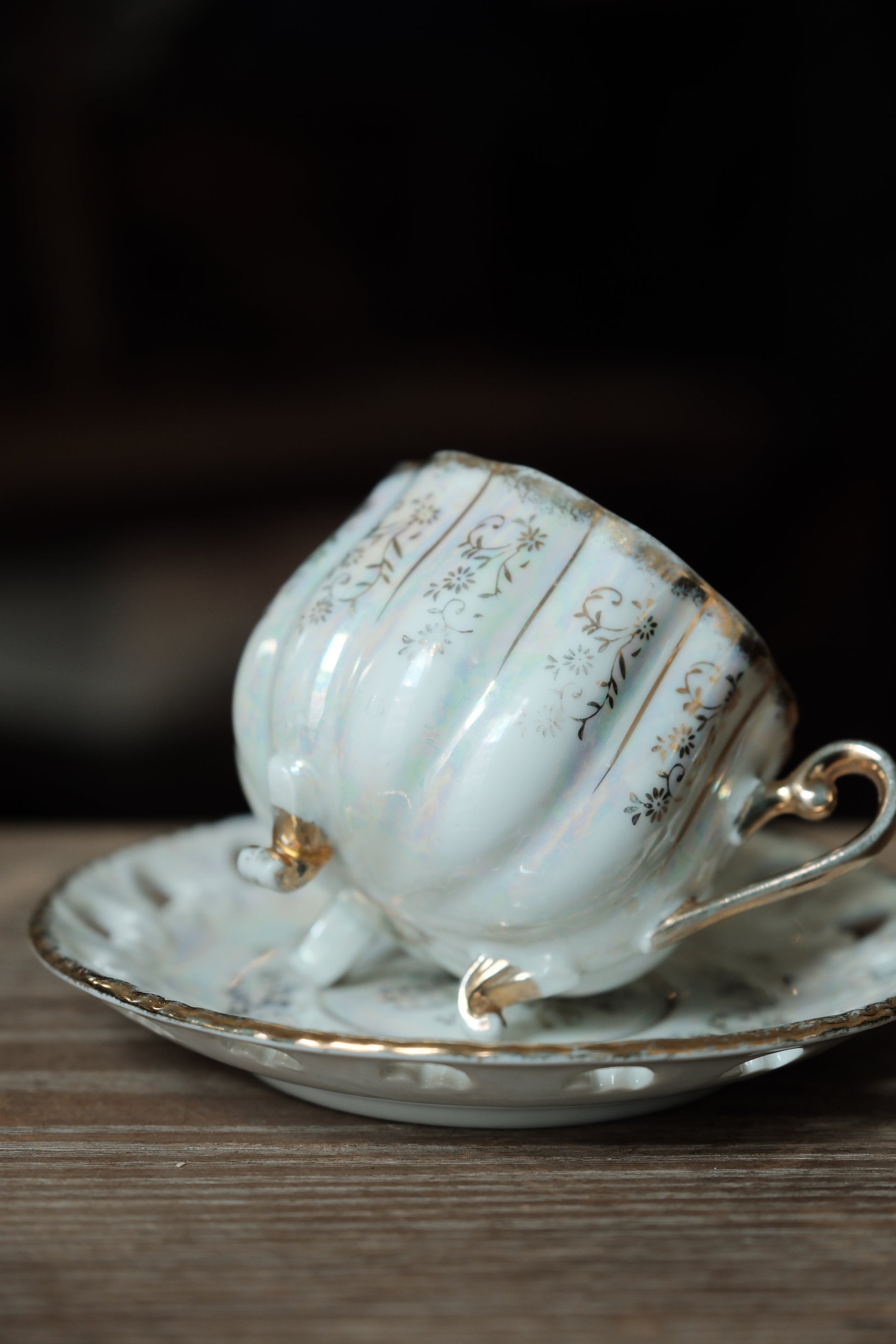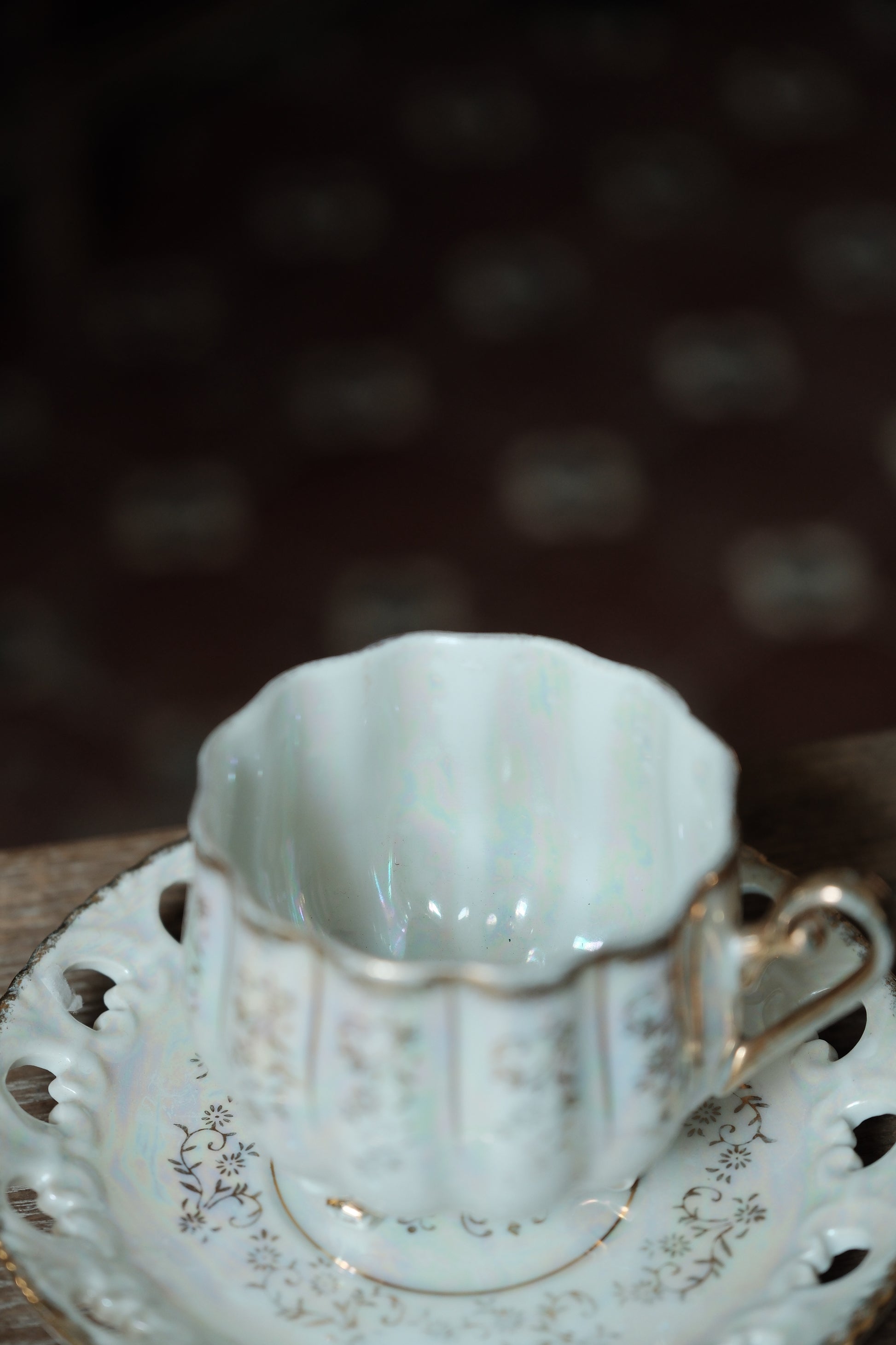 日本製·鏤空三足貝殼釉浮雕描金咖啡杯(240ml)