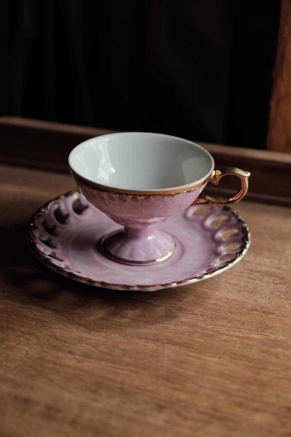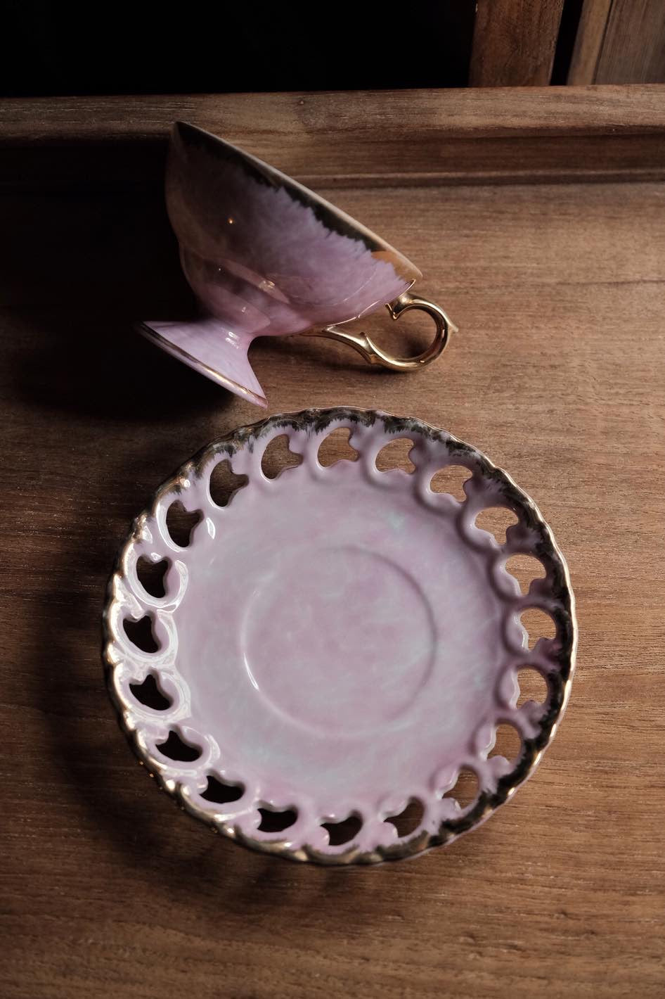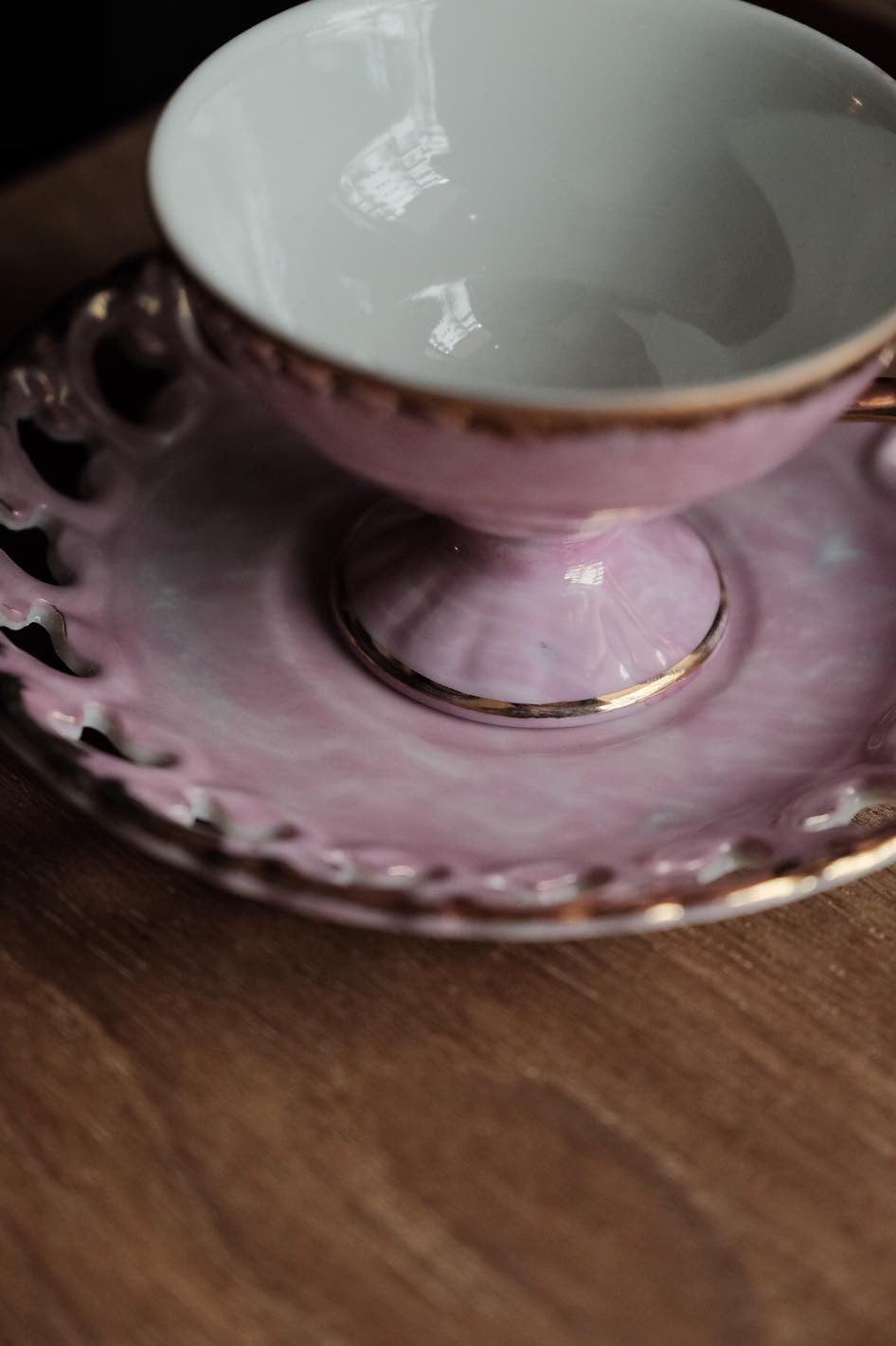 日本製· 鏤空淡粉貝殼釉高足骨瓷咖啡杯 (170ML)