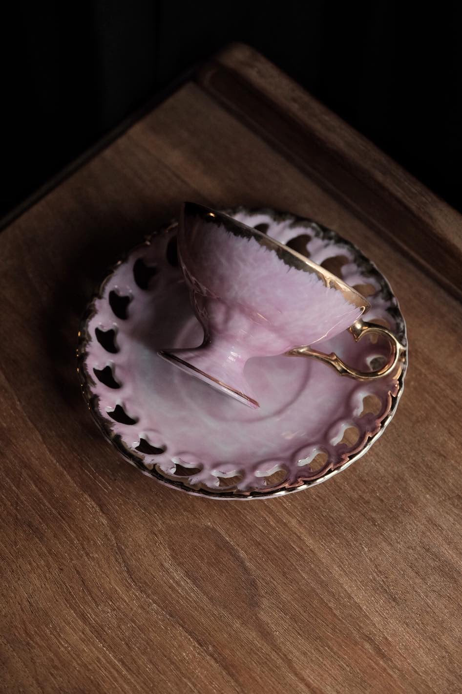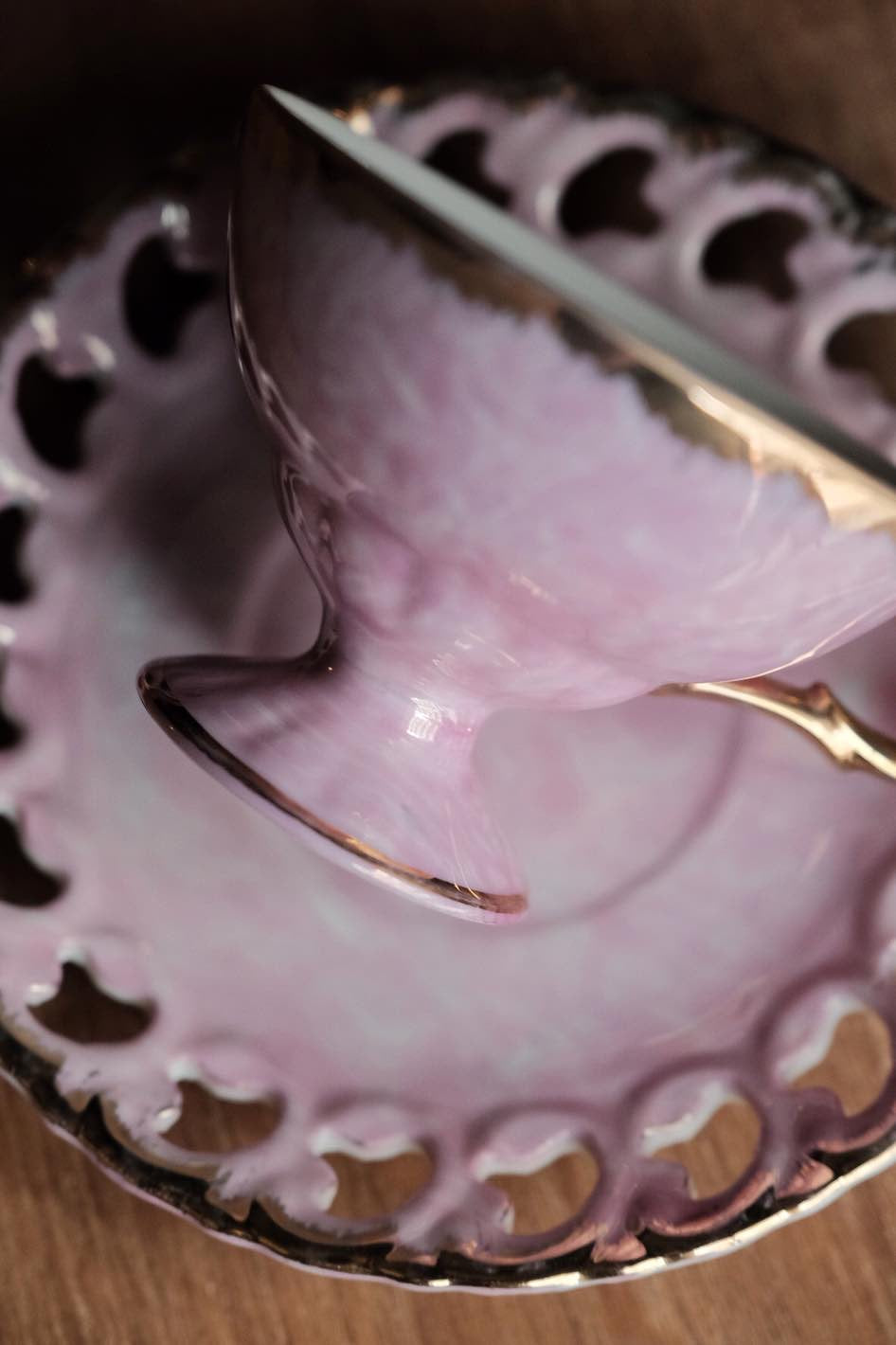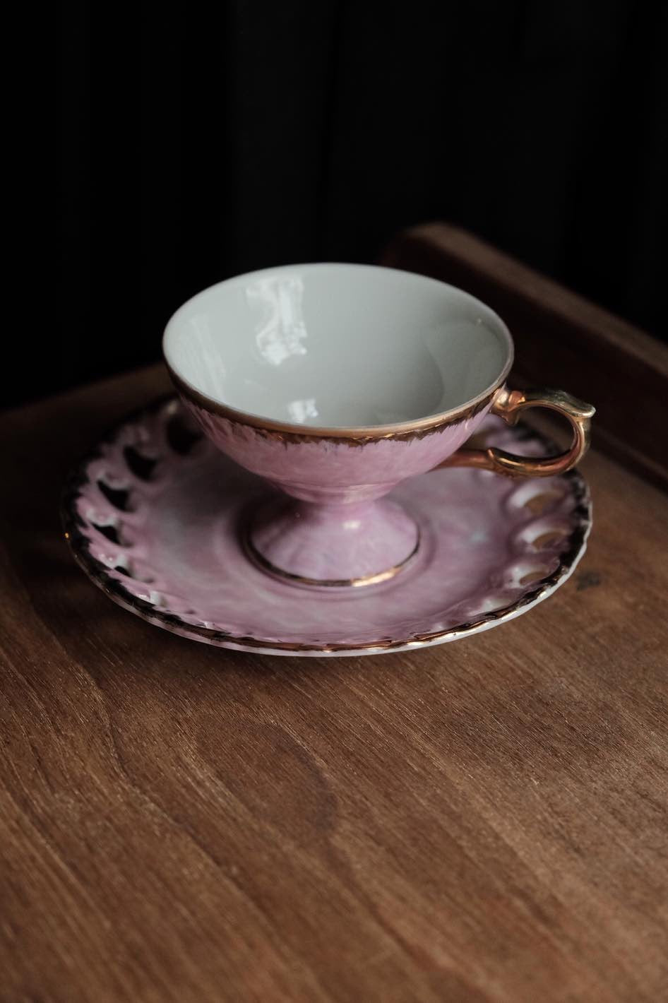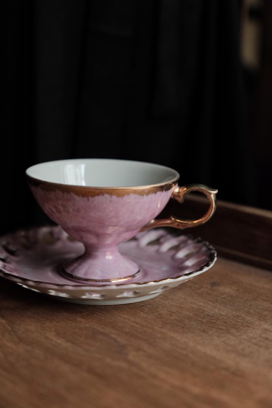 日本製· 鏤空淡粉貝殼釉高足骨瓷咖啡杯 (170ML)