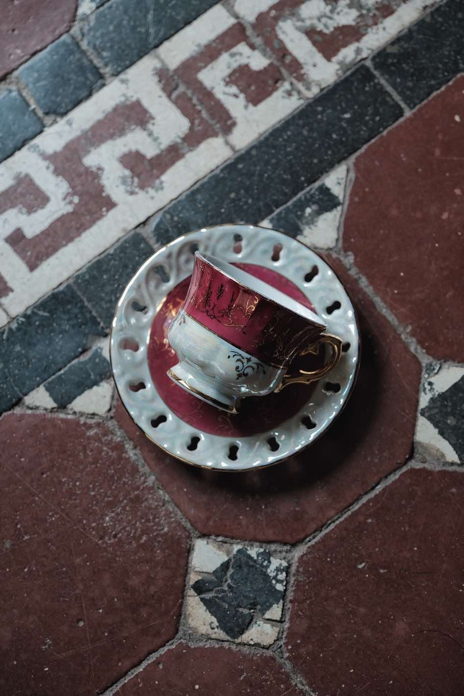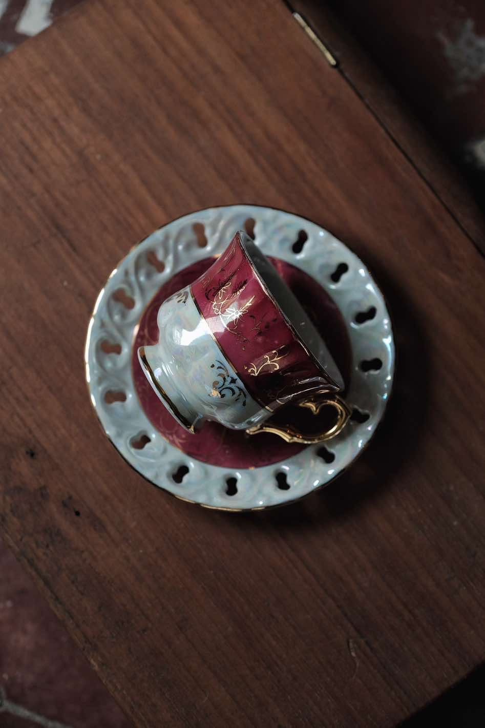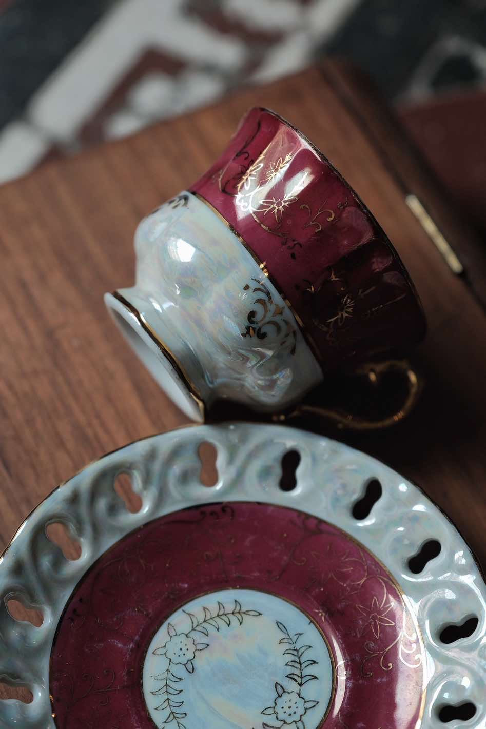 日本製· 鏤空珍珠貝殼釉描金花瓷咖啡杯 (120ML)