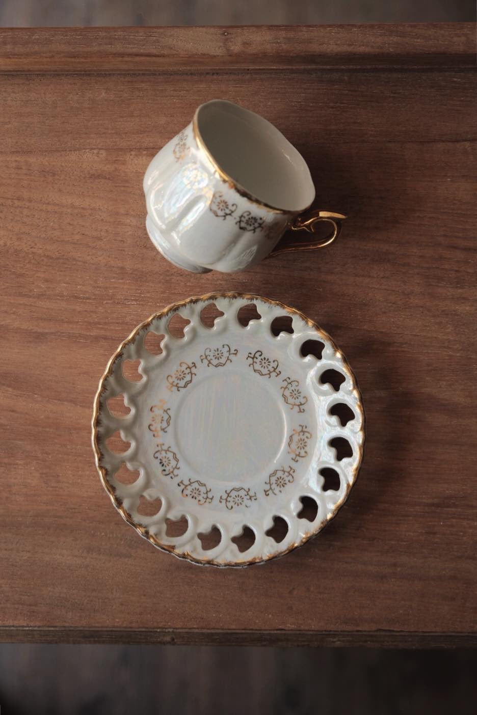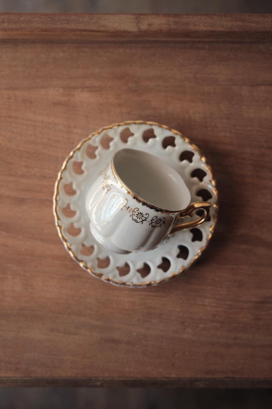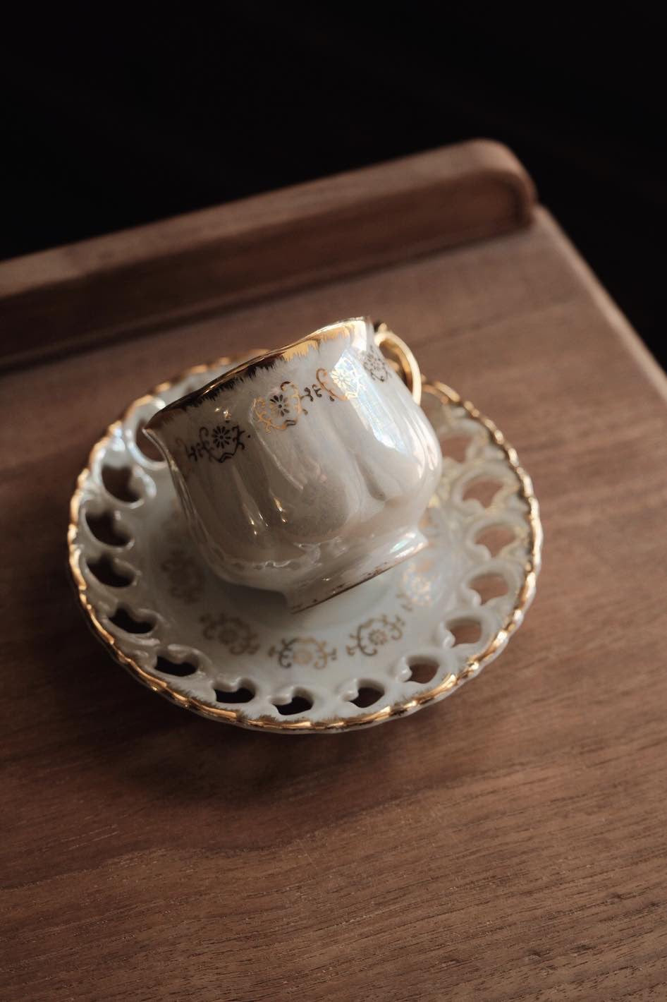 日本製·鏤空貝殼釉骨瓷描金咖啡杯